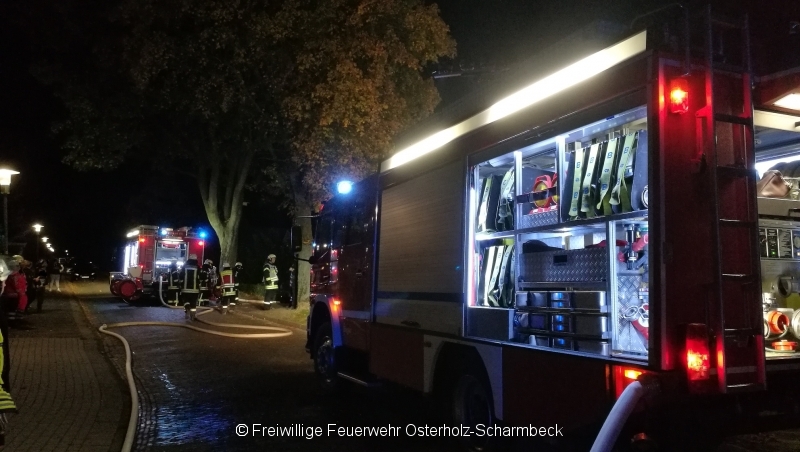 Am Abend des 17.10.2017 wurde die Ortsfeuerwehr Osterholz-Scharmbeck zu einem Küchenbrand in der Stettiner Straße alarmiert. Vor Ort konnte der Brandherd schnell von zwei Trupps unter Atemschutz mit Hilfe eines C-Rohrs und der Wärmebildkamera gelöscht werden. Die Anwohner befanden sich schon außerhalb des Gebäudes, wurden vom Rettungsdienst betreut und in ein umliegendes Krankenhaus gebracht. Nach dem das Gebäude mit einem Drucklüfter vom Brandrauch befreit worden ist, konnte die Einsatzstelle an den Eigentümer übergeben werden. Die Ofw Scharmbeckstotel wurde zur Unterstützung mit Atemschutzgeräteträgern nach alarmiert, konnte aber schnell wieder vom Einsatzleiter entlassen werden.