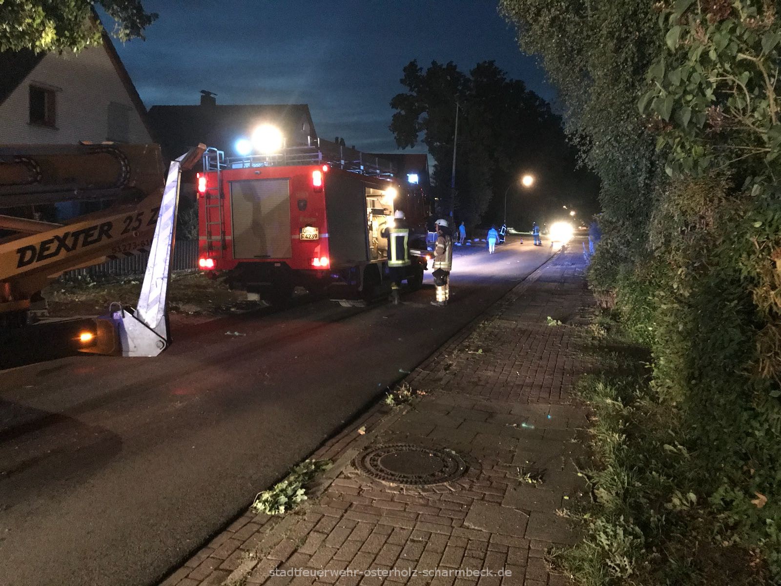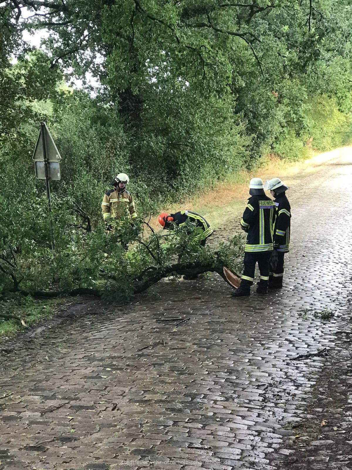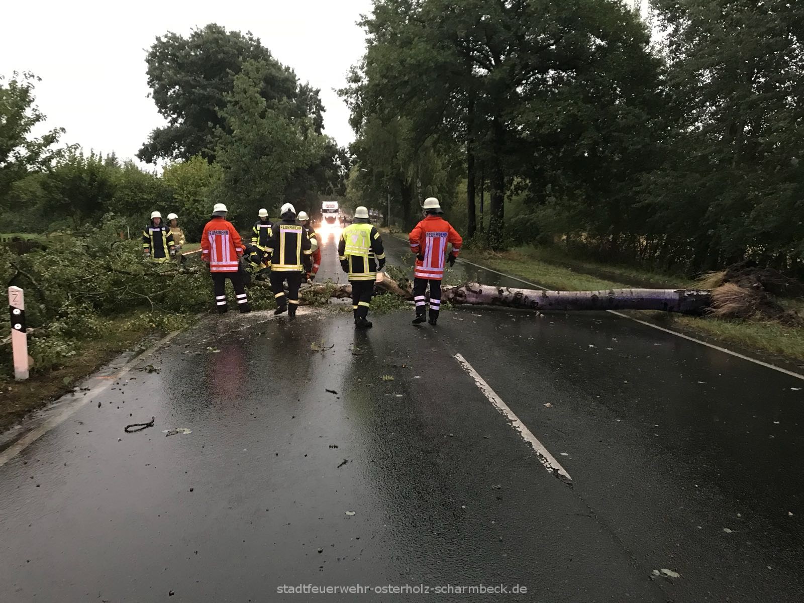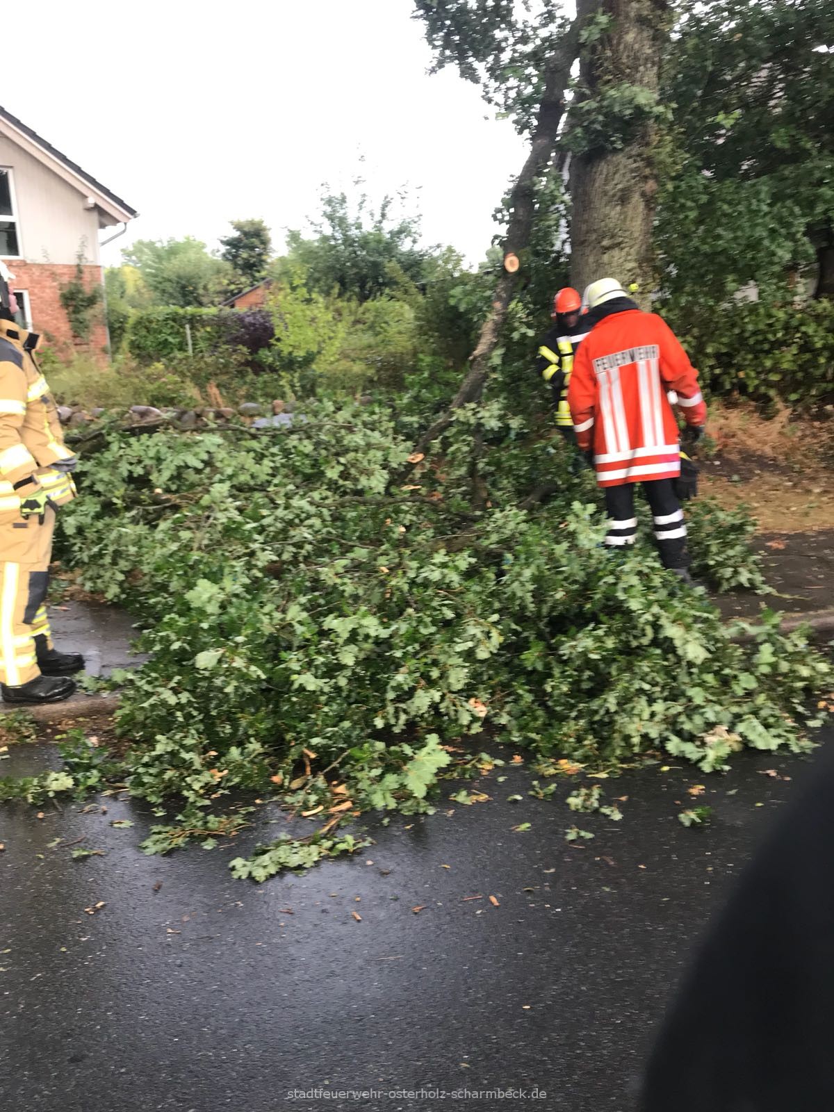 Im Stadtkern der Kreisstadt wurden durch die Ortsfeuerwehr Osterholz-Scharmbeck zwei Einsatzlagen abgearbeitet. Ein Baumkrone lag im Verkehrsraum und wurde mithilfe der Motorsäge entfernt, so dass die Straße wieder frei war. Aus einem Baum drohten Äste in den Verkehrsraum zu fallen und wurden mittels Drehleiter beseitigt. Die Drehleiter der Ortsfeuerwehr Osterholz-Scharmbeck war noch bis in die späten Abendstunden bei einem langwierigen Einsatz in Schwanewede zur Unterstützung eingesetzt.