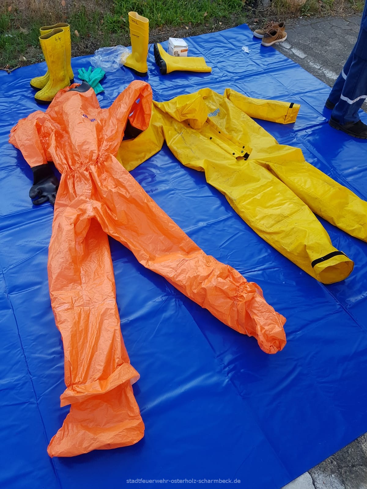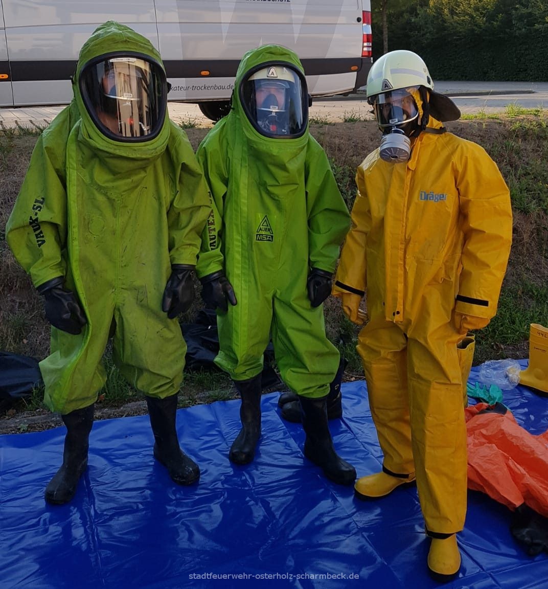 Wie Starteten im Theorieteil mit dem erkennen von Gefahrgütern und gingen im Praxisteil, mit Hilfe der Betreuer (die sich mit Chemikalien Schutz Anzügen (CSA) ausgerüstet hatten) zur Dekontamination über.