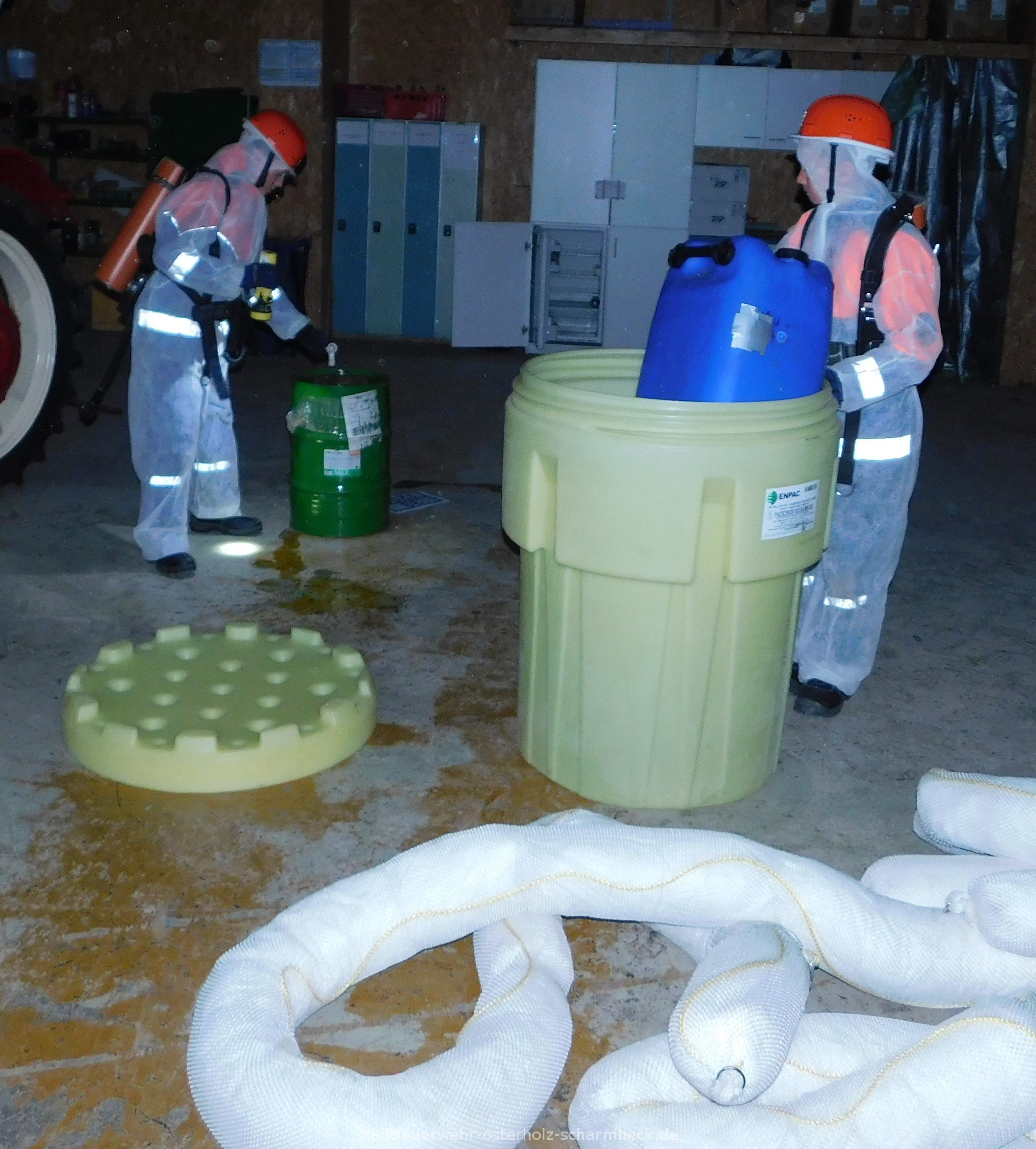 Auch kam es zu einem Gefahrguteinsatz. Ungewöhnlich für eine Jugendfeuerwehr und zugleich sehr komplex. Doch mit der Unterstützung der Betreuer, retteten die Jugendlichen, unter Wahrung der speziellen Vorgehensweisen, eine Person aus einer Halle und sicherten gleichzeitig fachgerecht die auslaufenden Gefahrstoffe.