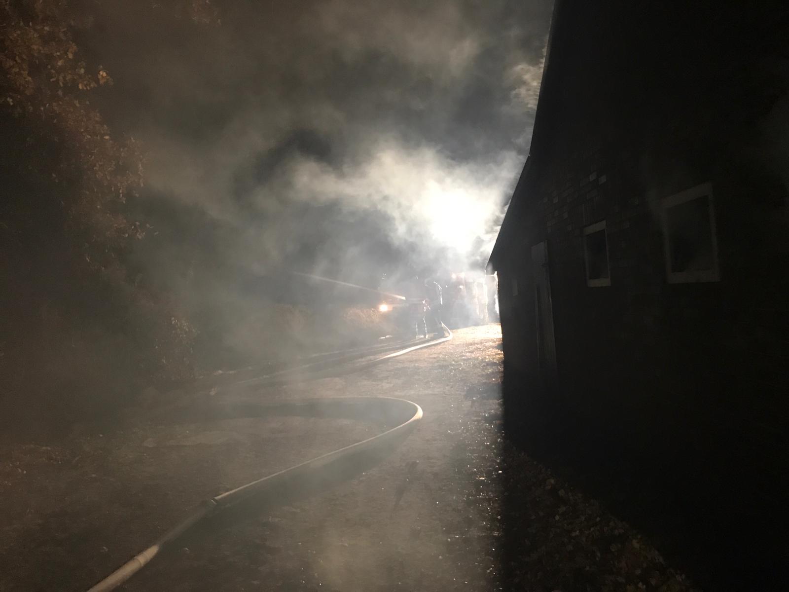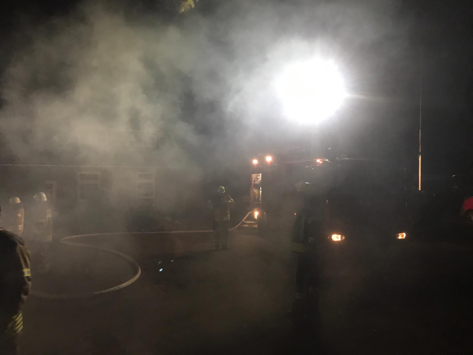 Nachdem der Angriffstrupp die vermisste Person aus der schwer zugänglichen Werkstatt gerettet hatte, ging ein weiterer Trupp unter PA in die Werkstatt zur Brandbekämpfung vor. Zeitgleich wurde ein Löschangriff von außen vorbereitet, um die Stallungen zu schützen. Nachdem das „Feuer“ aus war, wurde der Druckbelüfter in Stellung gebracht, um den Raum zu belüften.