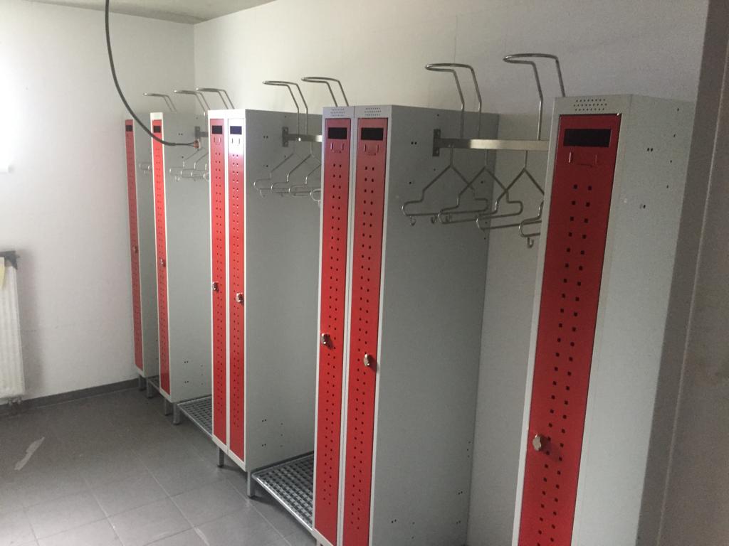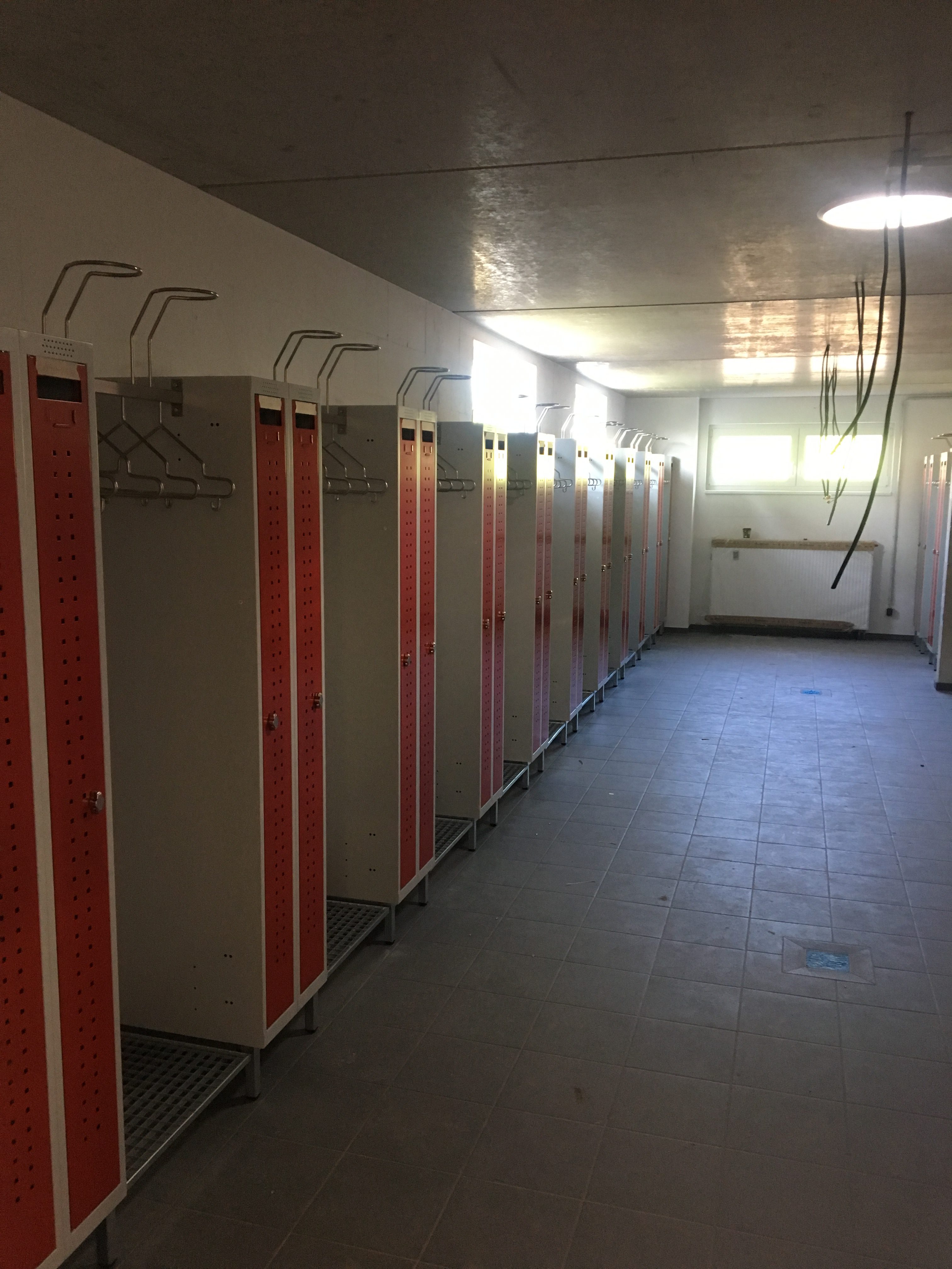 Zunächst waren die Umkleidekabinen die wichtigsten Räume, da letzte Woche die Spinde angeliefert und montiert wurden sind.