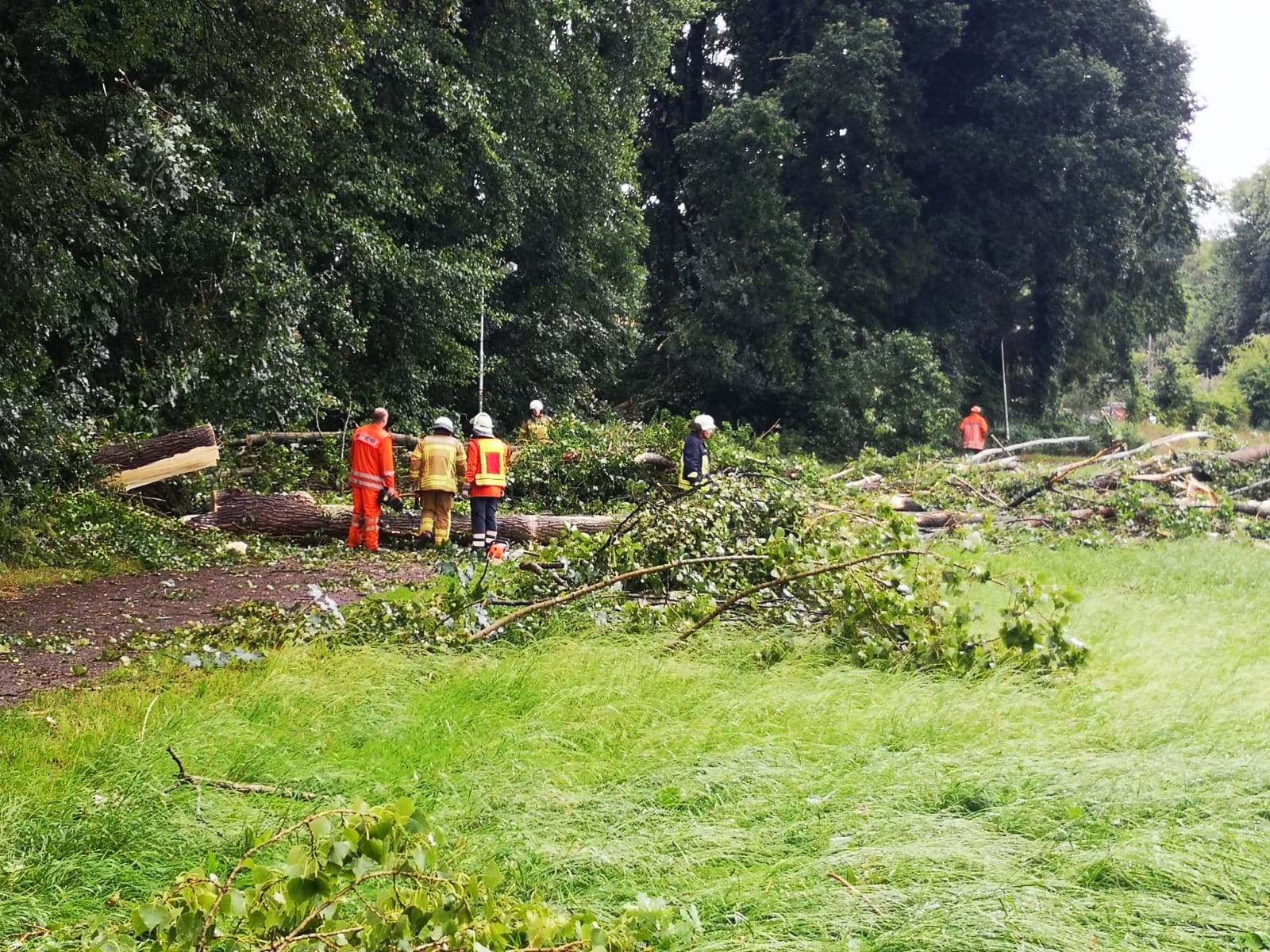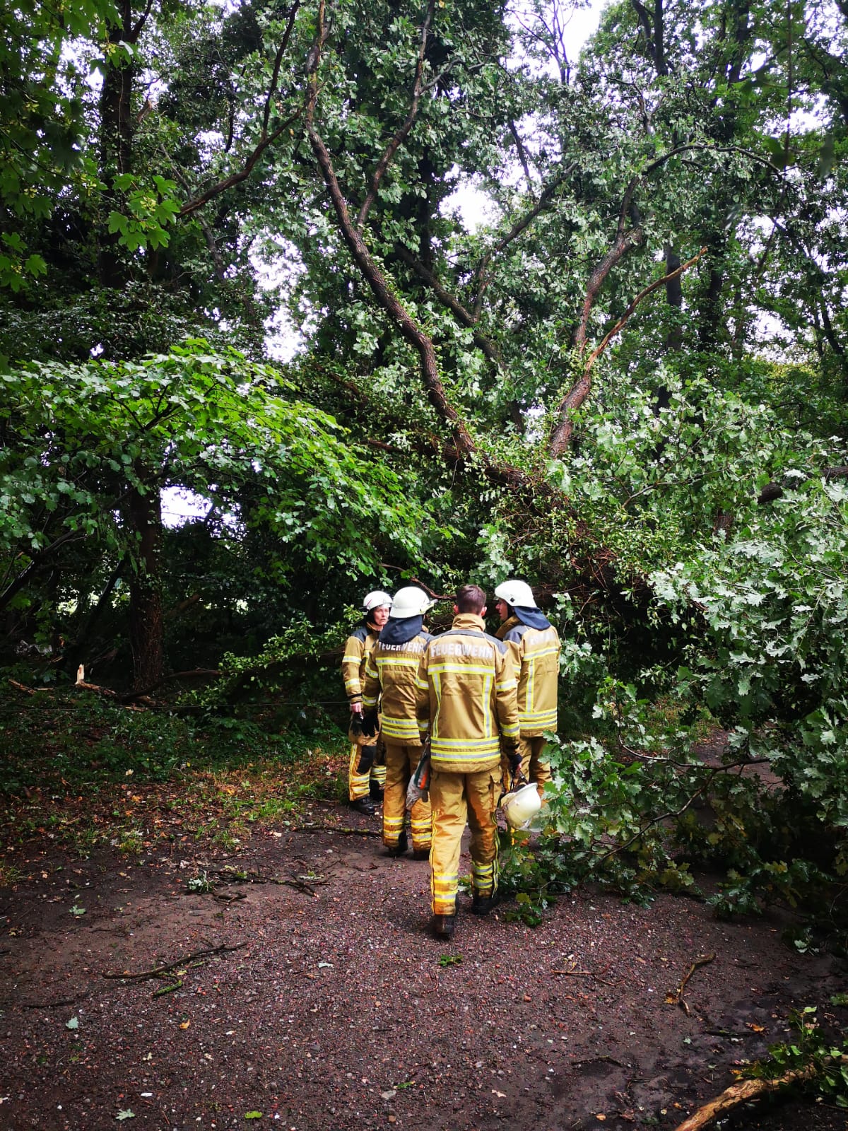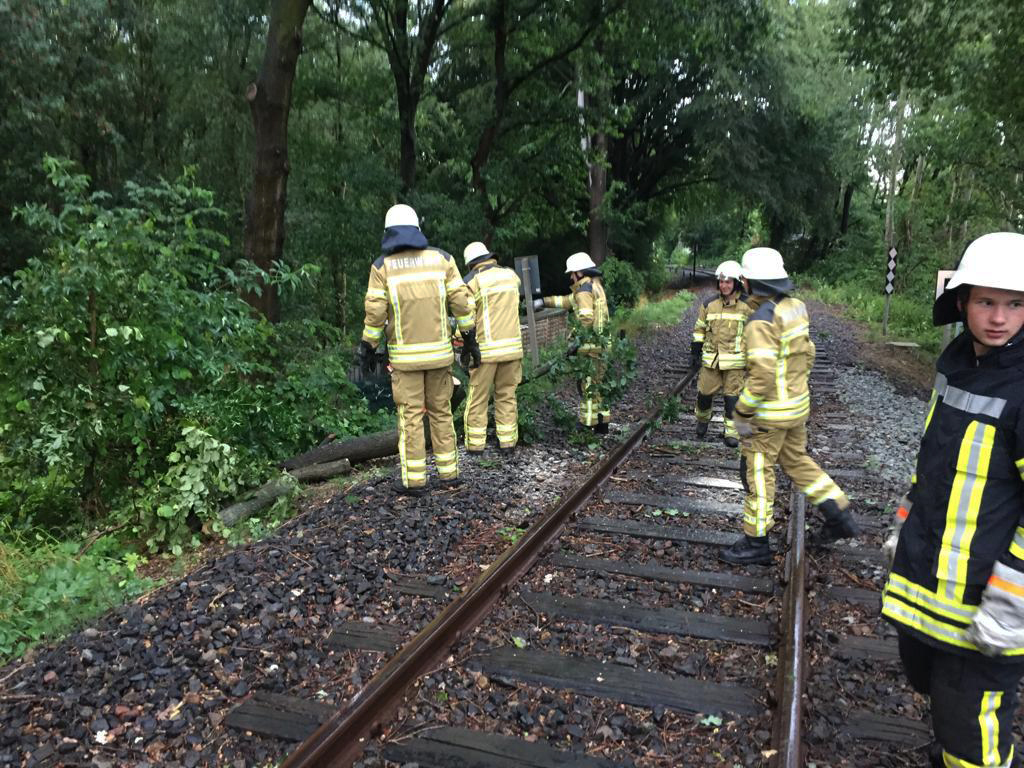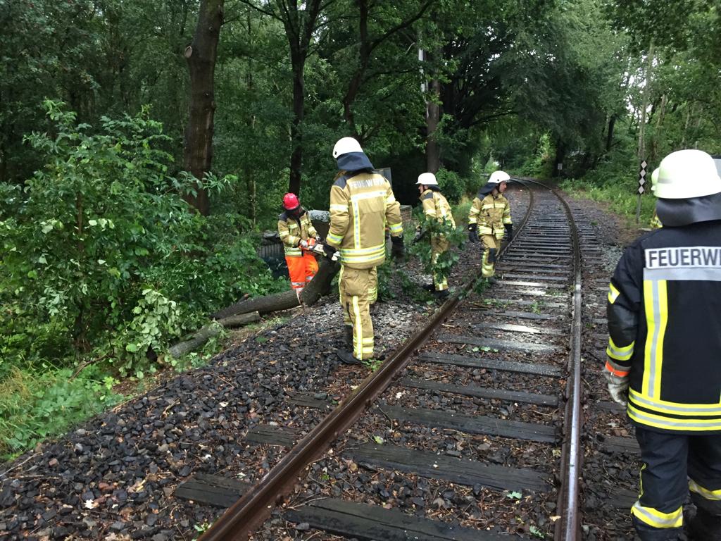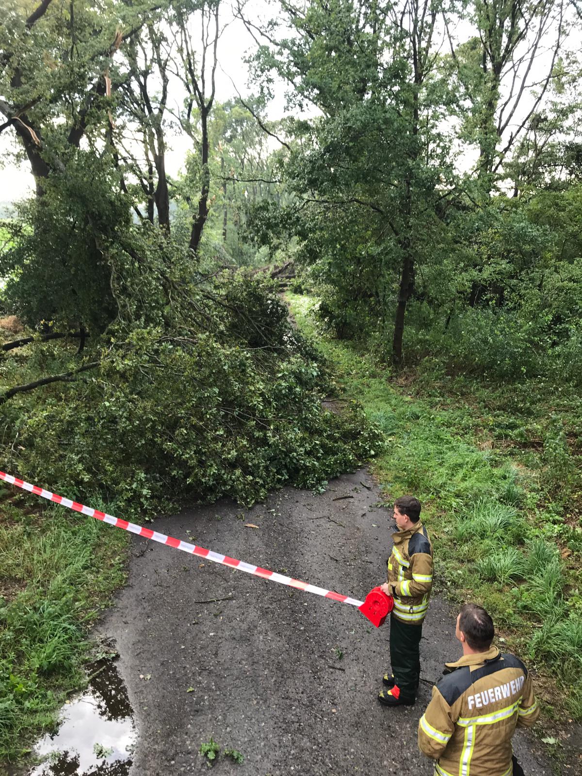 Die heutige Gewitterfront sorgte für diverse Hilfeleistungseinsätze im gesamten Stadtgebiet. Sechs der zehn Ortsfeuerwehren waren im Einsatz. In den meisten Fällen behinderten oder gefährdeten umgefallene Bäume bzw. herabstürzende Äste den Verkehr.