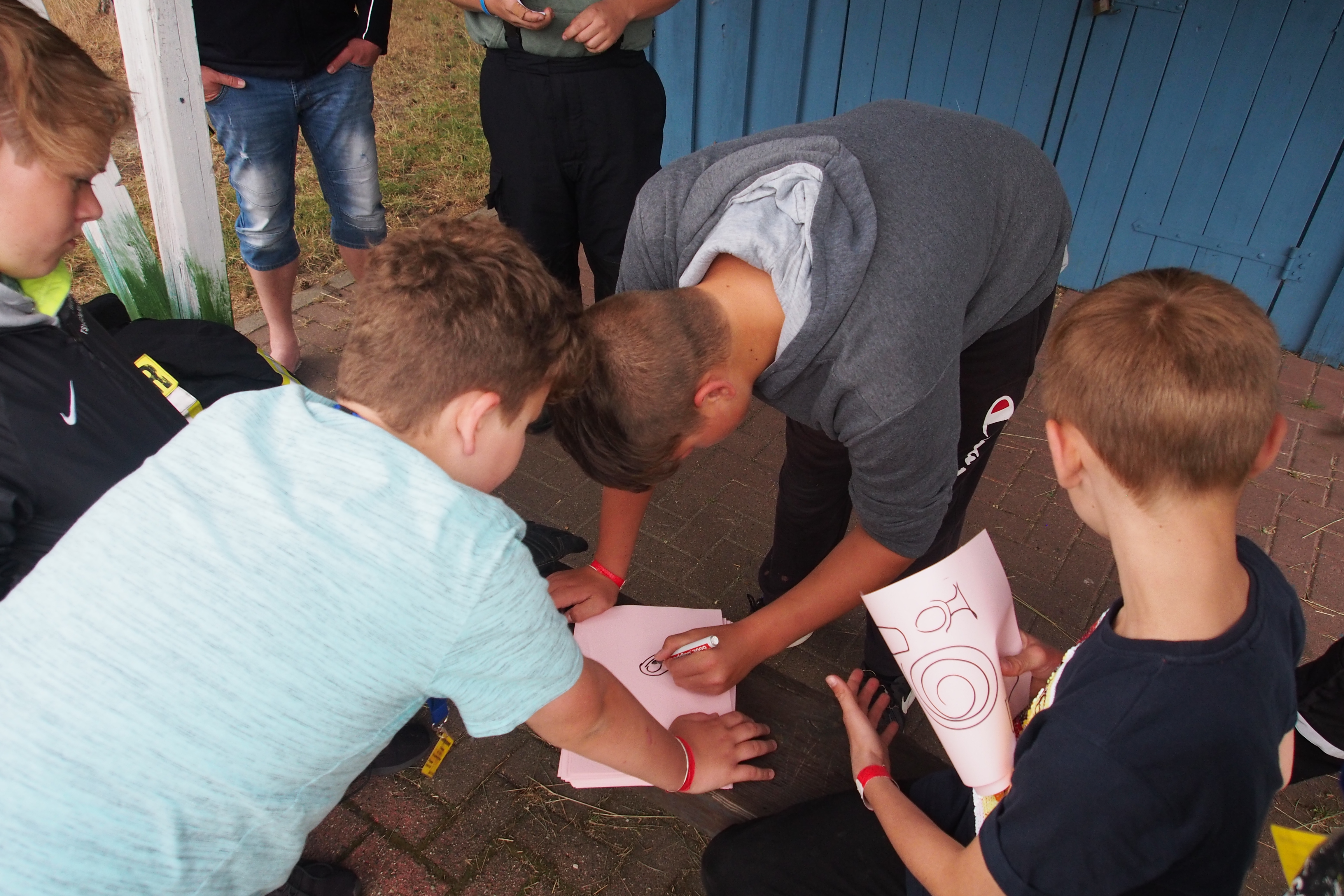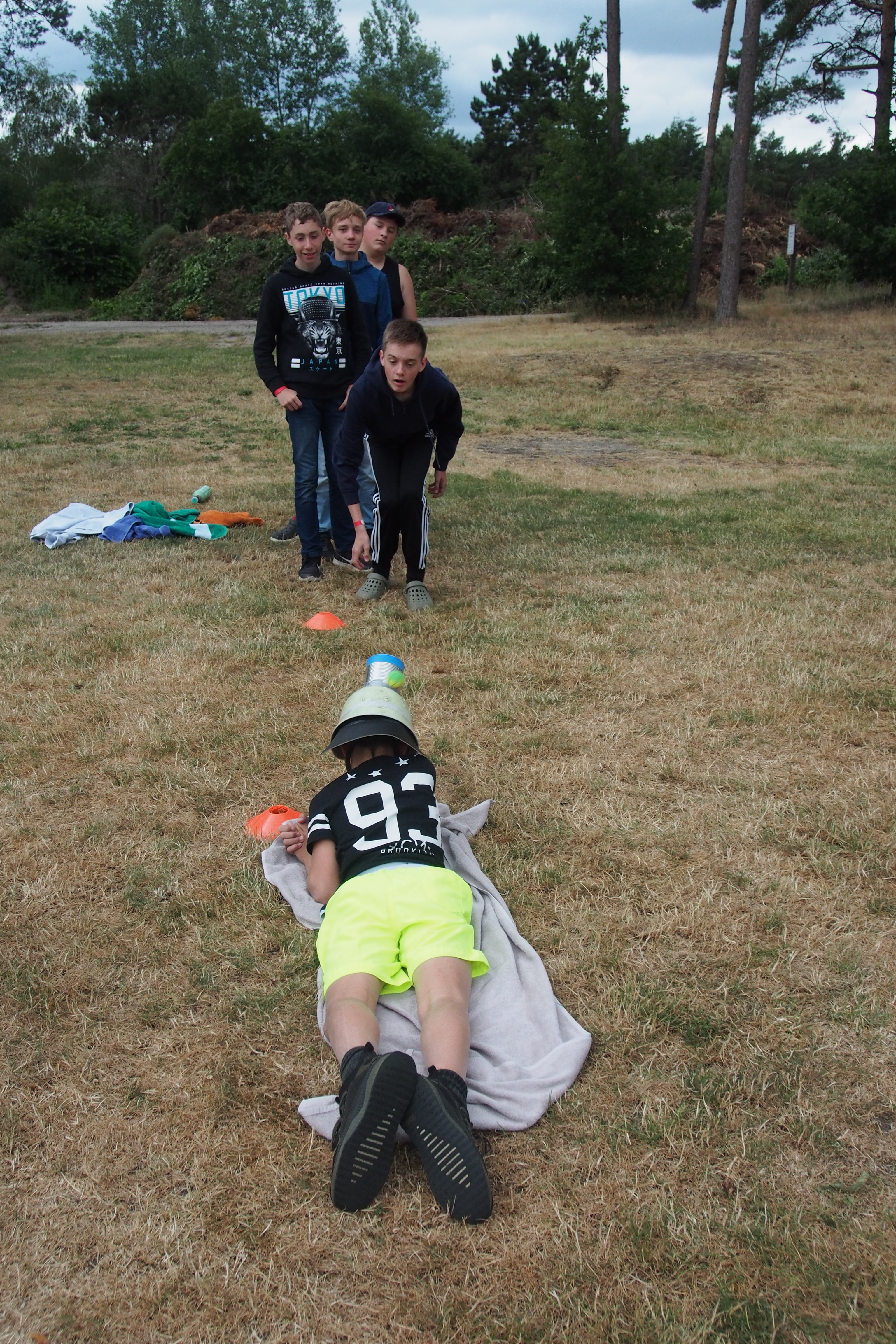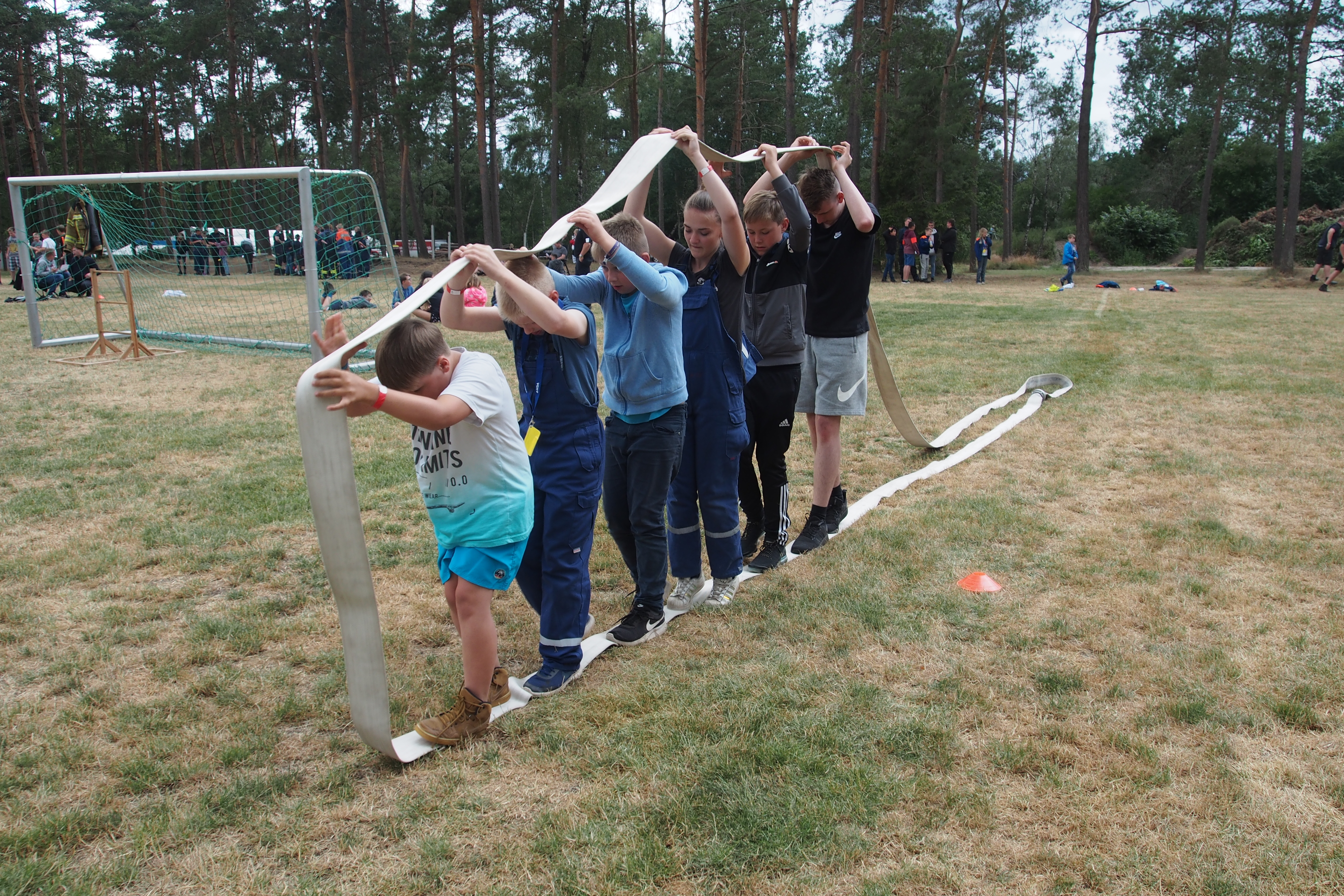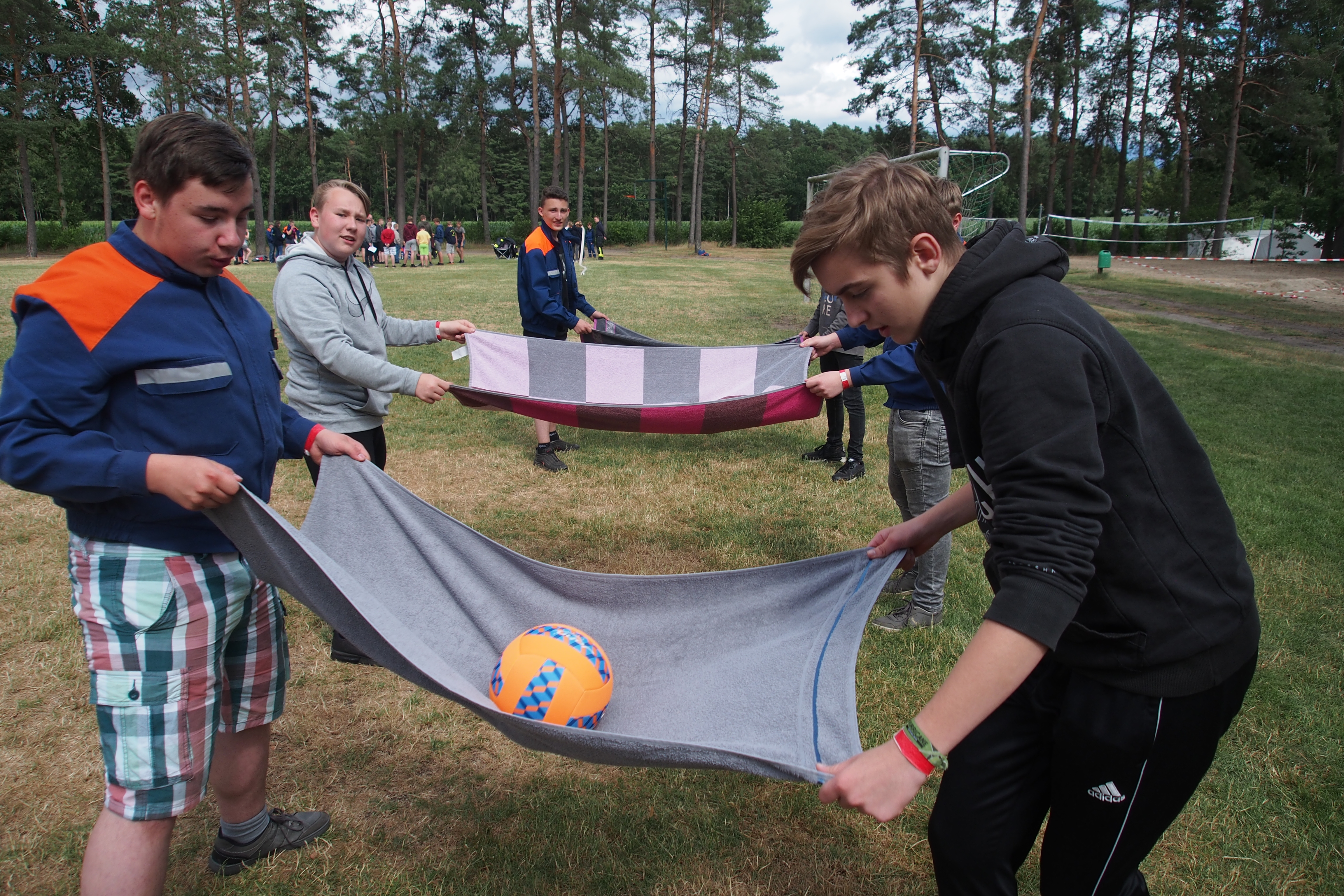 Die 15 Stationen mit ganz unterschiedlichen Aufgaben absolvierten wir am Nachmittag. Wir haben Papierflieger geworfen, gegurgelte Lieder erraten, Feuerwehrleine fädeln, Geld in ein Schnapsglas unter Wasser werfen, Kugeln gestoßen und noch mehr.