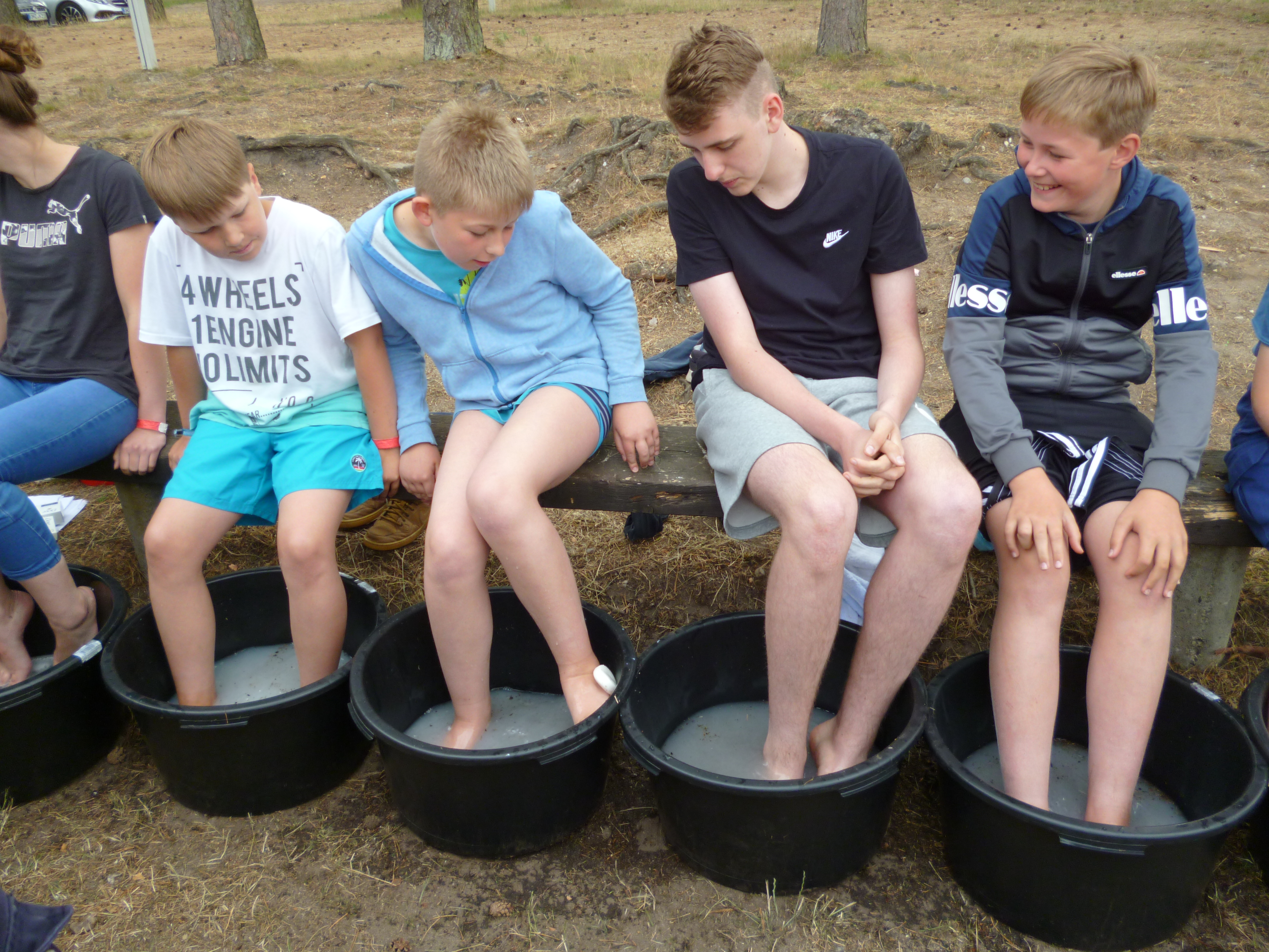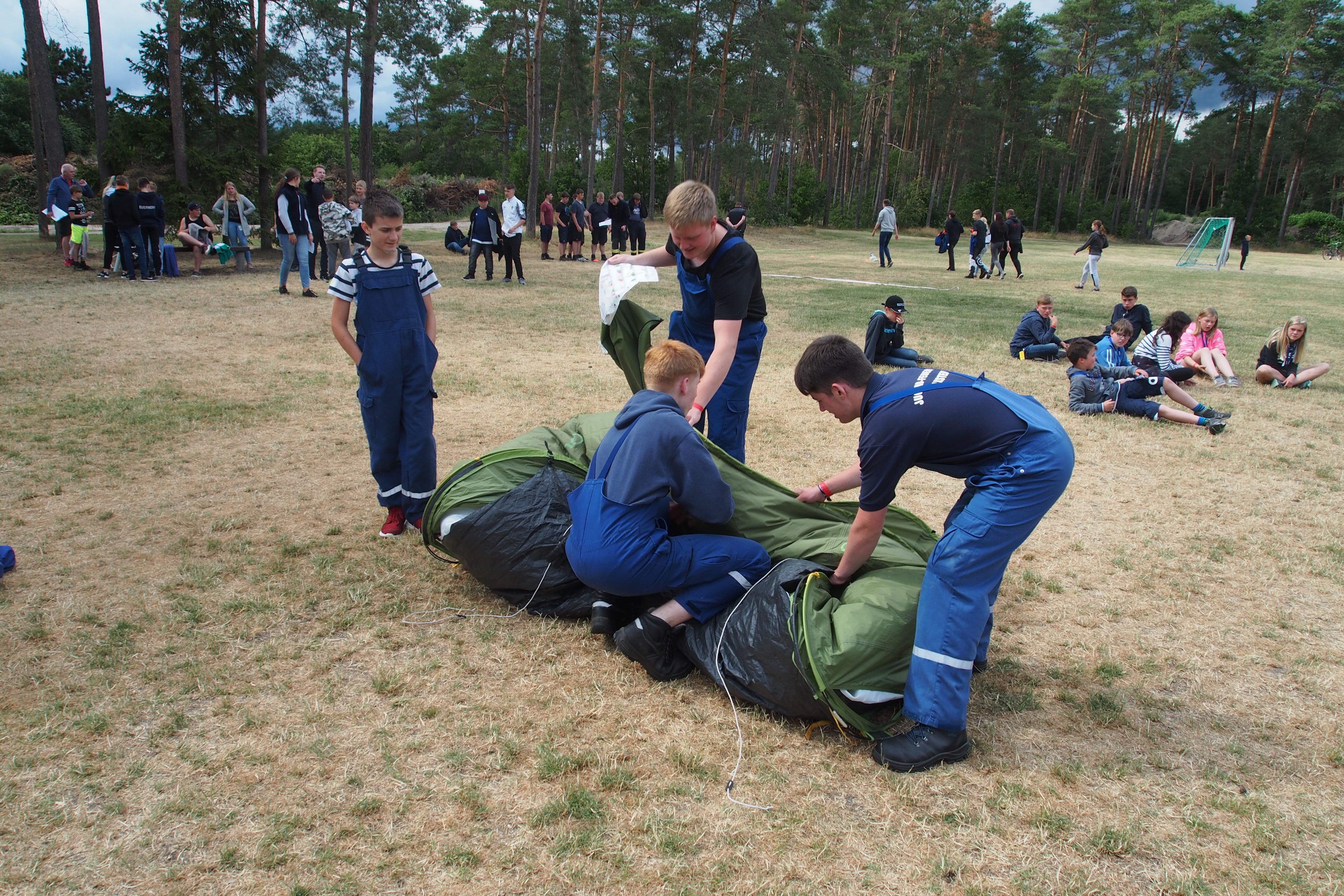 Am Vormittag haben wir Freizeit. Mit anderen Worten, wir bauen an unseren Wochenaufgaben weiter und es gibt bei der Jugendfeuerwehr Garlstedt eine Zeltlagerhochzeit mit allen drum und dran.