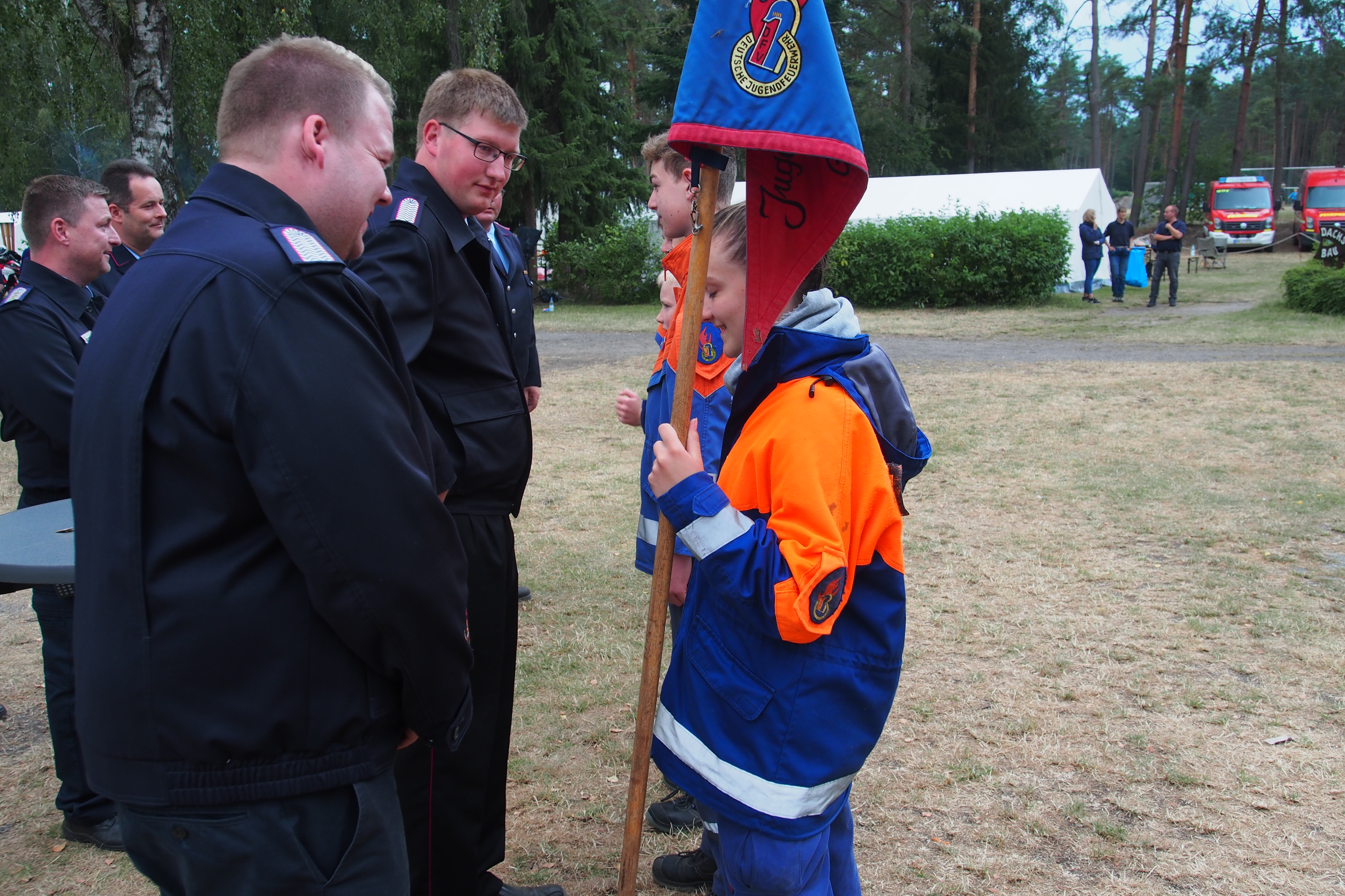 Endlich ist die Vergabe der Jugendflamme 2. Jetzt wird gefeiert. Alle Teilnehmer haben bestanden und das Feiern wir, mit einer Zeltdisco bis 23.00 Uhr.