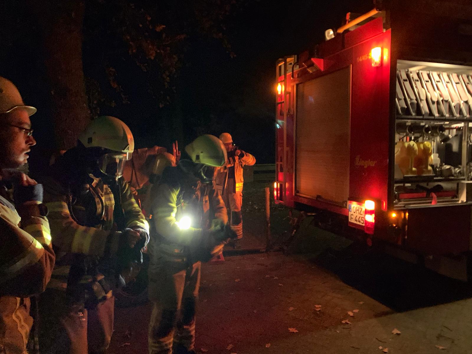 Während der Durchsuchung des Gebäudes, stieß der vorgehende Angriffstrupp auf verschiedene Gefahren – in Form von Gasflaschen, Benzinkanistern und Ölen. Diese mussten umgehend aus dem Gefahrenbereich gebracht werden, bevor die Durchsuchung weiter fortgesetzt werden konnte. Nach kurzer Zeit konnte die Person auf dem Dachboden gefunden und dem Rettungsdienst übergeben werden.