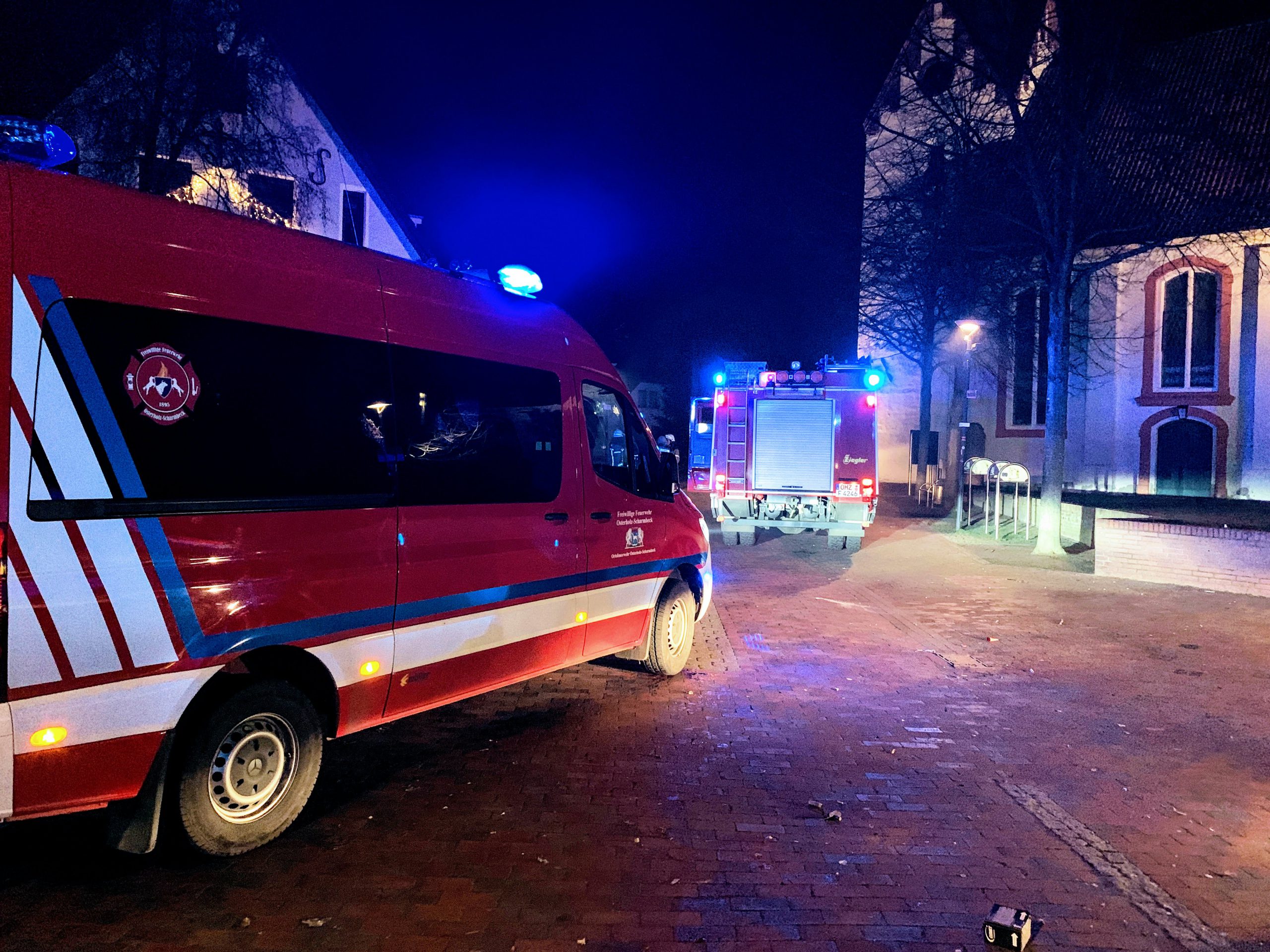 Während die Brandbekämpfung noch lief, gab es um 3:29 Uhr eine weitere Feuermeldung an der Kirche direkt auf dem Marktplatz. Aufgrund der Gefährdung für den Innenstadtbereich wurde die Ortsfeuerwehr Pennigbüttel durch die Leitstelle alarmiert und ein Fahrzeug durch die Einsatzleitung der Bahnhofstraße zum Marktplatz entsandt.