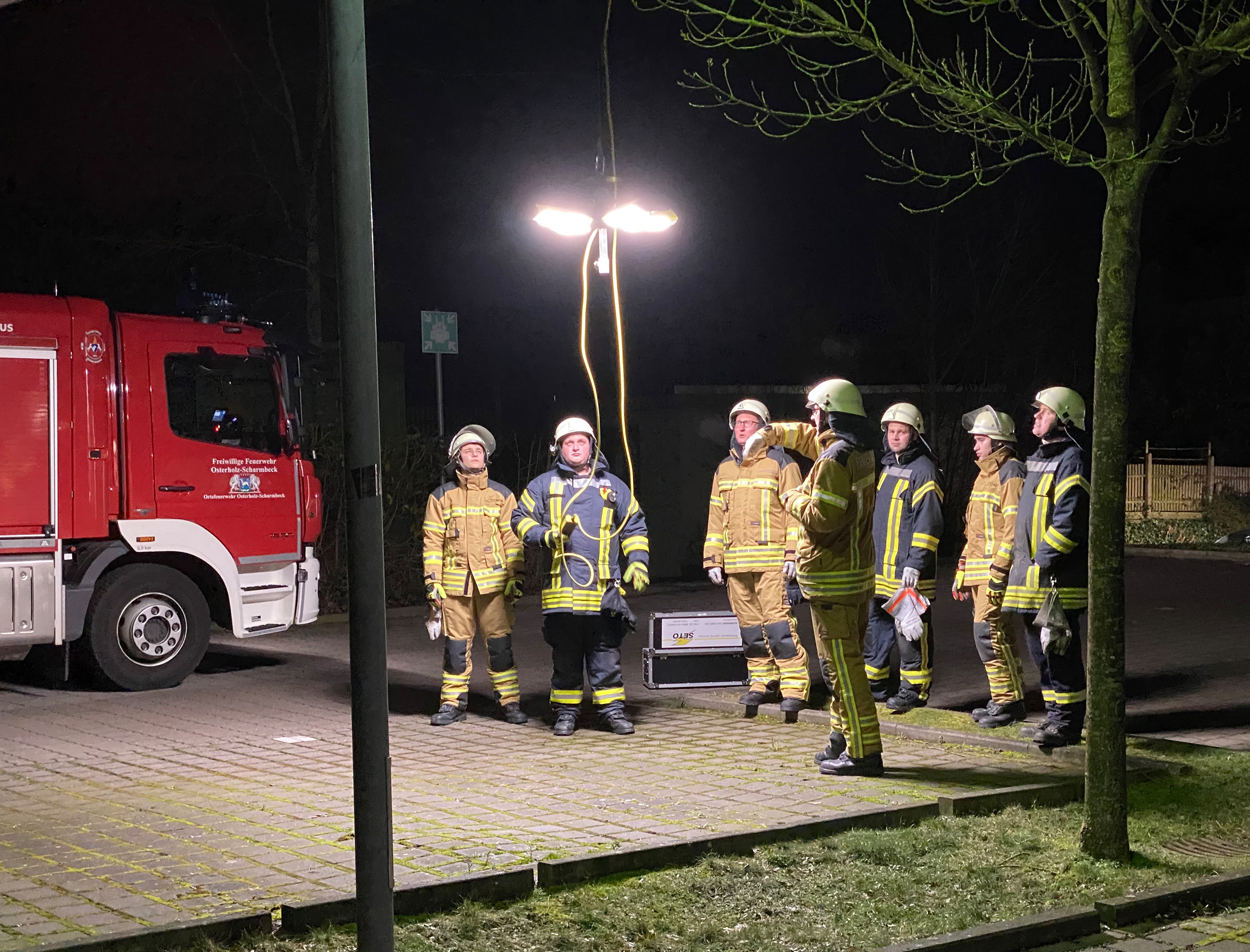 Rund die Hälfte aller Einsätze der Ortsfeuerwehr Osterholz-Scharmbeck werden nicht bei regulärem Tageslicht absolviert. Gleichzeitig ist die optimale Ausleuchtung ein wichtiger Erfolgsfaktor bei der Arbeit an einer Einsatzstelle. Sind Leuchtmittel nicht richtig positioniert, stehen die Einsatzkräfte schnell im Dunkeln oder im Schatten und können nicht optimal arbeiten. Auch für die Eigensicherung ist es nicht unerheblich, dass eine Einsatzstelle bei Dunkelheit oder der Dämmerung schnell von Verkehrsteilnehmern als solche erkannt wird. Darüber hinaus ist auch der Rettungsdienst dankbar, wenn z.B. bei einem Verkehrsunfall ausreichend Lichtquellen eine präzise Arbeit am Patienten ermöglichen. Gelegentlich muss auch die Landung eines Rettungshubschraubers bei Dunkelheit ermöglicht werden. Somit ist das Thema wichtig genug, um ihm einen gesonderten Übungsdienst zu widmen. Primäres Mittel zur Beleuchtung ist am Tanklöschfahrzeug, Gerätewagen Logistik und dem Hilfeleistungslöschgruppenfahrzeug der pneumatisch gesteuerte Lichtmast.