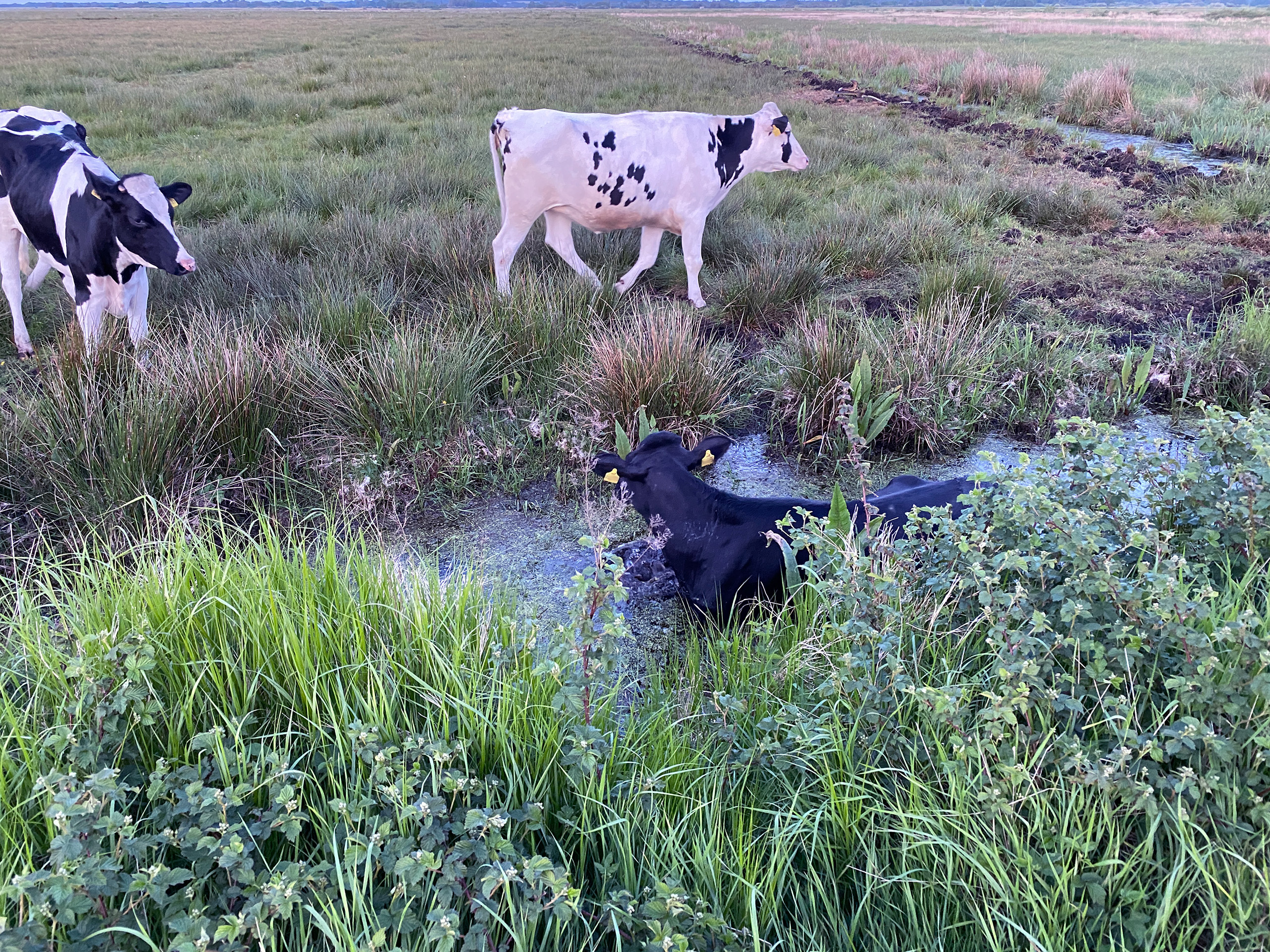Auch Tierrettung gehört zum Einsatzspektrum der Feuerwehr, und so alarmierte die Leitstelle Bremerhaven heute Abend die Ortsfeuerwehr Osterholz-Scharmbeck mit dem Stichwort: Tierrettung – groß. Am Einsatzort fanden die Einsatzkräfte eine Kuh in einem Wassergraben neben der Weide vor. Während sich ein Trupp mit Wathosen ausrüstete um in den Graben zu steigen, gelang es gleichzeitig einer Einsatzkraft gemeinsam mit dem Besitzer des Tieres, dieses aus seiner unglücklichen Lage zu befreien. Da die Kuh offensichtlich unbeschadet wieder zu ihrer Herde zurückkehrte, war der Einsatz erfolgreich abgeschlossen und die Einheiten konnten wieder einrücken.