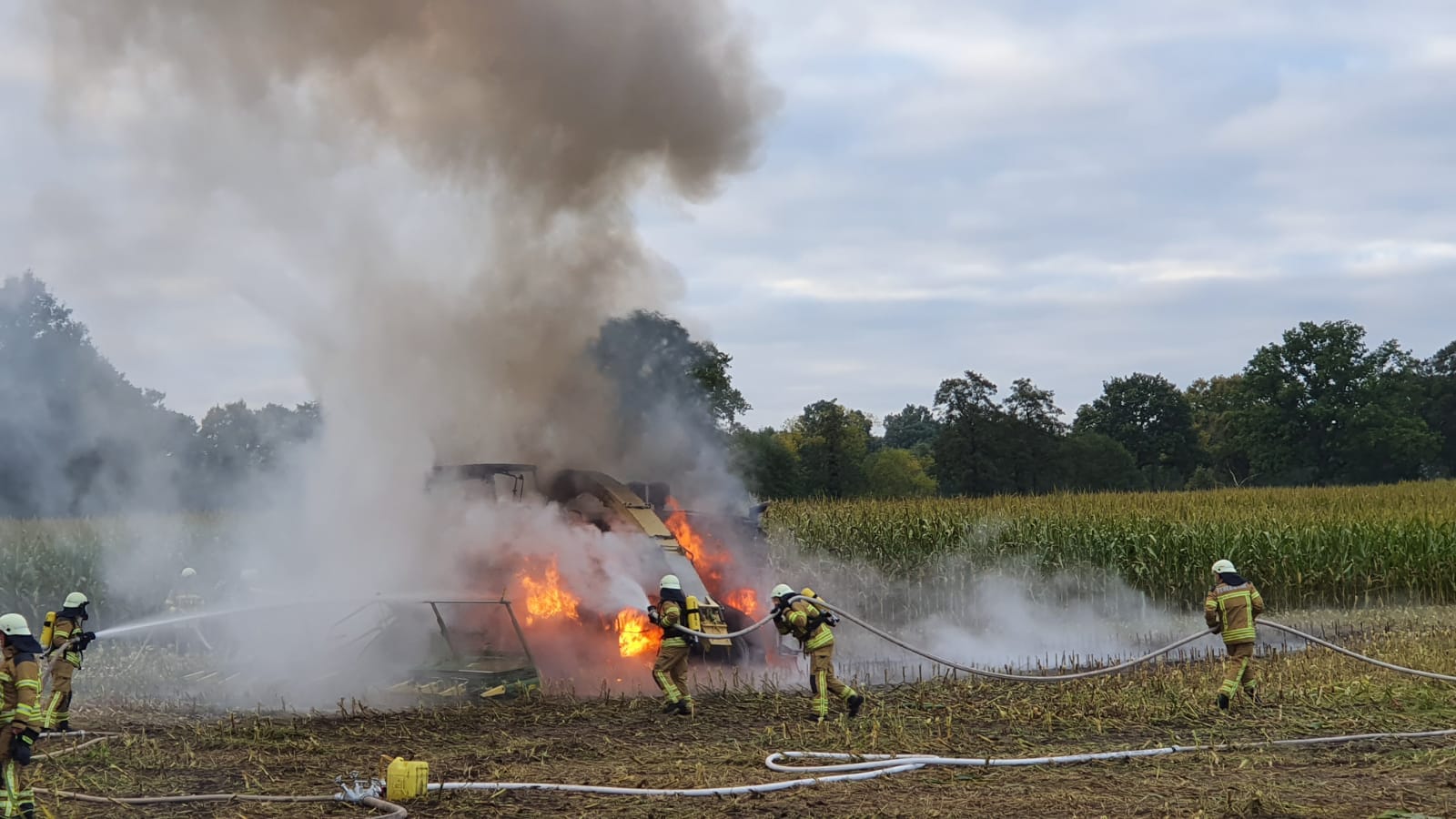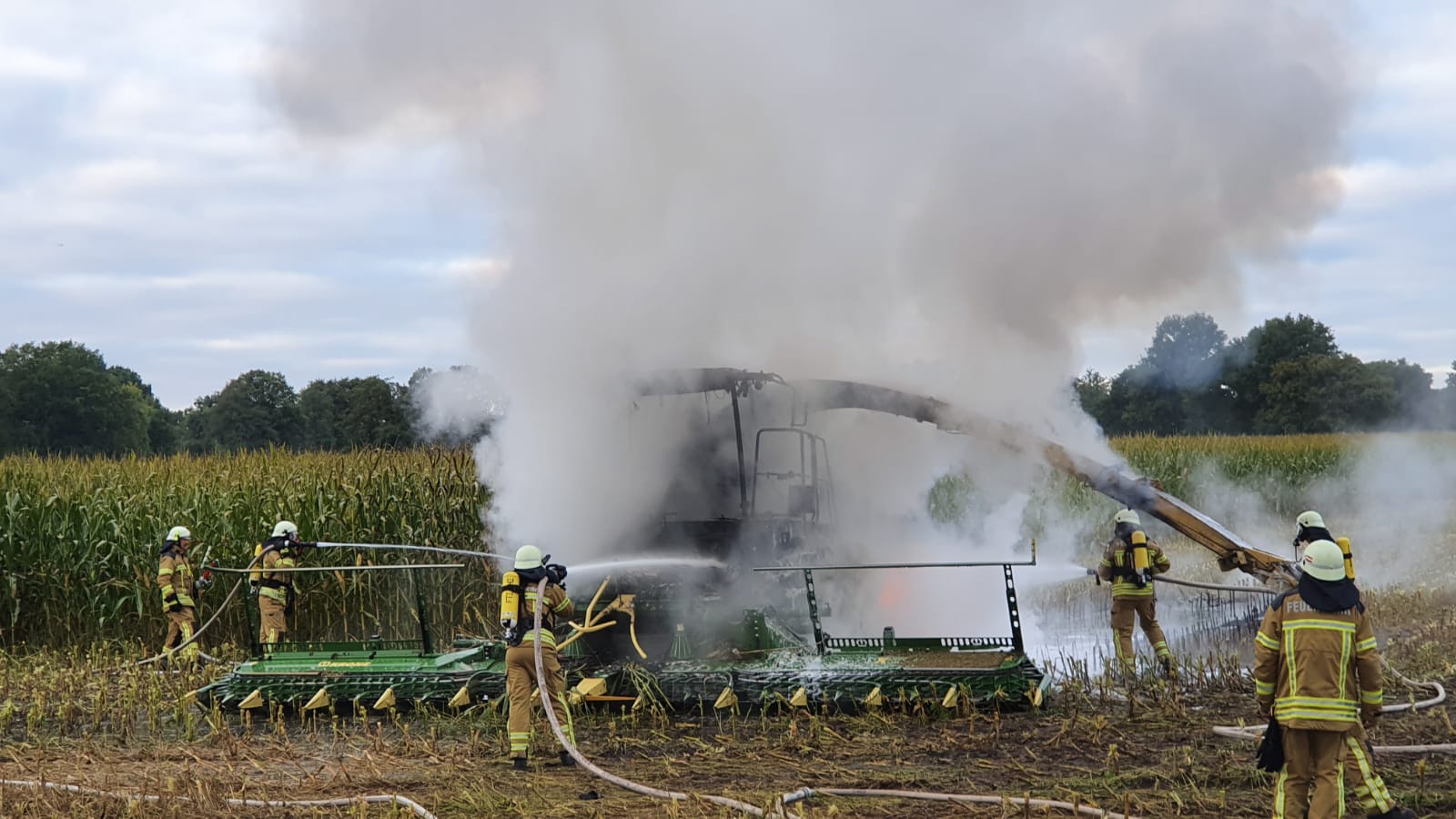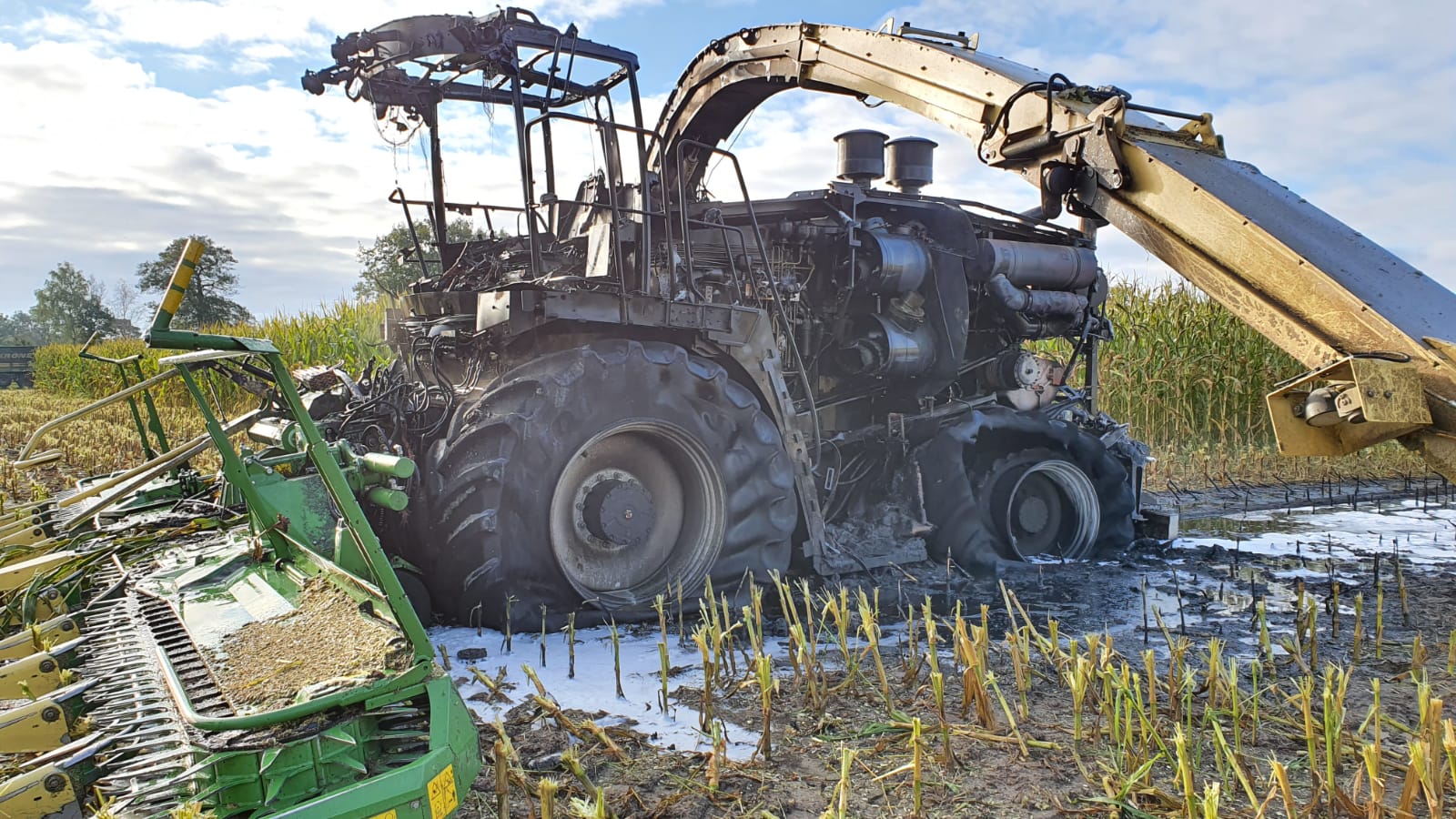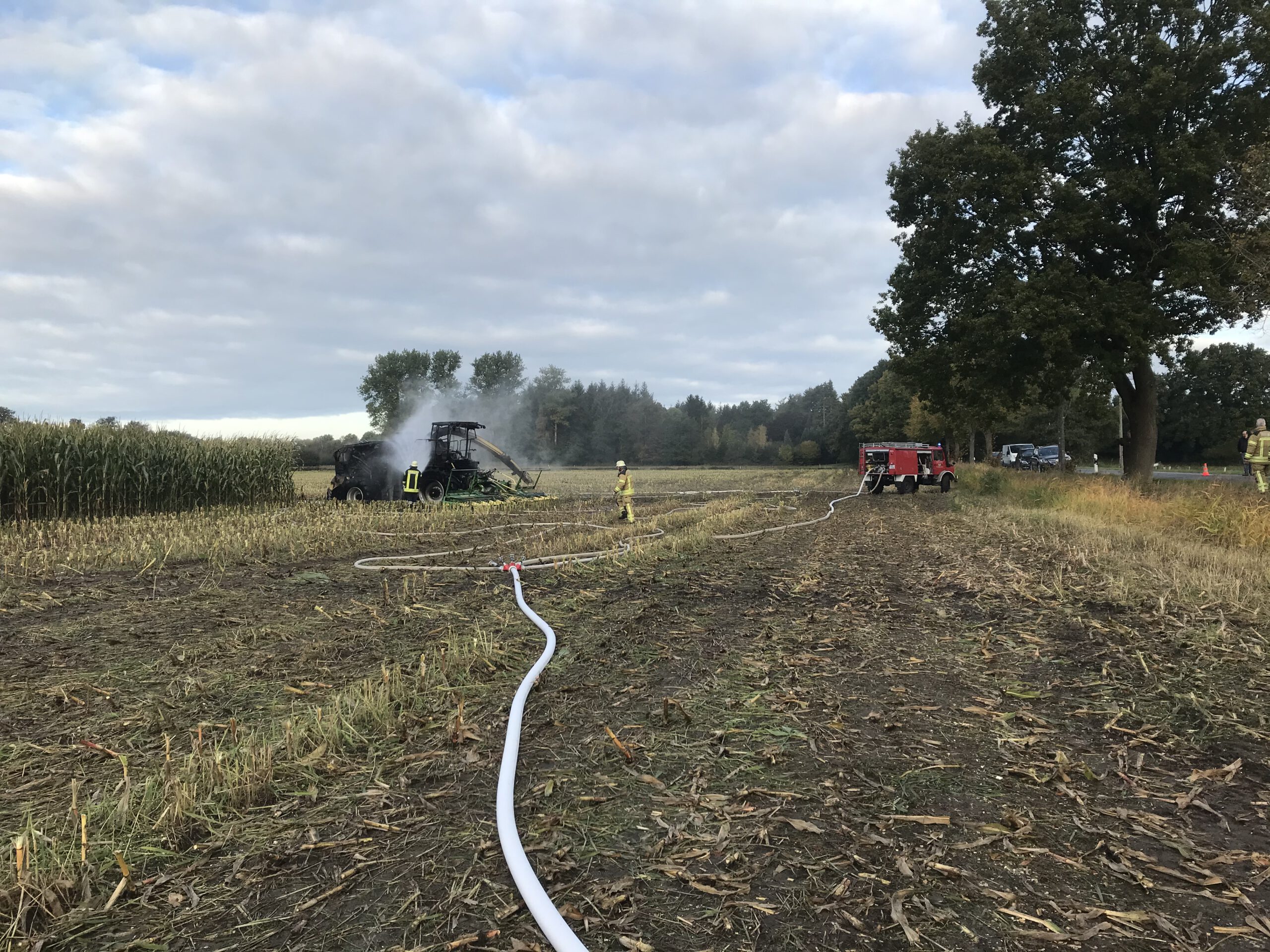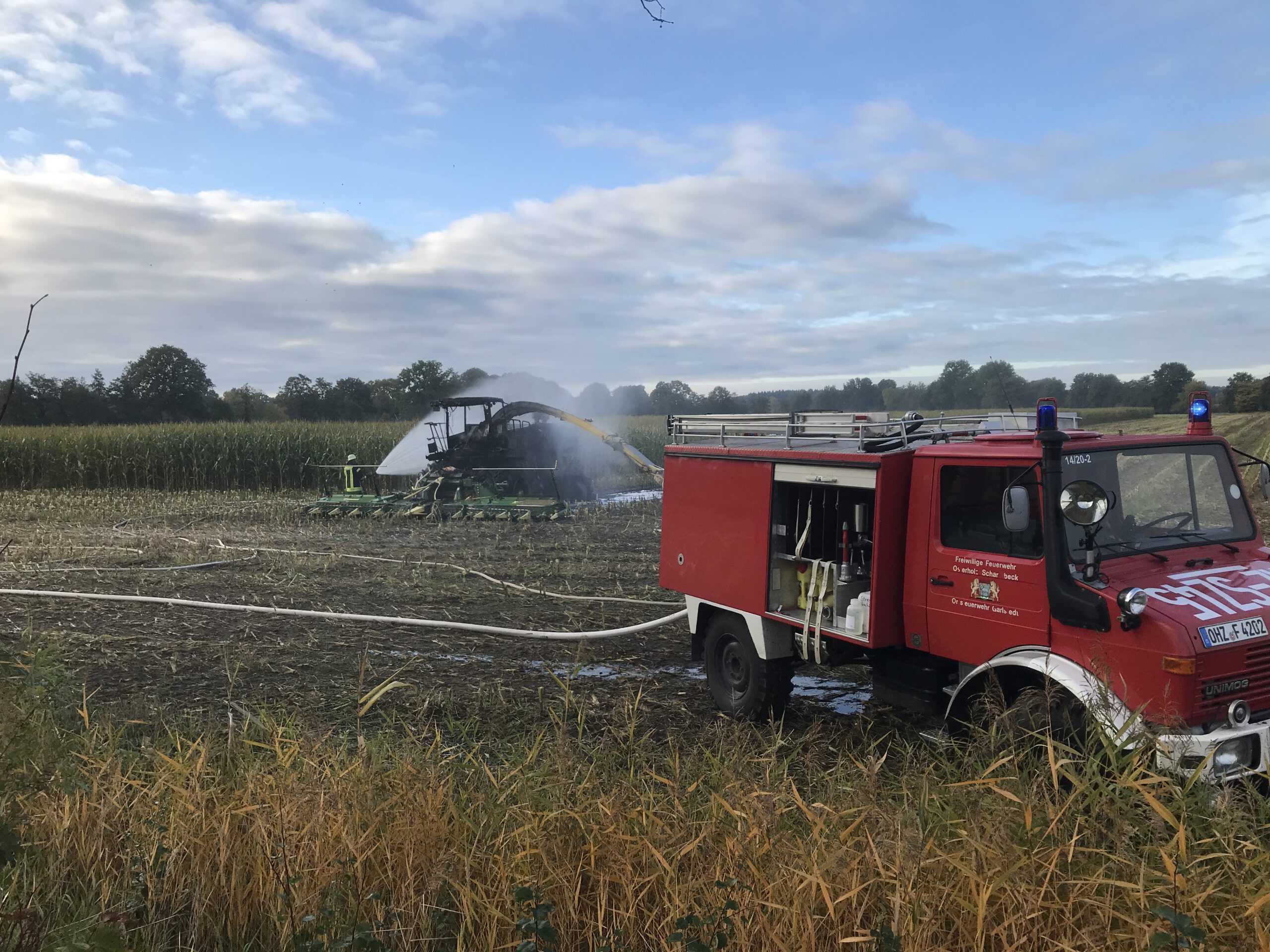 Am Morgen des 19.10.2020 wurden die Ortsfeuerwehren Ohlenstedt und Garlstedt gegen 8:30 Uhr zu einem brennenden Maishäcksler auf einem Acker alarmiert.