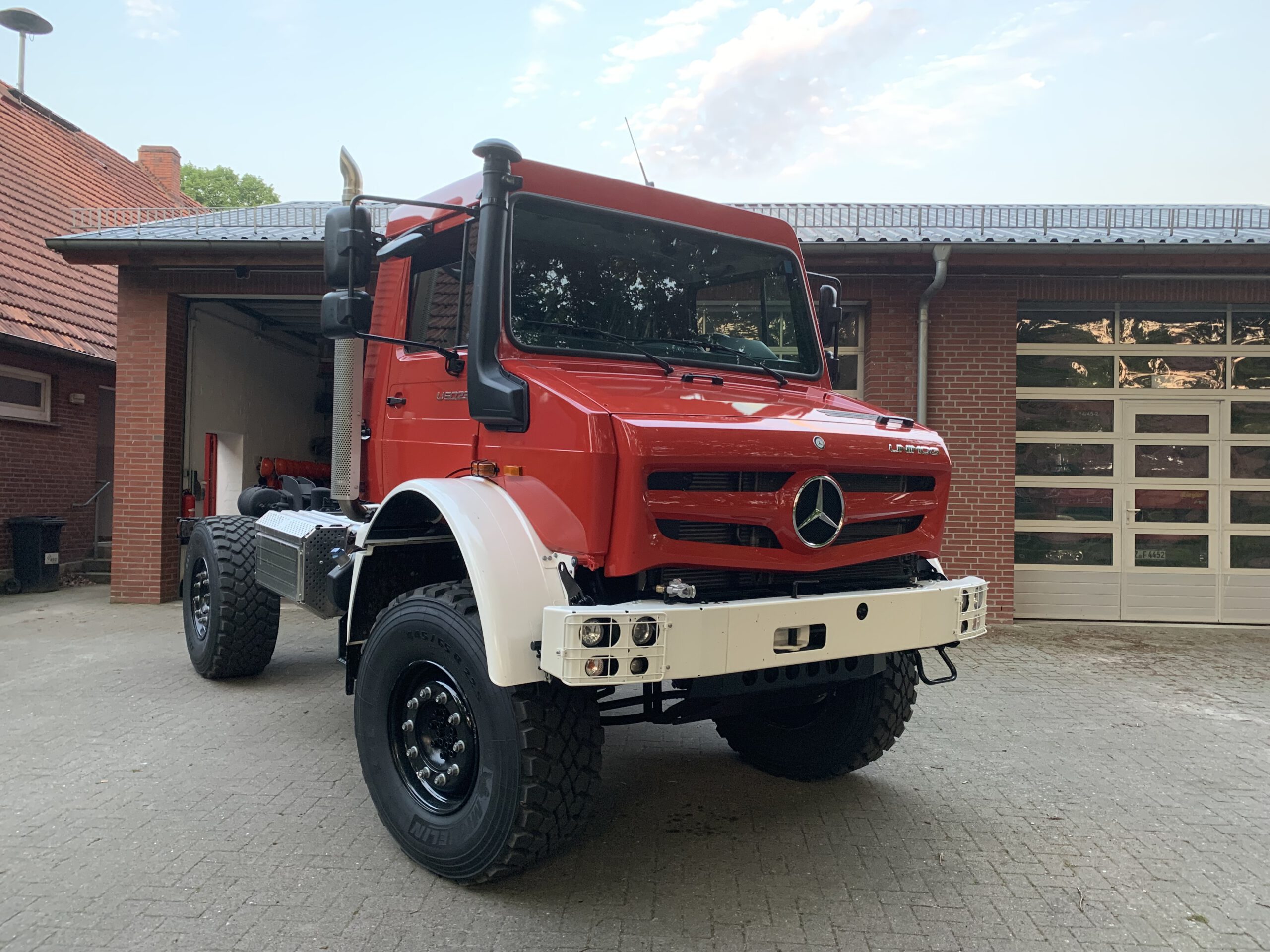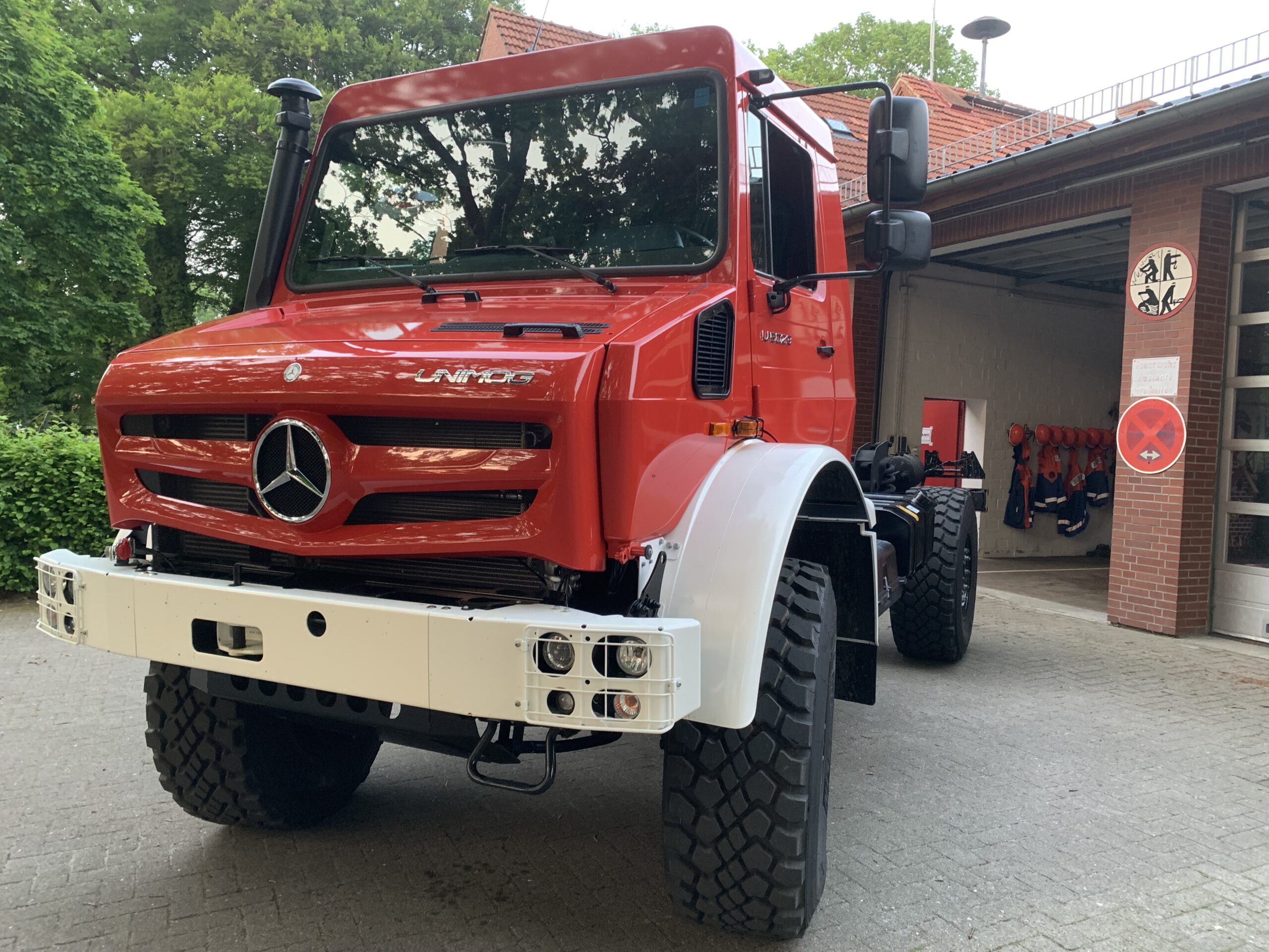 Am Freitag, den 04.06.2021 wurde das Fahrgestell für das neue TLF 3000 von der Firma Peter Meineke nach Garlstedt überführt. Das Fahrgestell ist ein hochgeländegängiger Mercedes Benz Unimog U5023 mit 231 PS und Allradantrieb. Das Fahrzeug wird vorübergehend in der Fahrzeughalle der Ortsfeuerwehr stehen, bis es voraussichtlich zum Ende des Jahres an die Firma Schlingmann übergeben wird. Die Firma Schlingmann wird dann den Kofferaufbau für die feuerwehrtechnische Beladung konstruieren.