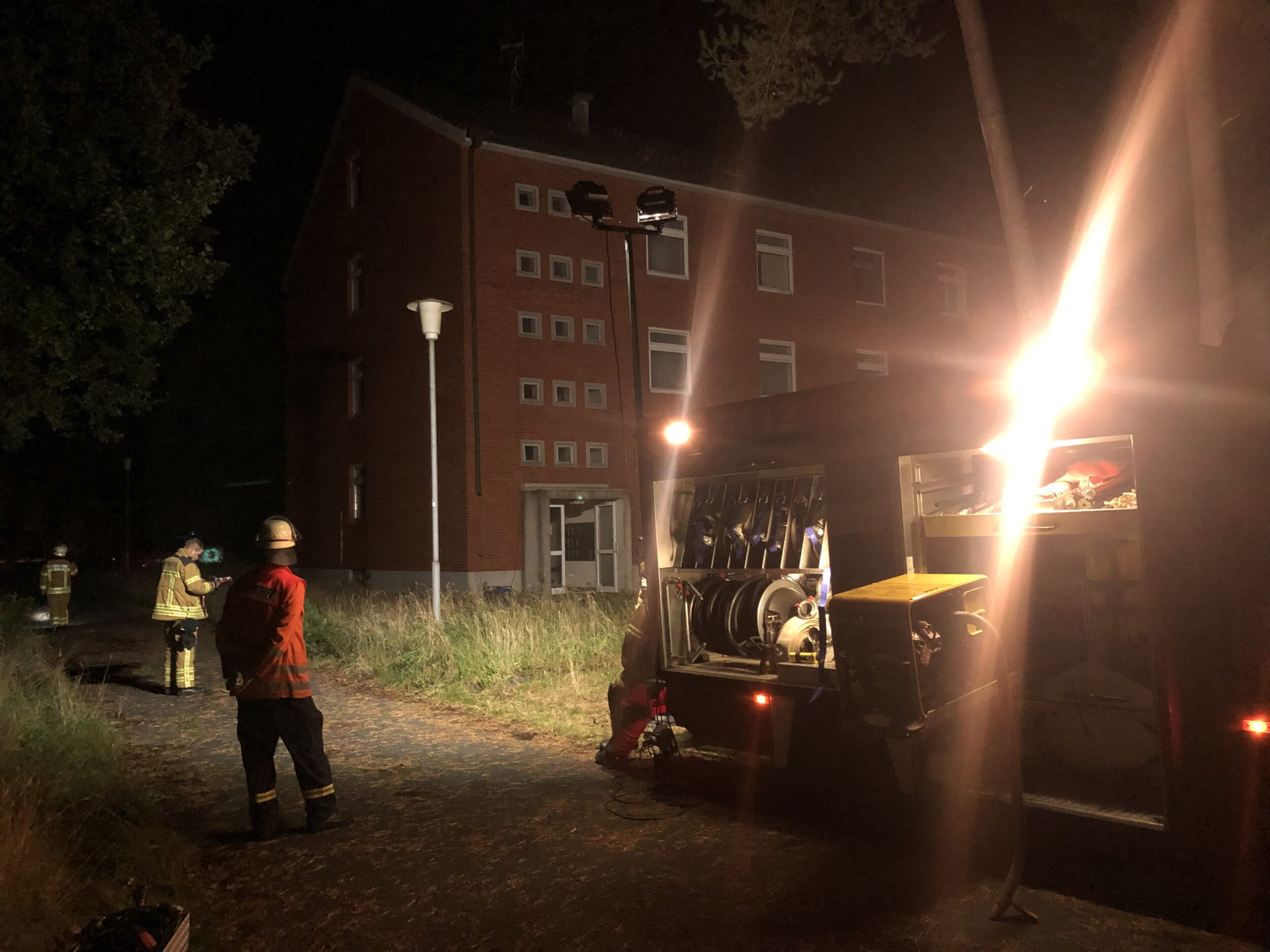 Am 04.10.2021 um 19:30 Uhr führte die Ortsfeuerwehr Heilshorn eine Atemschutzübung in einer der ehemaligen Unterkünfte der Kaserne Schwanewede durch. Es wurden Personendummies in einigen Räumen platziert und dann das Gebäude künstlich verraucht.  Der Ortsbrandmeister gab dann die entsprechenden Einsatzkommandos an die mit Atemschutz ausgerüsteten Einsatzkräfte ab.  Jeder Atemschutzgeräteträger musste nacheinander die positionierten Personendummies finden und retten.