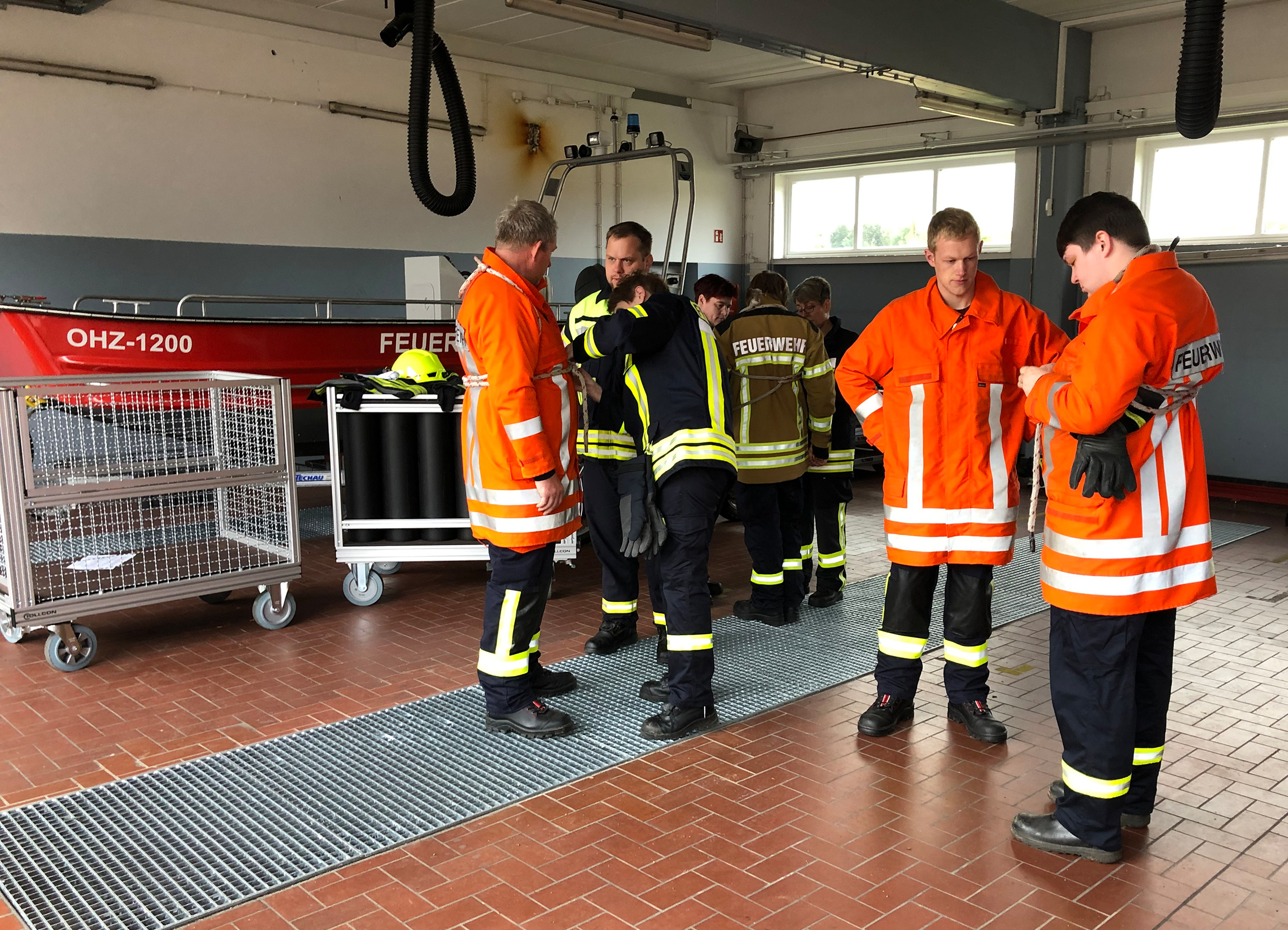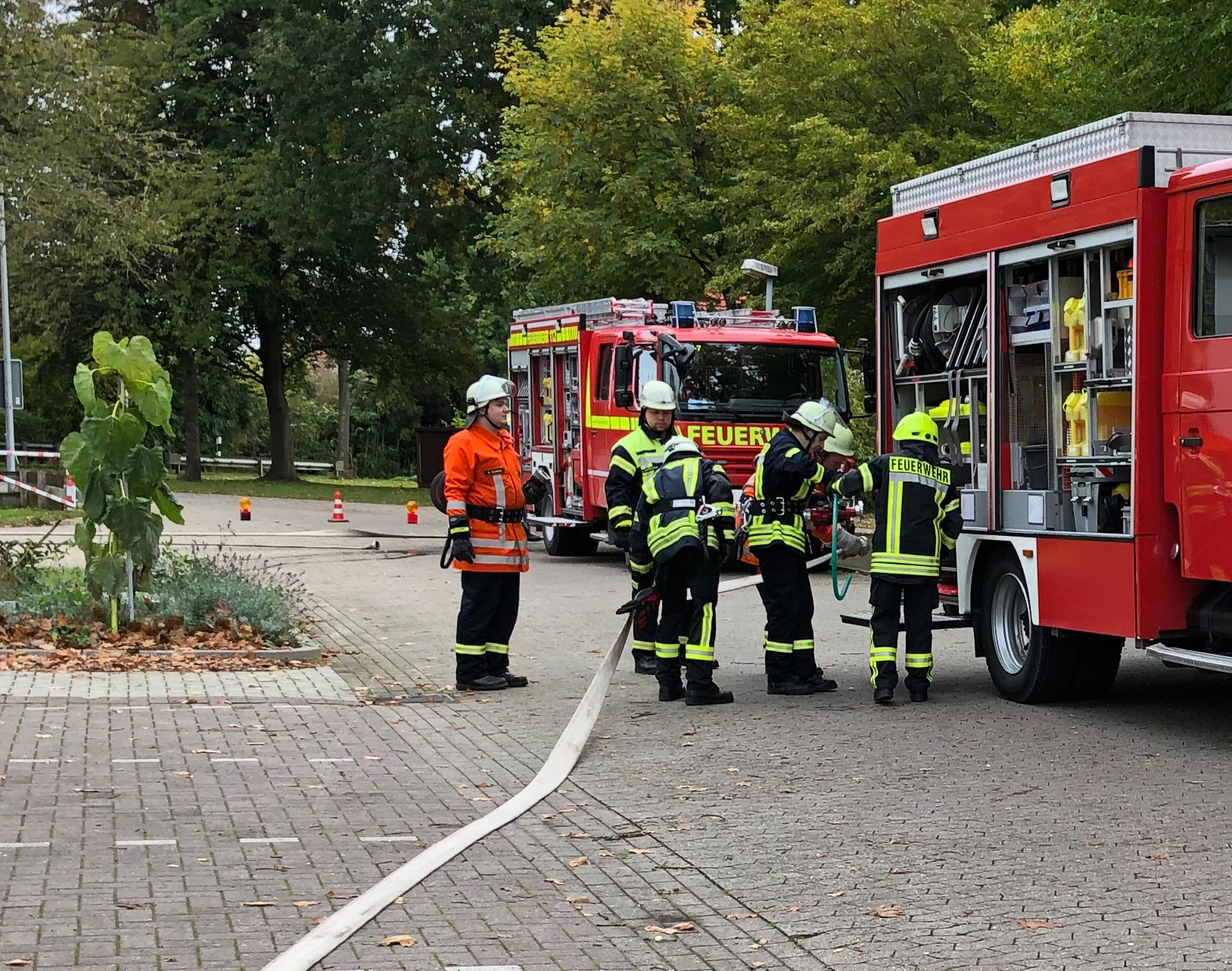 Während der 70-stündigen Ausbildung steht regelmäßig die praktische Ausbildung an Fahrzeugen und Geräten im Vordergrund. Hierzu stellen regelmäßig Feuerwehren aus dem Landkreis ein Fahrzeug zur Verfügung. Aus dem Stadtgebiet Osterholz stellten während dieses Lehrganges die Ortsfeuerwehr Osterholz-Scharmbeck ihr LF8 sowie die Ortsfeuerwehr Scharmbeckstotel ihr neues LF20KatS inkl. Maschinisten zeitweise zur Verfügung. Torben Breden, der als Maschinist mit dem LF20 KatS vor Ort war erläutert: „Der Maschinist ist Fahrer des Einsatzmittels und bedient die Feuerlöschkreiselpumpe sowie die im Löschfahrzeug verlasteten Geräte wie z.B. die Tragkraftspritze oder den Stromerzeuger. Er ist behilflich bei der Entnahme von Geräten und sichert sofort die Einsatzstelle ab“.