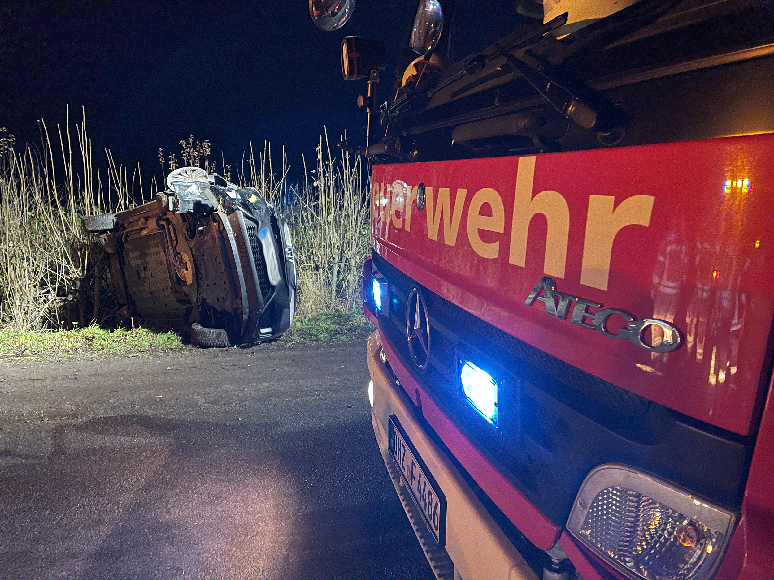 Zu einem Verkehrsunfall auf dem Garlstedter Kirchweg wurde am späten Nachmittag die Ortsfeuerwehr Osterholz-Scharmbeck alarmiert. Beim Eintreffen der Feuerwehr hatte sich der Fahrer bereits aus dem Fahrzeug befreien können und wurde durch den Rettungsdienst versorgt. Die Einsatzkräfte stellten den Brandschutz sicher und leuchteten die Unfallstelle für die Polizei aus. Anschließend wurde das Unfallfahrzeug aufgerichtet und die Fahrzeugbatterie abgeklemmt, bevor die Feuerwehr wieder einrückte.
