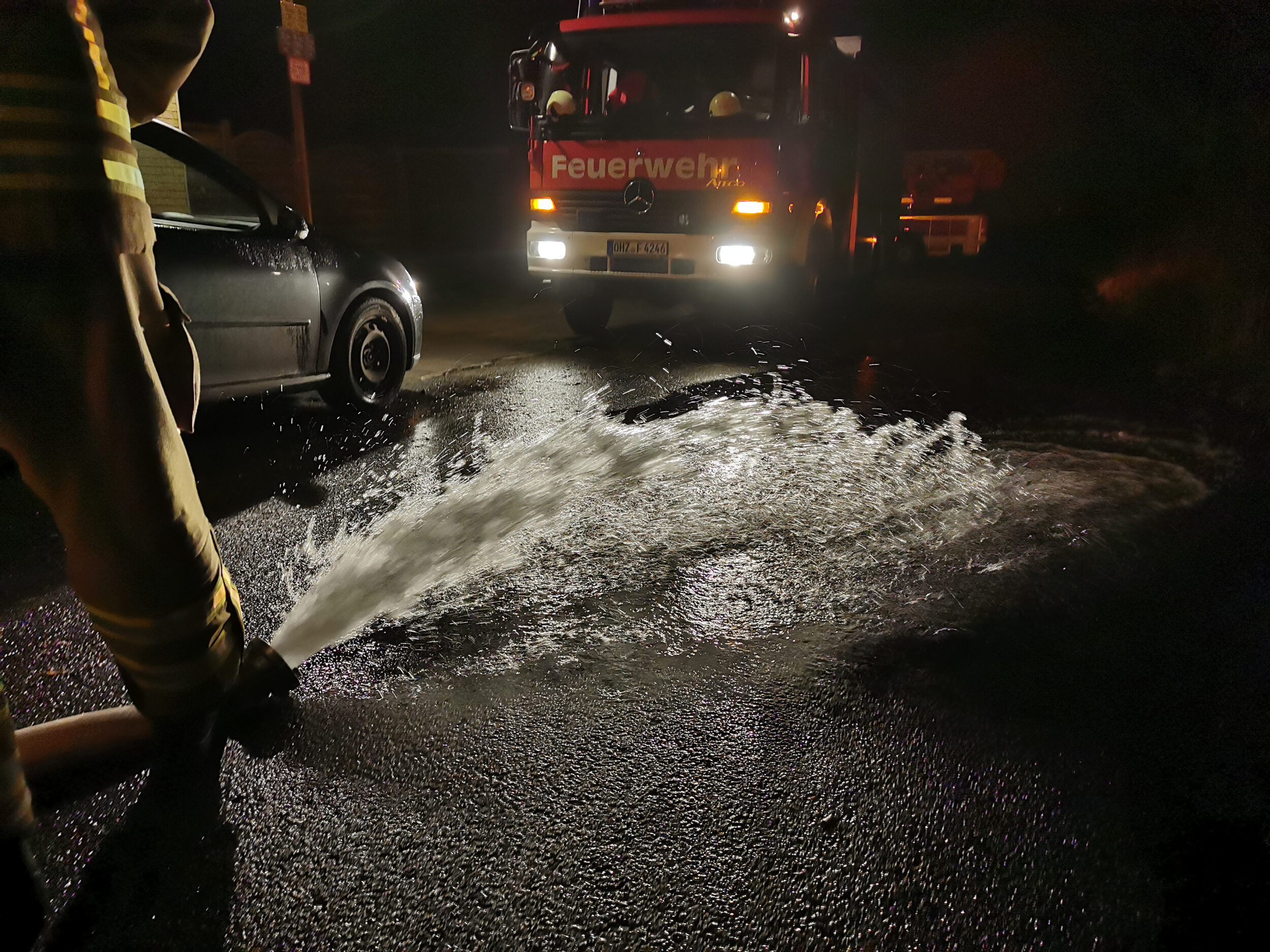 Eine Stunde später erfolgte eine Alarmierung in die Rolandstraße. Hier stand der Keller eines Wohnhauses ca. 50cm unter Wasser. Die Feuerwehr konnte den Wassereintritt stoppen und pumpte den Keller aus. Anschließend wurde die Einsatzstelle den Bewohnern übergeben und die Einsatzkräfte rückten wieder ein – rechtzeitig, um im Feuerwehrhaus das neue Jahr gemeinsam zu begrüßen.