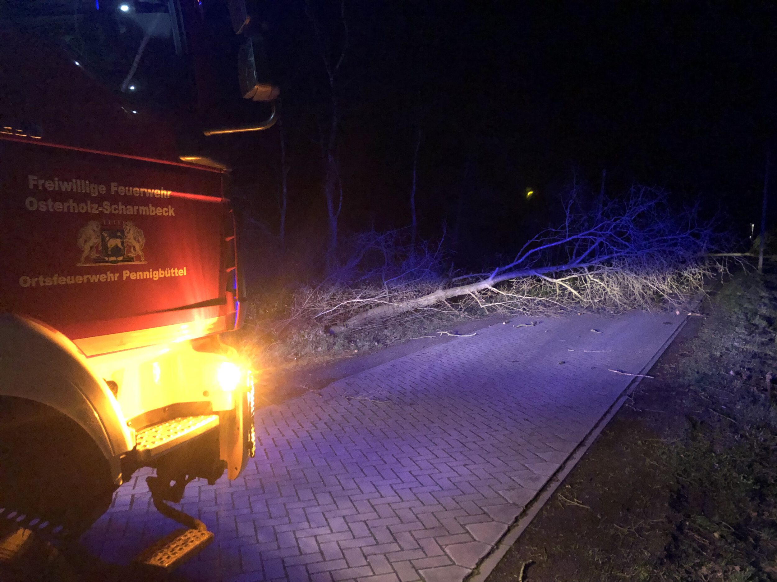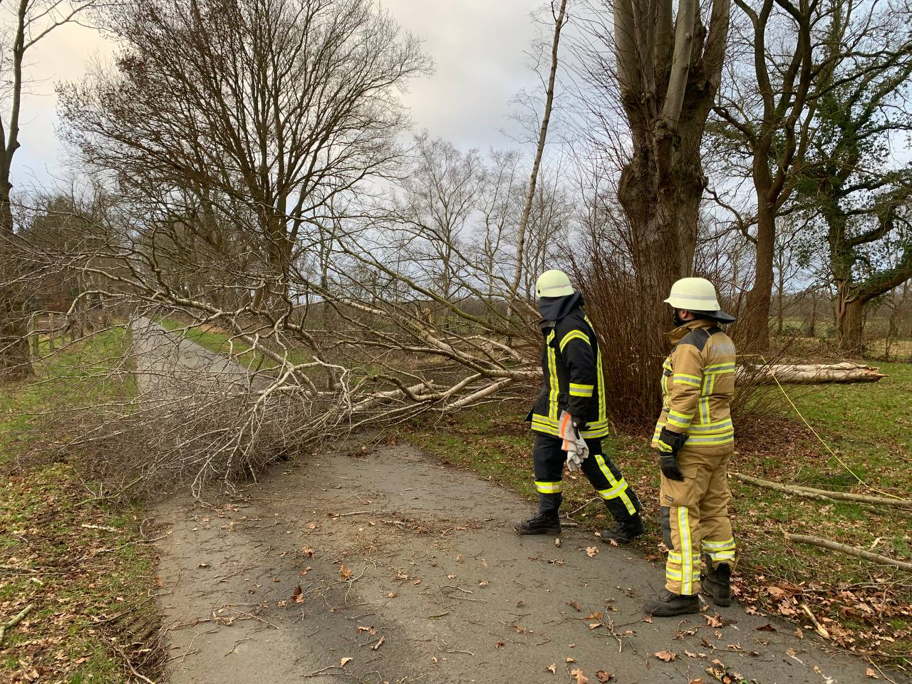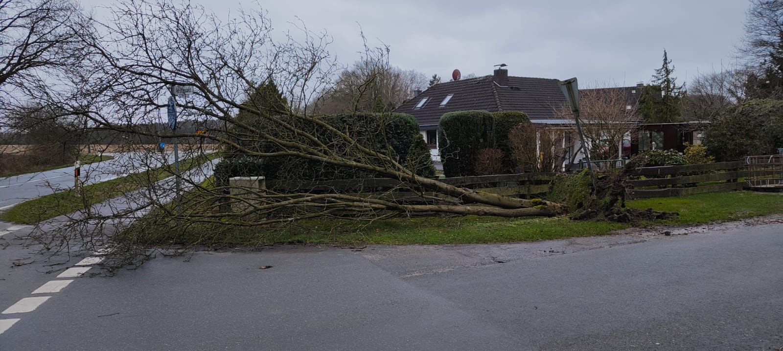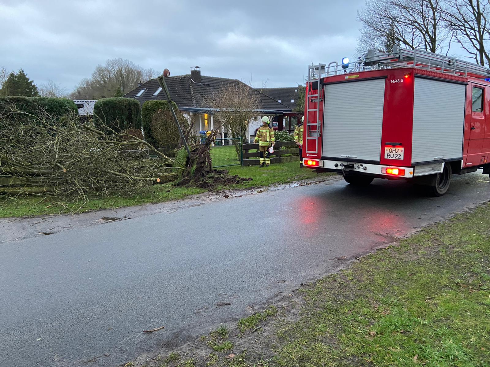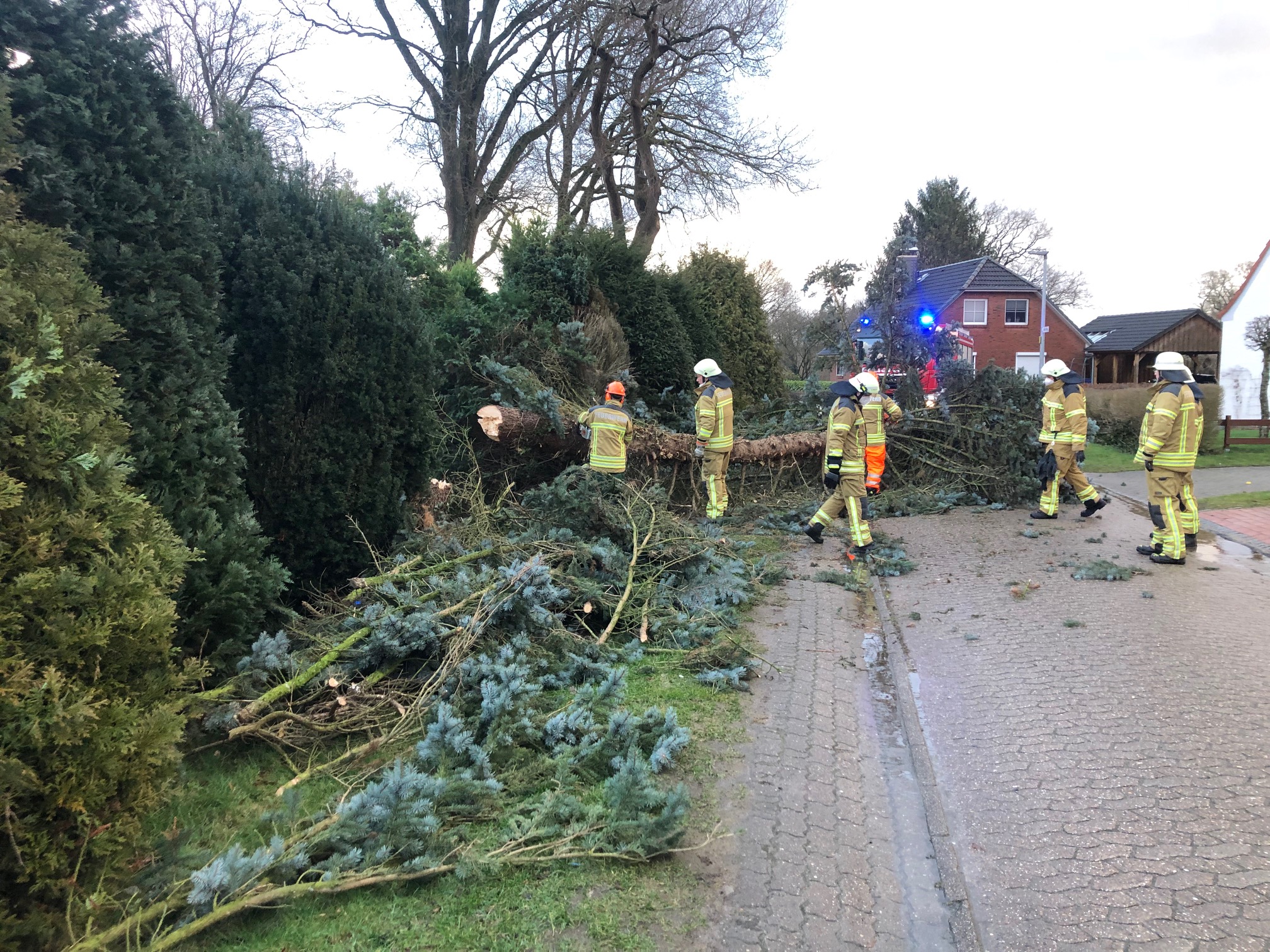 Allein 12 Bäume wurden durch die Ortsfeuerwehr Ohlenstedt beseitigt. Hier erfolgten fünf Alarmierungen in die Bereiche Biloher Straße, Demster, Elenbruch und Heerweg