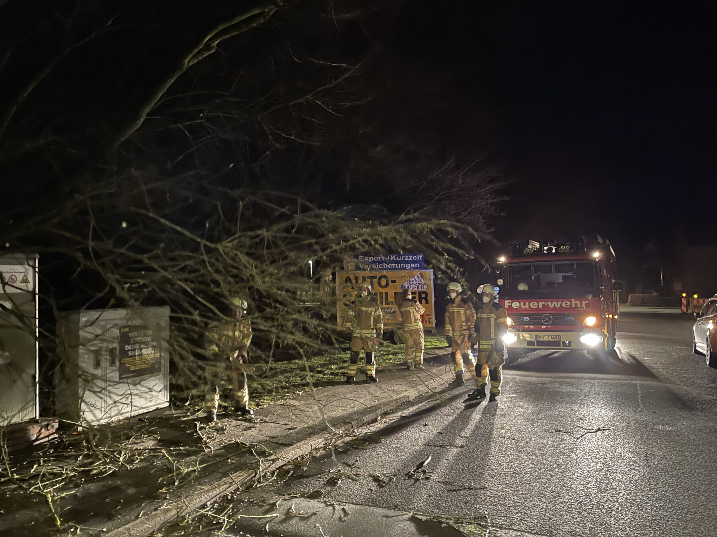 Zwei Alarmierungen erfolgten für Einsatzkräfte in Hülseberg (Bäume an der Bremer Heerstraße und Dorfstraße) sowie die Ortsfeuerwehr Scharmbeckstotel. Letztere hatten es neben Baumschäden an der Stoteler Waldstraße mit einem Bauzaun zu tun, der auf der Hauptstraße den Verkehr gefährdete.