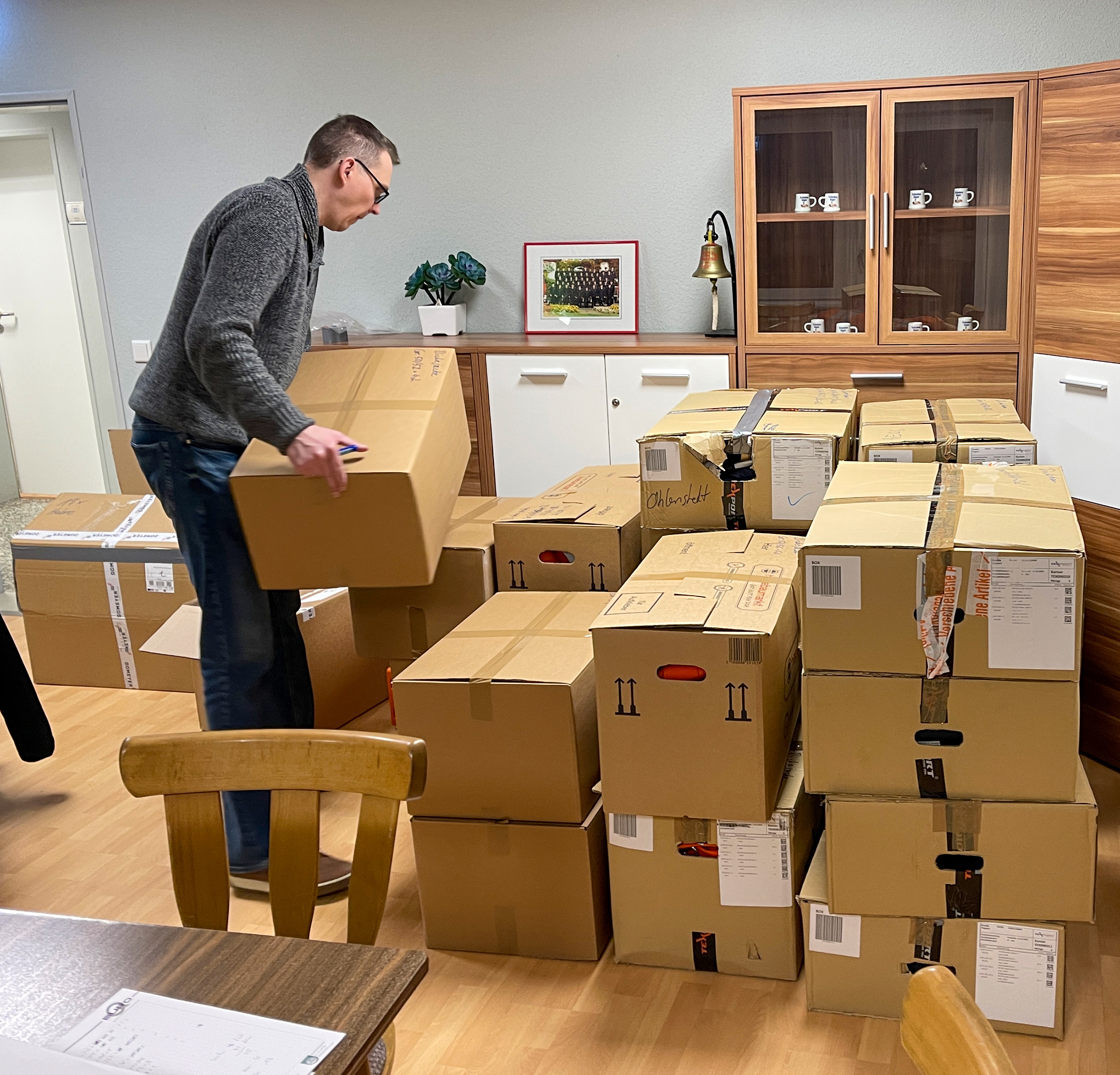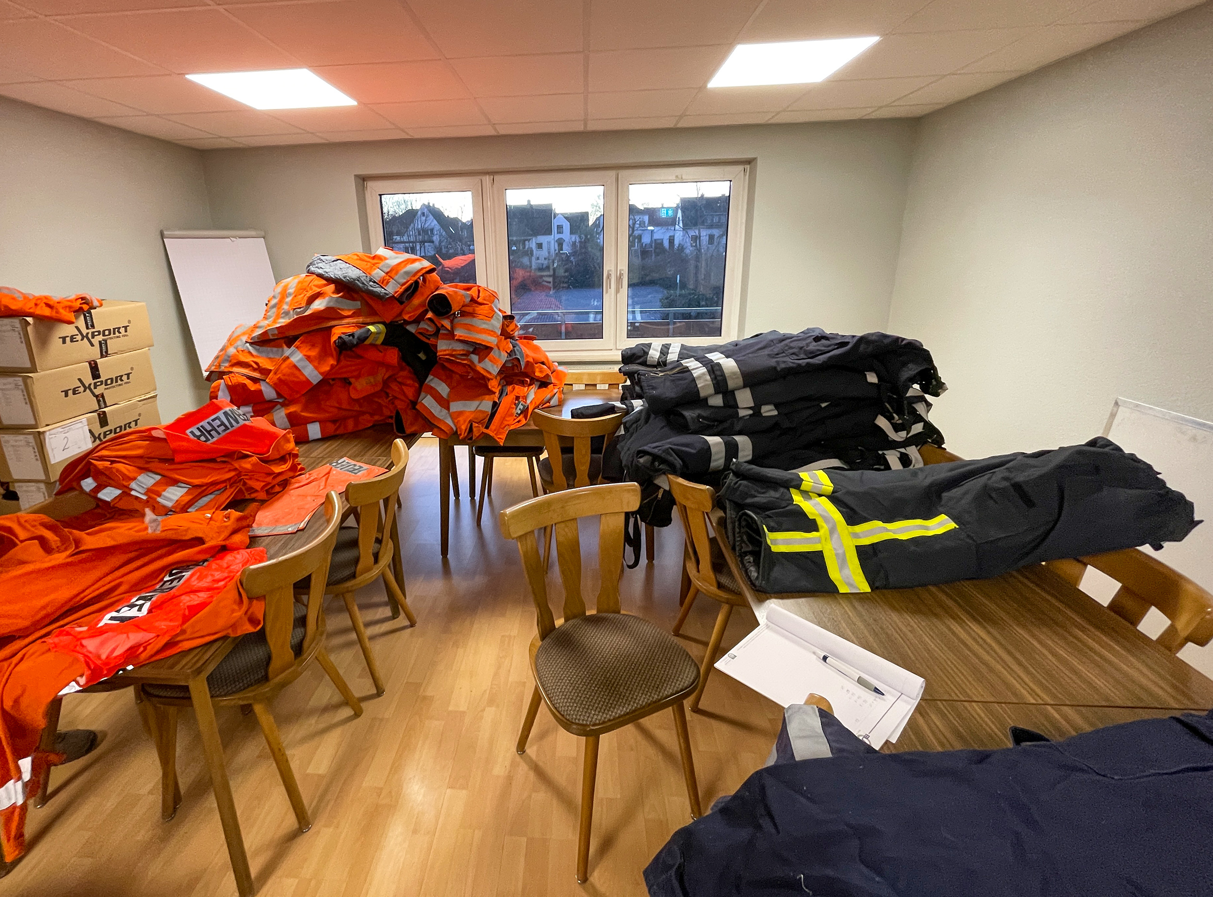 Auf Initiative des Ohlenstedter Ortsbrandmeister Thomas Kück wurden zur Ausmusterung anstehende Teile der persönlichen Schutzausrüstung als Sachspende für die Ukraine vorbereitet. Nachdem seitens der Stadt schnell Unterstützung für die Aktion signalisiert wurde, sammelten die Einsatzkräfte das Material über das Wochenende aus den verschiedenen Ortswehren zusammen. In der Kleiderkammer der Stadtfeuerwehr wurden Helme, Hosen und Jacken unter Leitung von Stadtkleiderwart Tim Sobottka gesichtet, nach Größen sortiert und entsprechend verpackt.