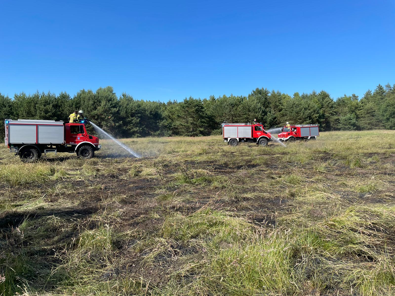 Die Ortsfeuerwehr Garlstedt wurde zusammen mit der Ortsfeuerwehr Meyenburg gegen 16:20 Uhr zu einem Flächenbrand auf dem Truppenübungsplatz alarmiert. Das Erst eintreffende Fahrzeug alarmierte nach der ersten Erkundung das Tanklöschfahrzeug der Ortsfeuerwehr Lehnstedt nach.