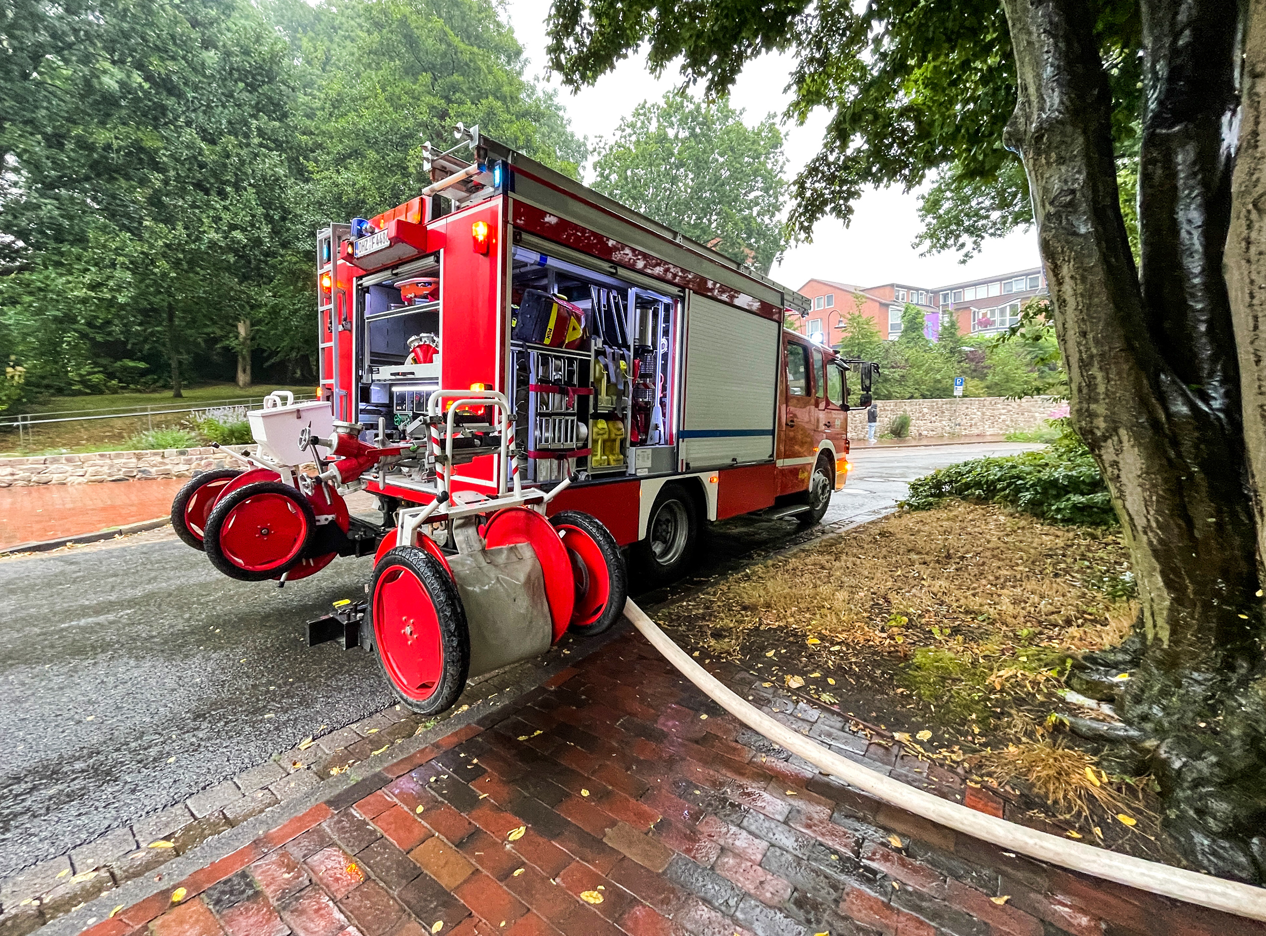 Das trotz gelegentlicher Regenfälle die Vegetation stark feuergefährdet ist, zeigte sich heute Abend in Osterholz-Scharmbeck. Bei strömenden Regen wurde die Ortsfeuerwehr mit dem Stichwort „Böschungsbrand“ in die Innenstadt alarmiert. Im Bereich „Hinter der Wurth“ war bei Eintreffen der Einsatzkräfte Brandgeruch und Rauch erkennbar. Nach kurzer Erkundung wurde ein Schwelbrand auf einer Fläche von mehreren Quadratmetern an der Böschung des Scharmbecker Baches als Ursache identifiziert. Um Wasser in den schwer zugänglichen Bereich zu befördern, mussten mehrere Schläuche eingesetzt werden. Die Einsatzkräfte legten die Glutnester frei und löschten den Bereich nachhaltig ab. Danach konnte die Feuerwehr wieder einrücken.