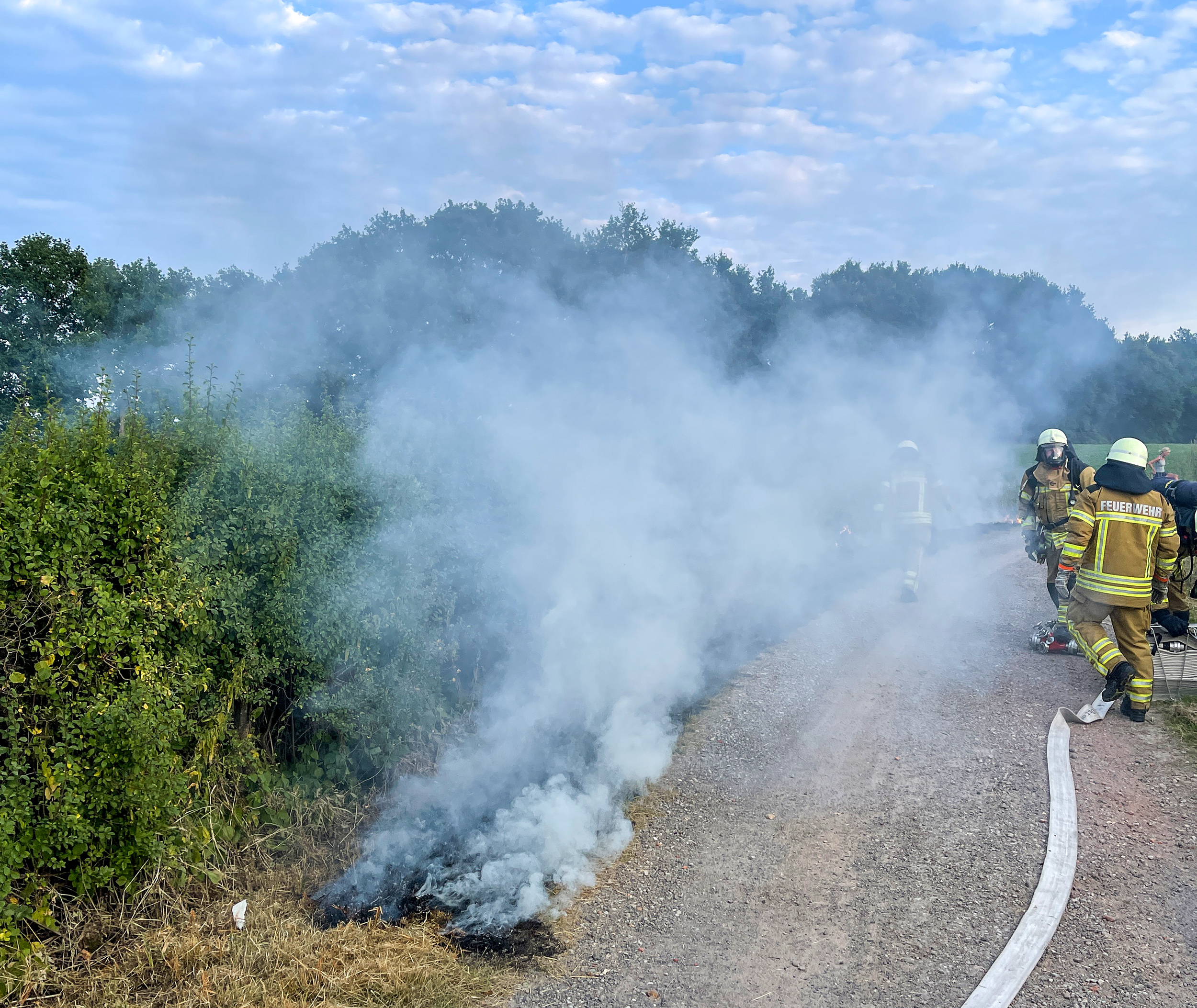 Am Sonntagabend wurde der Leitstelle Bremerhaven ein sich entwickelnder Vegetationsbrand am Tinzenberg gemeldet. Bei Eintreffen der Ortsfeuerwehr Osterholz-Scharmbeck brannte eine Fläche von ca. 20qm. Mit zwei C-Rohren wurde der Bereich zügig abgelöscht und ein weiteres Ausbreiten verhindert. Eine Meldung über eine zweite Brandstelle in unmittelbarer Nähe bestätigte sich nicht. Nach Abschluss der Löscharbeiten rückten die Einsatzkräfte wieder ein.