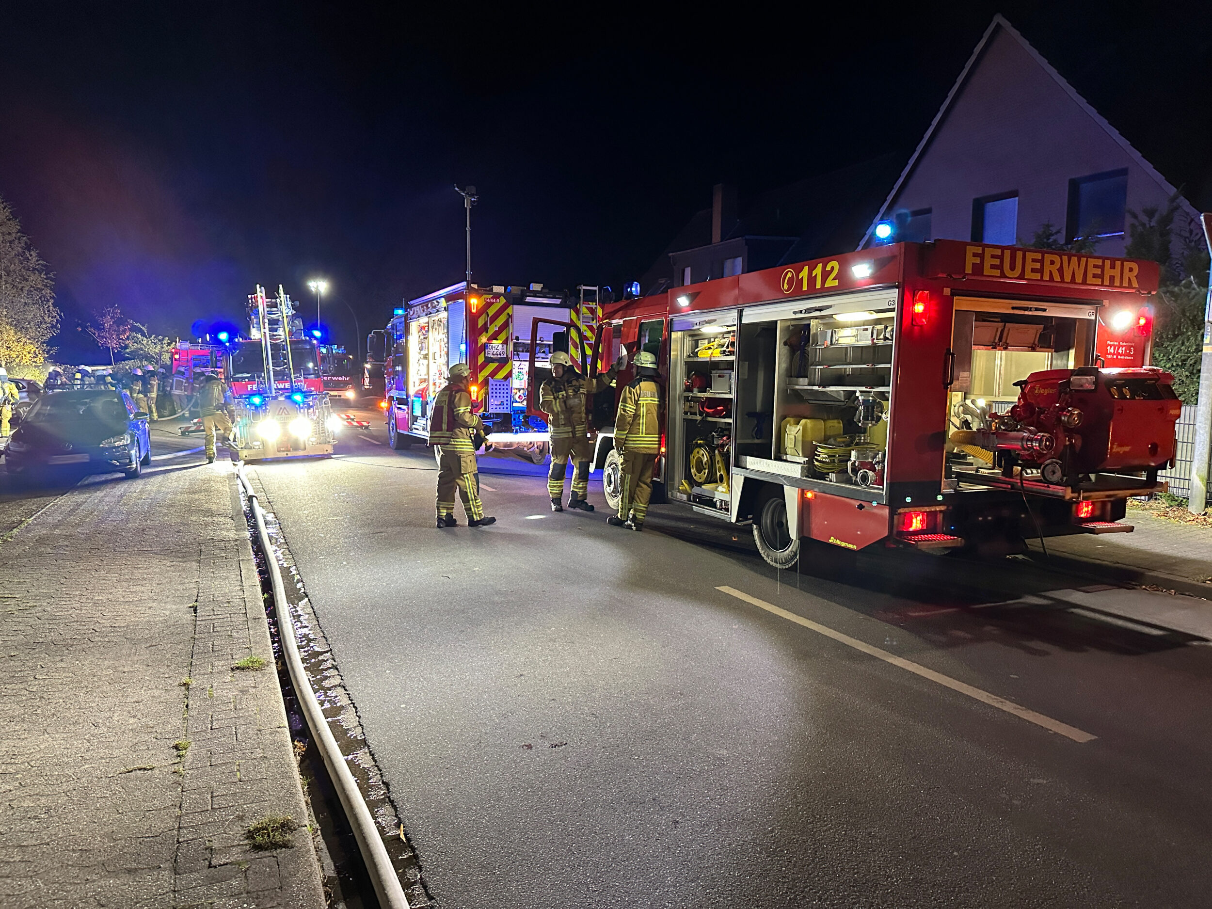 Bei Eintreffen der ersten Kräfte der Ortsfeuerwehr Scharmbeckstotel schlugen bereits Flammen aus dem Fenster einer Wohnung im Untergeschoss. Während des Aufbaus des ersten Angriffsrohrs kam es zu einer Rauchgasdurchzündung, auch „Flashover“ genannt. In diesem Zuge wurde dann auch die Ortsfeuerwehr Osterholz-Scharmbeck nachalarmiert, da zu diesem Zeitpunkt die Wohnung bereits in Vollbrand stand.