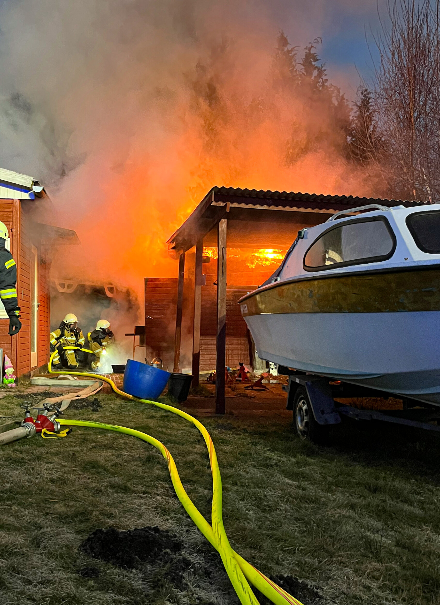 Ein Ausbreiten der Flammen auf ein in unmittelbarer Nähe abgestelltes Sportboot sowie  auf die angrenzenden Campinghäuser konnte die Feuerwehr verhindern. Rund eine halbe Stunde nach der Alarmierung wurde „Feuer aus“ gemeldet. Die Einsatzstelle wurde der Polizei übergeben und die beiden Ortsfeuerwehren konnten wieder einrücken.