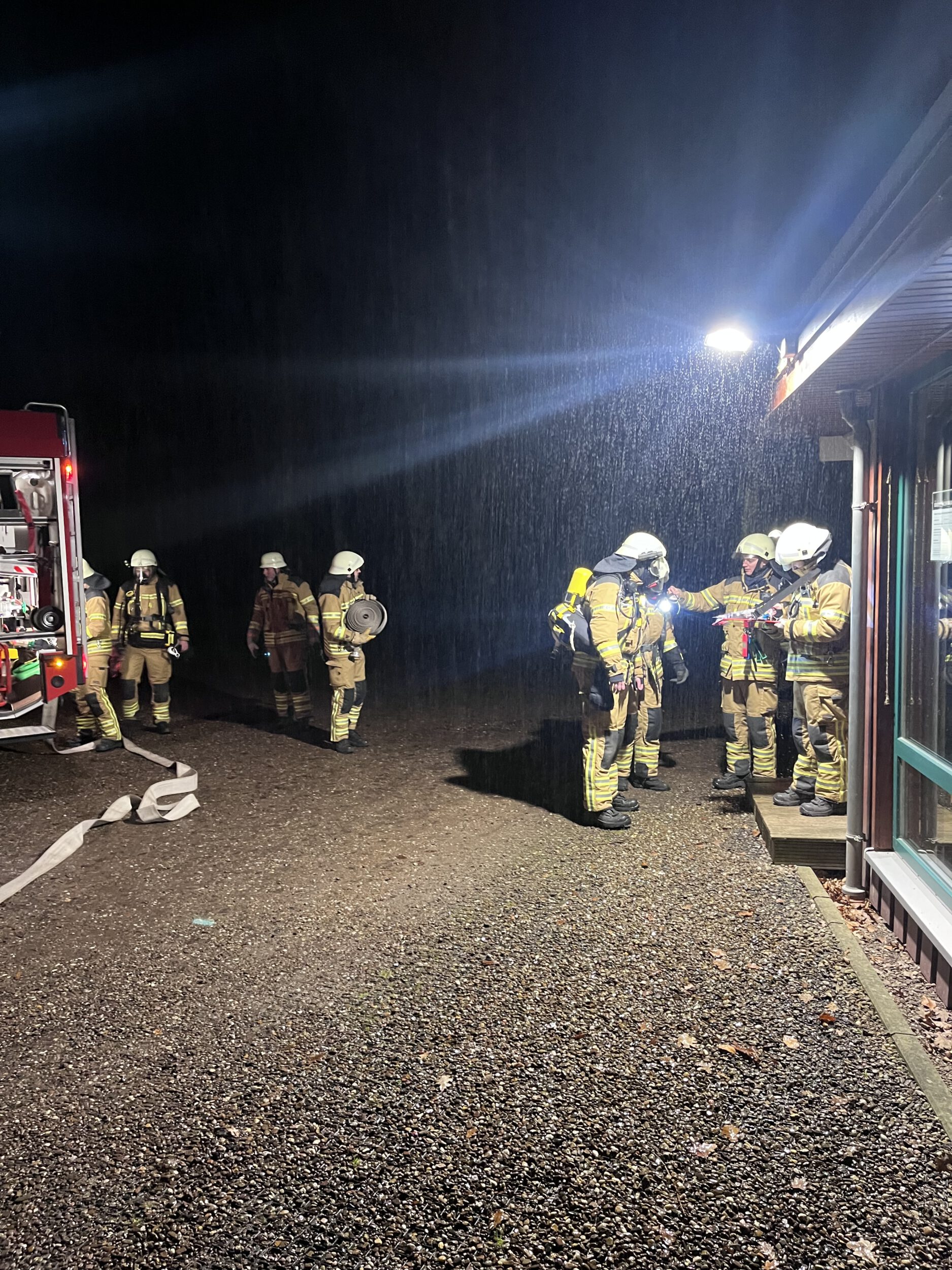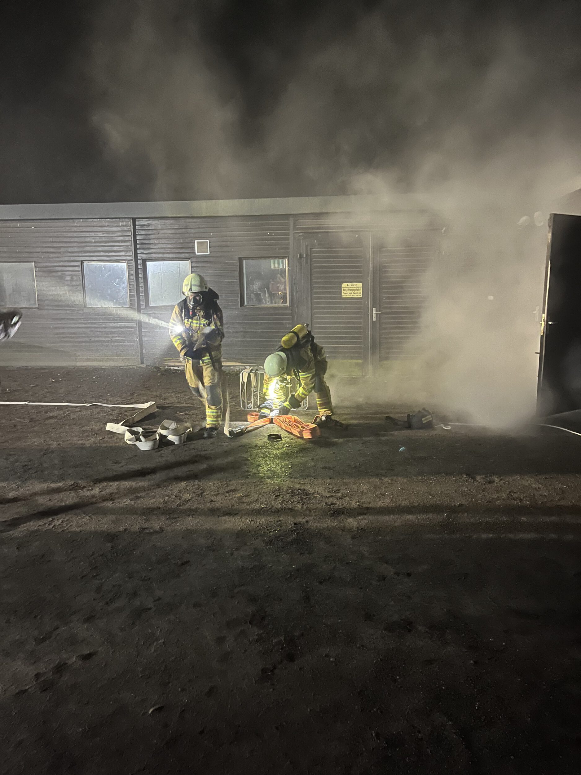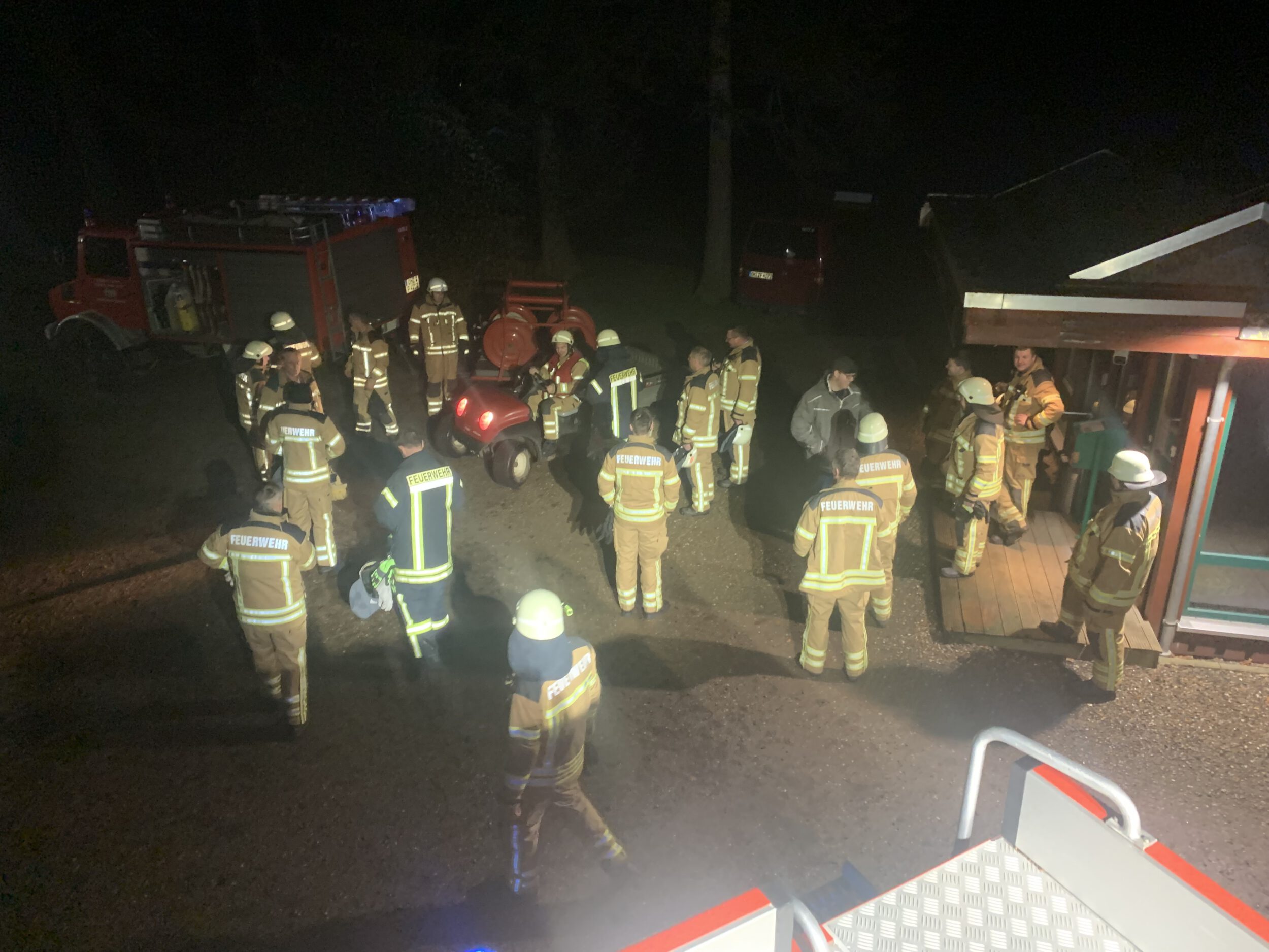 Nach einiger Suche konnte das Objekt ausgemacht werden. Erst nach Erkundung der Einsatzstelle stellte sich heraus, dass es sich um eine Übung handelte. Als Lage war ein Brand in einem Schuppen mit Werkstatt gemeldet, in der sich, nach Angaben des Anrufers, womöglich noch eine Person befinden könnte. Die erst eintreffende Ortsfeuerwehr Garlstedt, ging direkt mit einem Trupp unter Atemschutz in den Schuppen vor und begann mit der Personensuche. Parallel bauten die Ortsfeuerwehren Heilshorn und Hülseberg zwei Wasserversorgungen auf. Dies gestaltete sich schwierig, da das Objekt im Außenbereich liegt und die nächstgelegenen Wasserentnahmestelen ein ganzen Stück entfernt liegen.