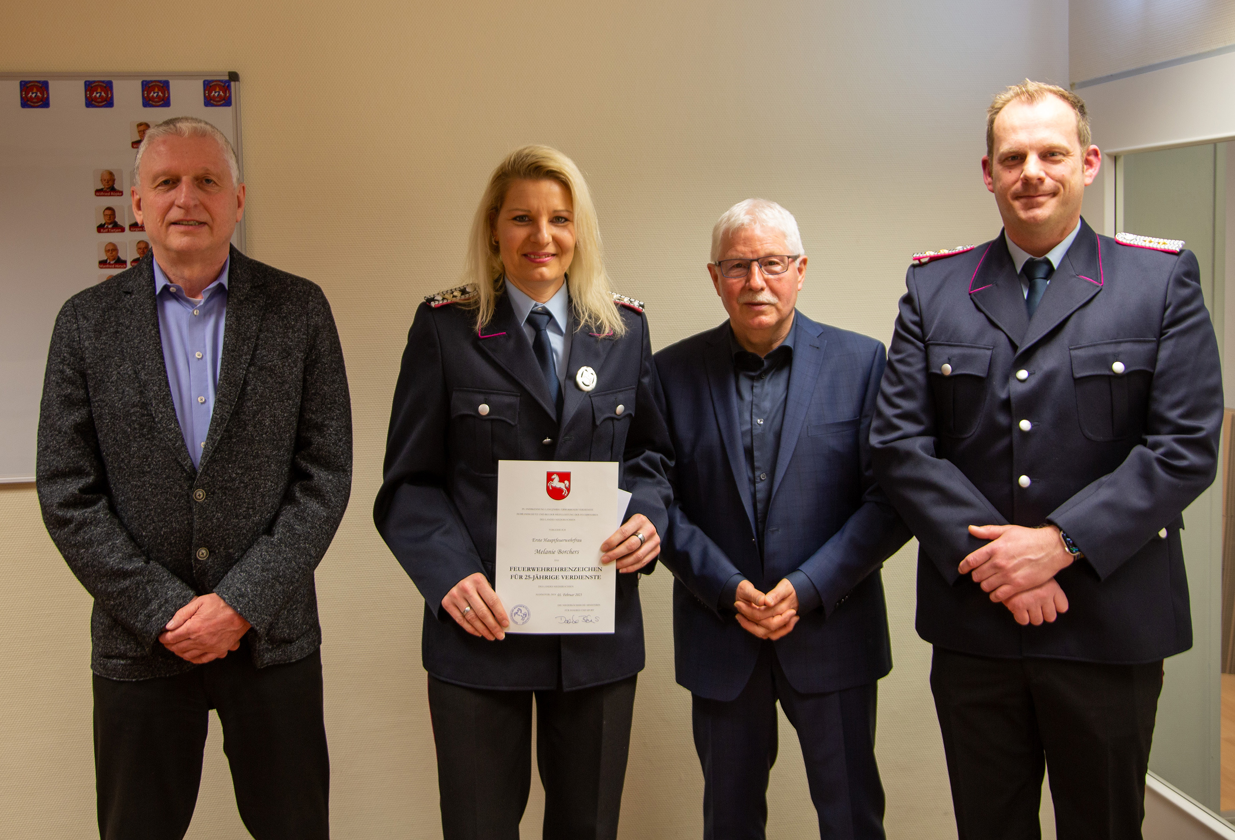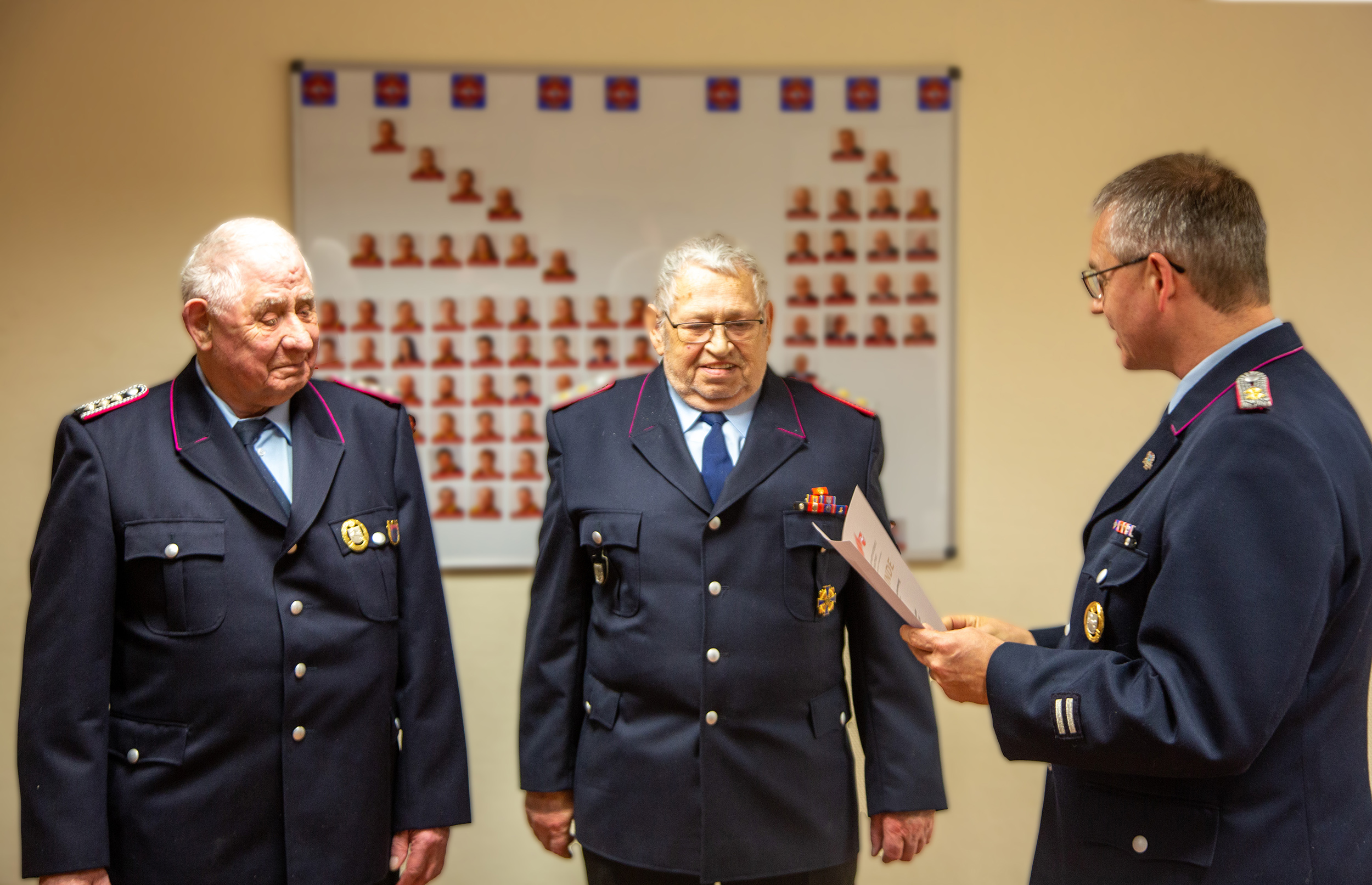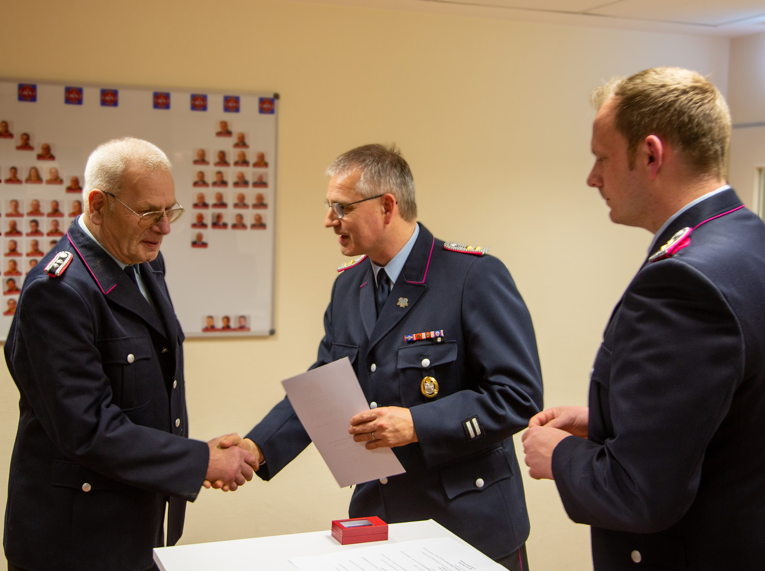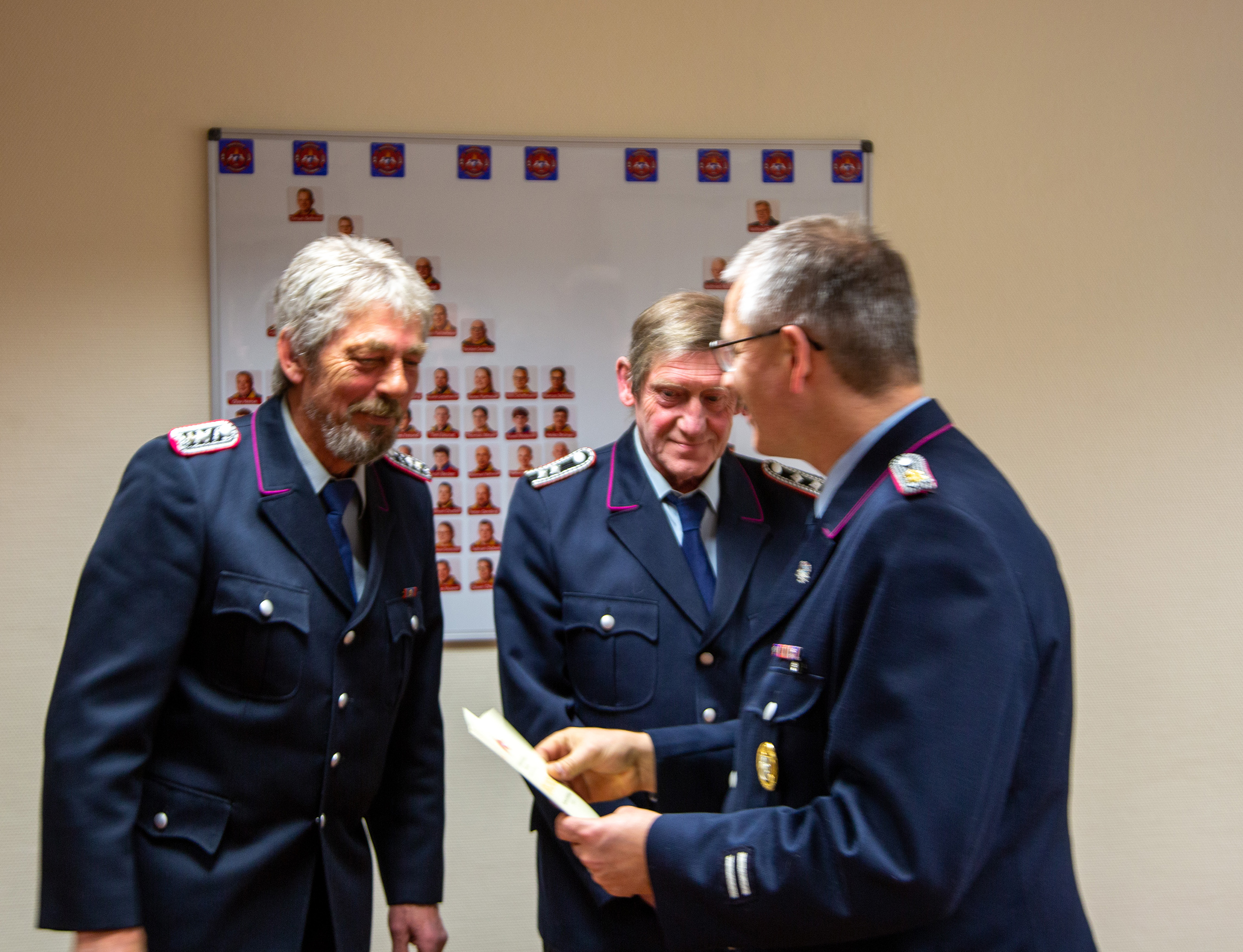 Ortsbrandmeister Tilman Behrens bedankte sich darüber hinaus besonders bei Heinrich Heese, Hein-Dieter Meyerdierk und Johann Segelken für 65 Jahre Zugehörigkeit.