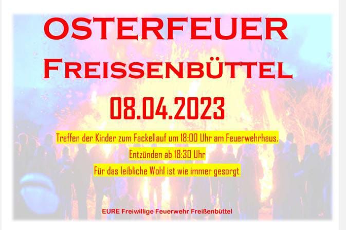 Freißenbüttel – Hinterm Neuenkamp – 08.04.2023 – 18:00 Uhr (Fackellauf) – 18:30 Uhr (Osterfeuer)