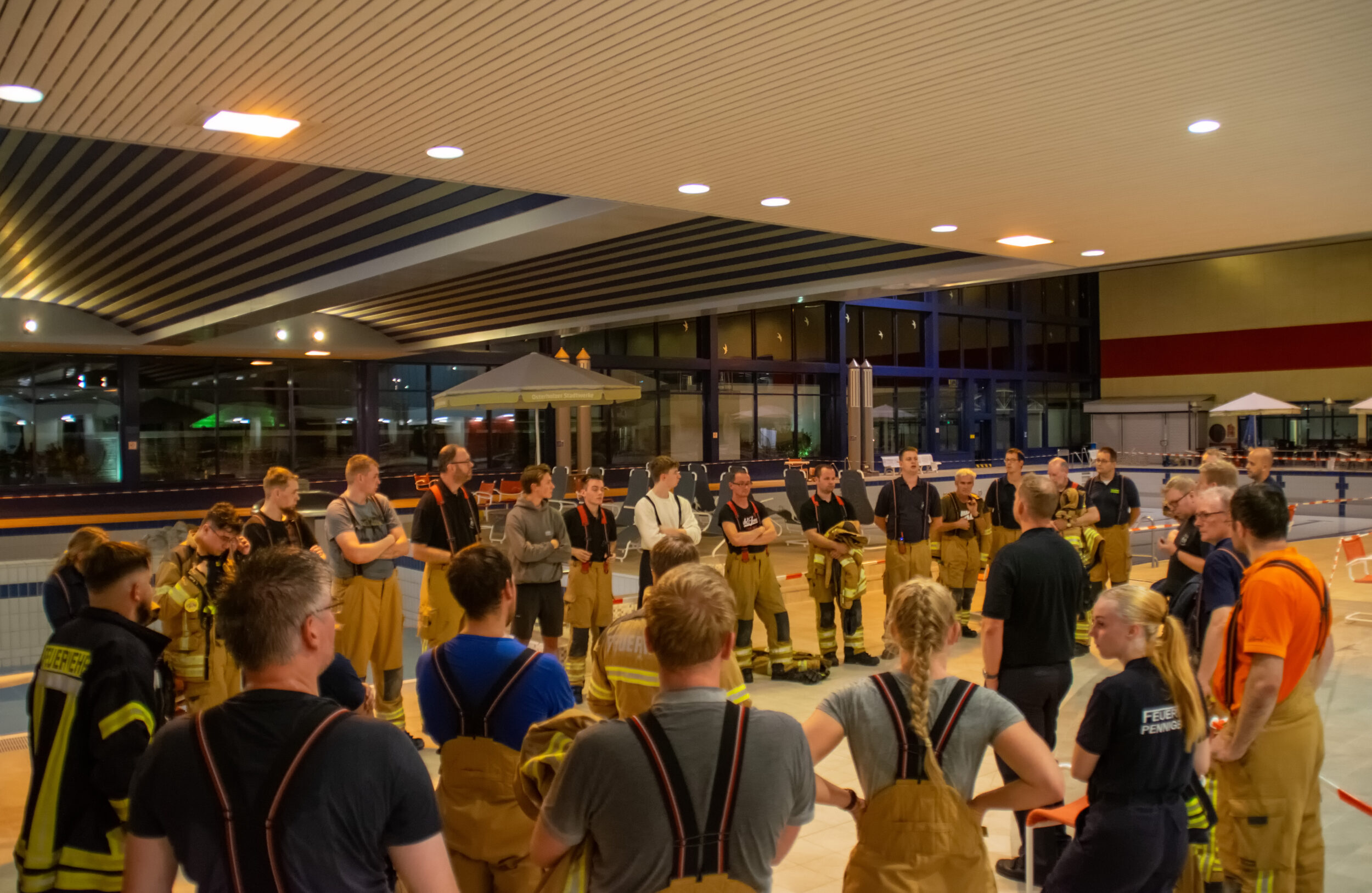 Die Ortsfeuerwehren Osterholz-Scharmbeck, Pennigbüttel und Scharmbeckstotel hatten Ende September Gelegenheit, eine Einsatzübung in einem ungewöhnlichen Objekt durchzuführen. Da das Allwetterbad bedingt durch anstehende Wartungsarbeiten geschlossen und das Wasser abgelassen war, nutzen die Einsatzkräfte dies für Ihre Ausbildungszwecke.