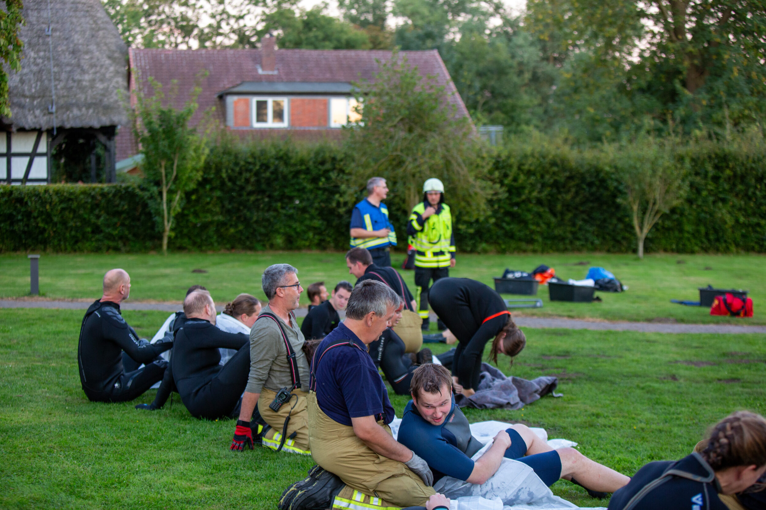 Nach einer guten Nachbesprechung mit allen rund 70 Einsatzkräften ging diese Einsatzübung zu Ende. Ein besonderer Dank an die DLRG und die Taucher des VSK für das Stellen der Verletztendarsteller sowie den Ruderverein Osterholz-Scharmbeck und das Restaurant Tiejtens Hütte für die Nutzung ihrer Grundstücke beziehungsweise Infrastruktur.