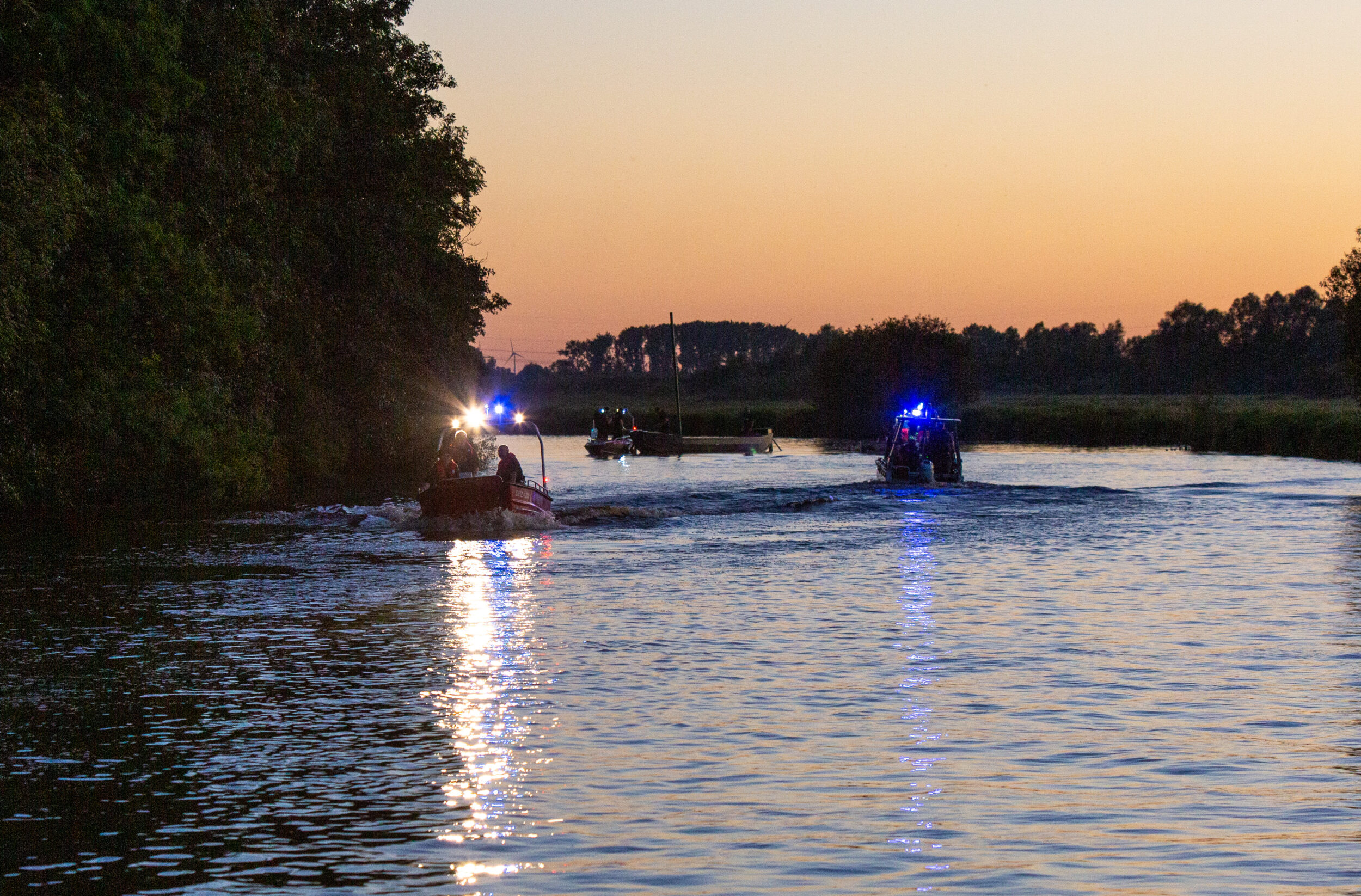 „Bootsunfall“ ist ein Einsatzstichwort, das glücklicherweise selten auf den digitalen Meldeempfängern der Feuerwehr Osterholz-Scharmbeck zu lesen ist. Da die Hamme, die regelmäßig von Wassersportfahrzeugen, Torfkähnen, Schwimmern und Anglern frequentiert wird, auch zum Einsatzgebiet der Feuerwehr gehört, besteht ein kontinuierlicher Übungsbedarf der Einsatzkräfte. Erstmalig trainierten wasserseitig alle fünf in unmittelbarer Nähe stationierten Rettungsboote gemeinsam in einem Szenario. So waren neben der DLRG auch Boote der Freiwilligen Feuerwehren aus St. Jürgen, Scharmbeckstotel, Ritterhude und Osterholz-Scharmbeck alarmiert. Ausgangslage war die Kenterung eines Torfkahns infolge einer Kollision mit einem Motorboot. Die eintreffenden Einsatzkräfte sahen sich mit verschiedenen Herausforderungen gleichzeitig konfrontiert: rund 20 Personen waren in der Hamme schwimmend vertrieben und riefen um Hilfe. Der Torfkahn trieb manövrierunfähig mit leichtem Wassereinbruch in Richtung Scharmbeckstotel.
