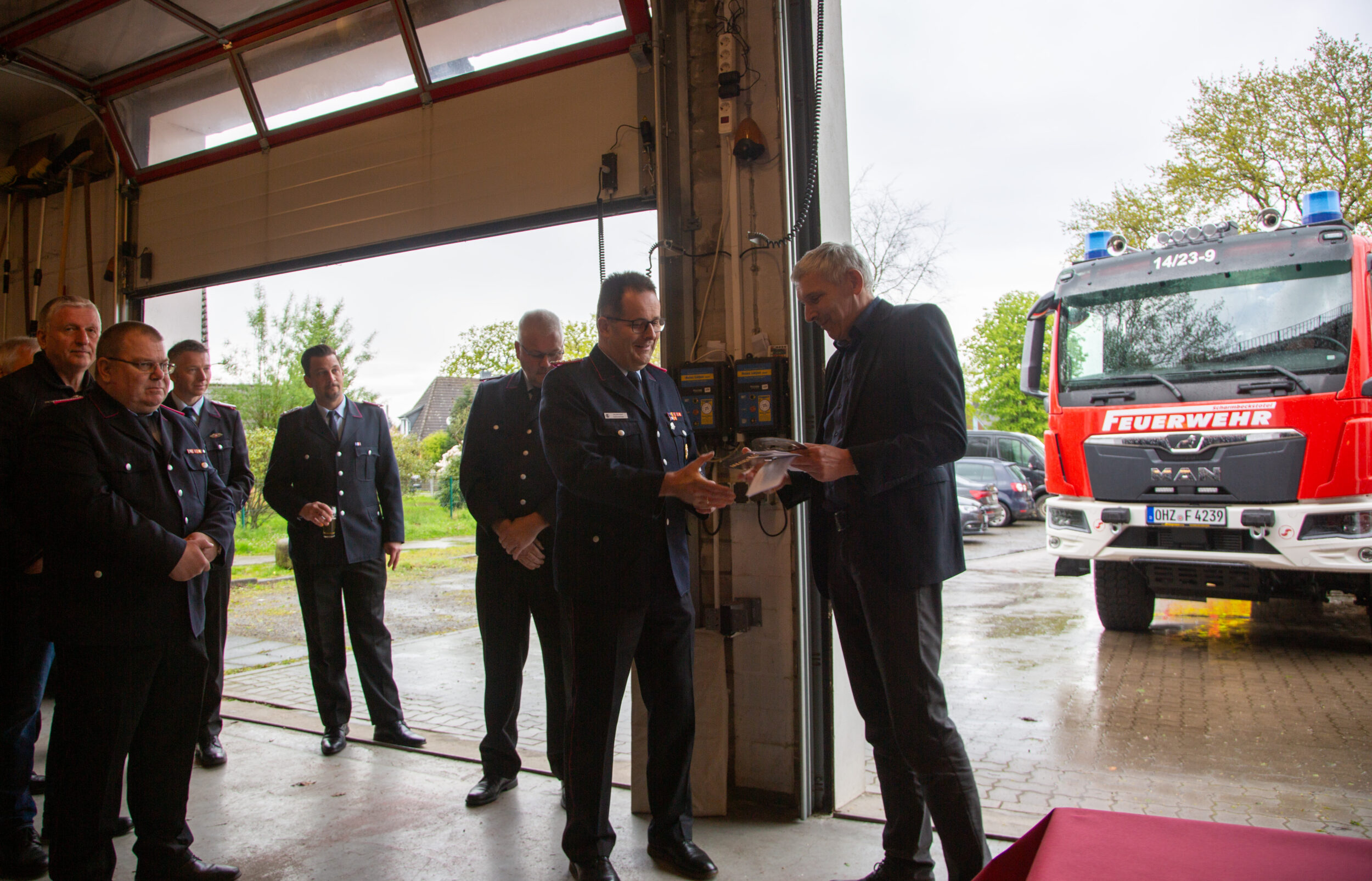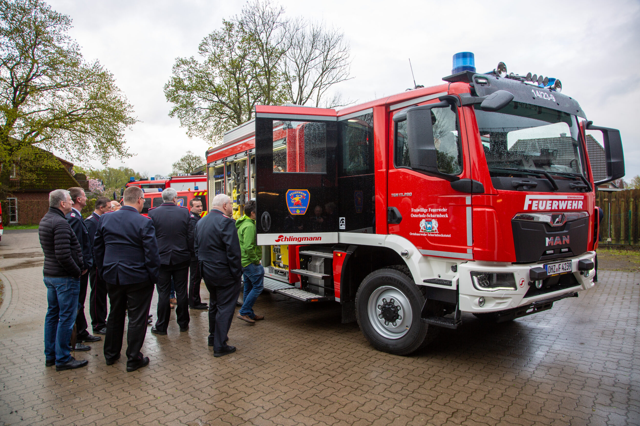 Das neue Tanklöschfahrzeug der Ortsfeuerwehr Scharmbeckstotel wurde am Freitagabend in einer kleinen Feierstunde offiziell durch Bürgermeister Torsten Rohde an die Feuerwehr übergeben.
