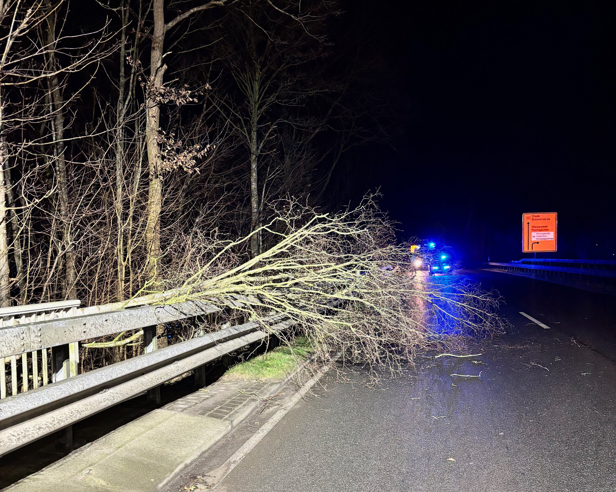 • Die restliche Nacht blieb ruhig. Lediglich die Ortsfeuerwehr Pennigbüttel musste am Neujahrsmorgen um 07:04 Uhr einen Baum von der B74 zwischen Westerbeck und Pennigbüttel beseitigen