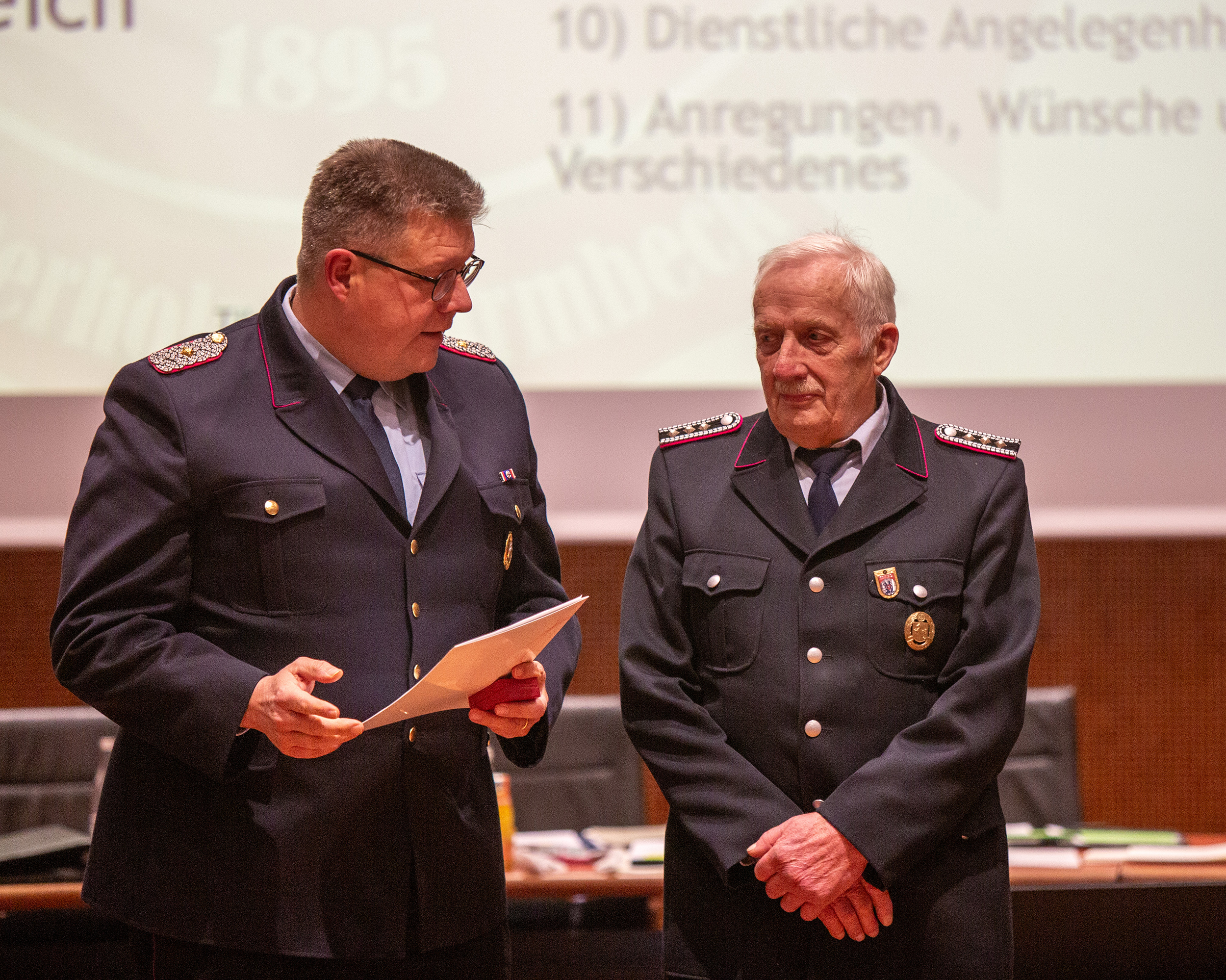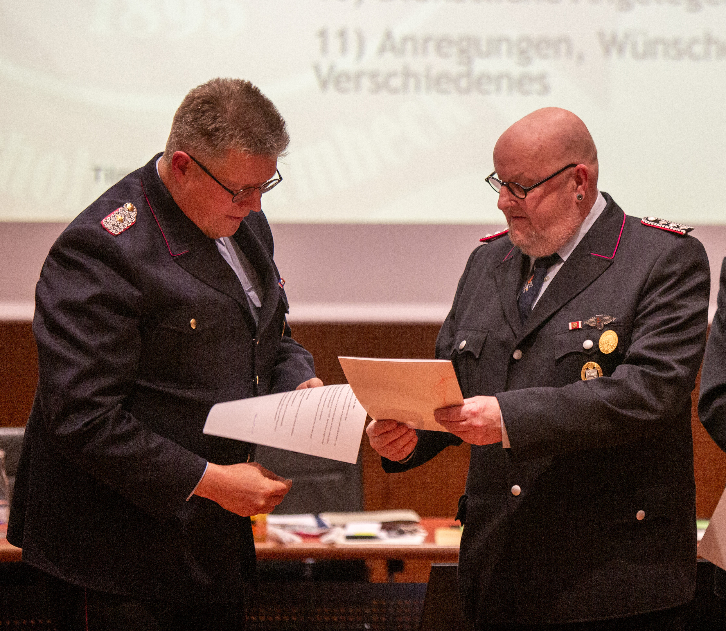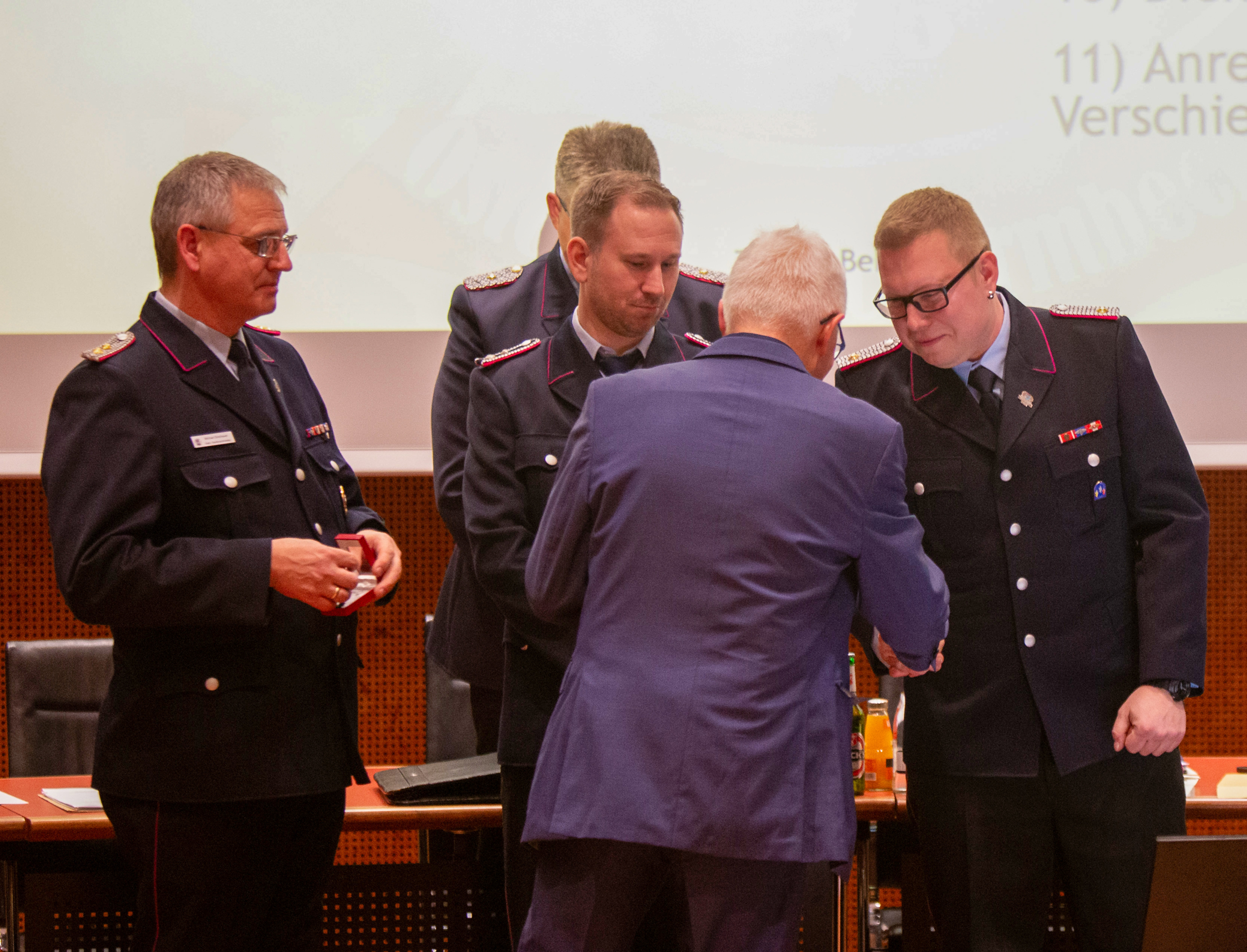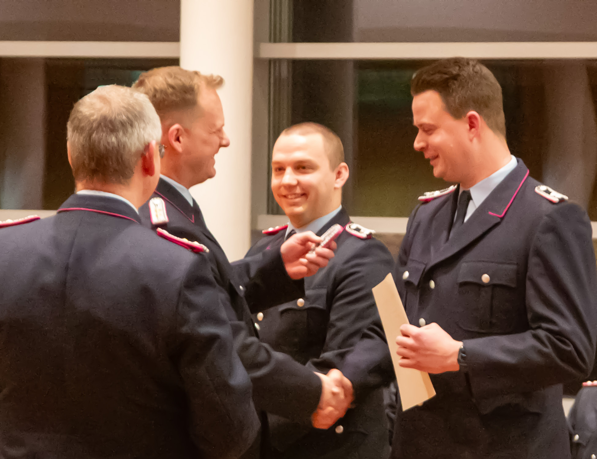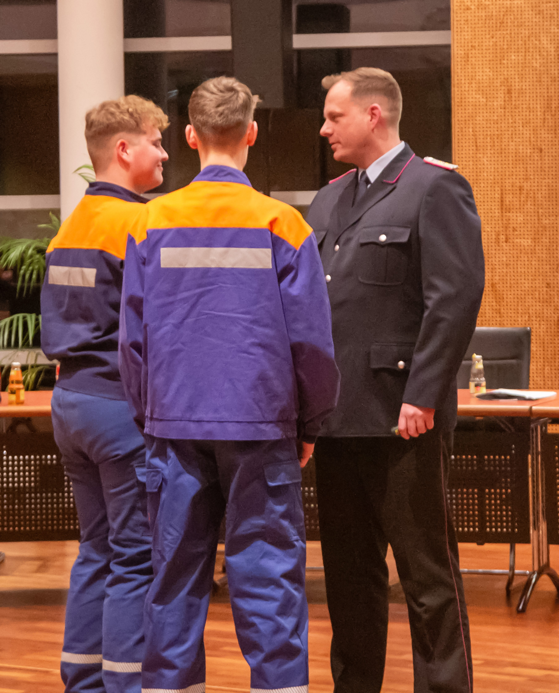 Befördert wurden: Daniel Hartmann, Jason Raschke, Arved Walpuski und Josephine Wulf (Feuerwehrmann/Feuerwehrfrau), Timm Freund, Kay Katenkamp, Majanka Recht, Jannik Soltner und Erich Steer (Oberfeuerwehrmann/Oberfeuerwehrfrau), Thimon Chuttek, Mailo Gruner und Hendrik Schumacher (Hauptfeuerwehrmann), Sascha Gerkens und Niklas Schilling (Löschmeister), Carsten Bredemeier (Oberlöschmeister), Cüneyt Yumusak (Brandmeister).