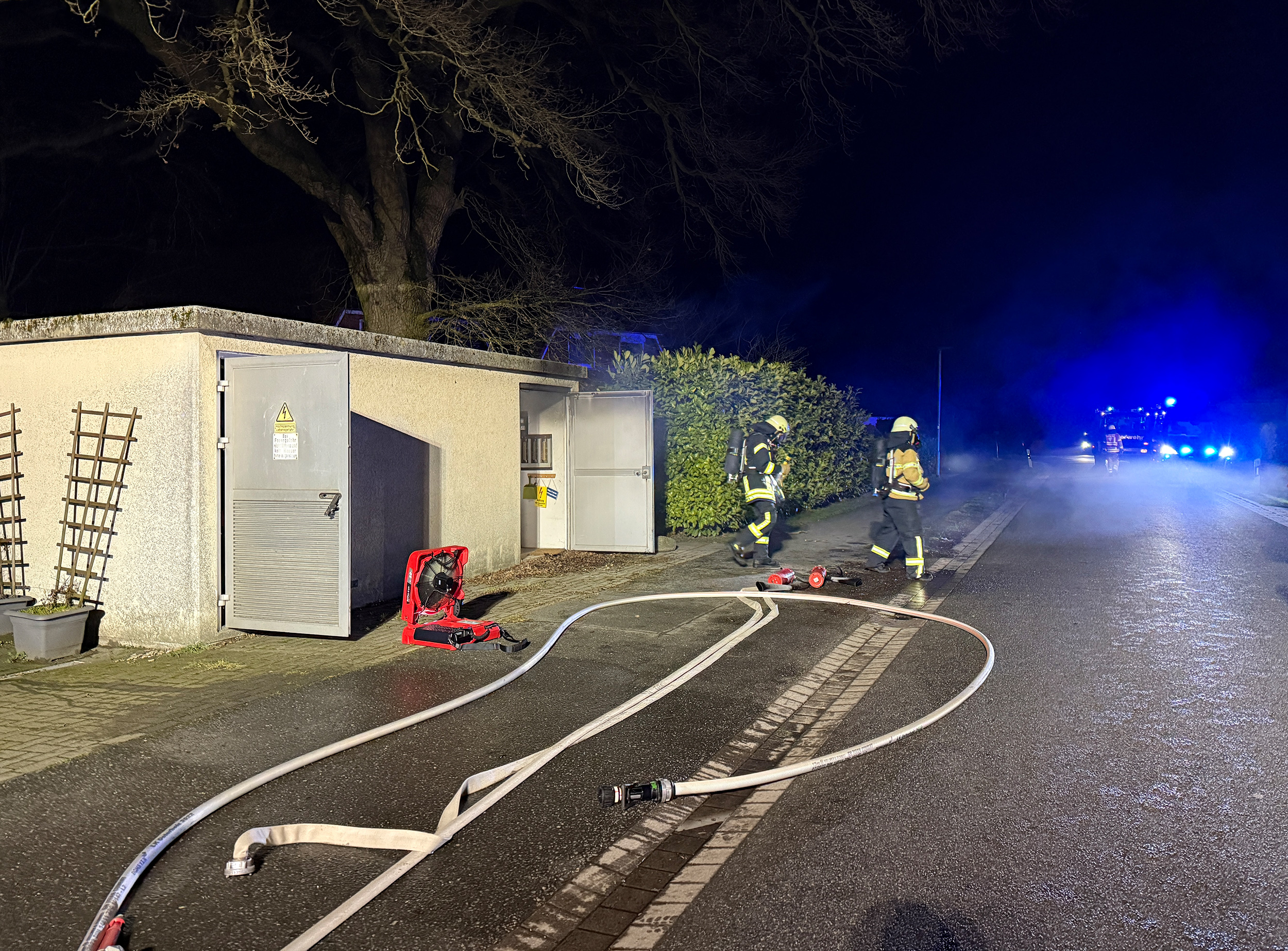 Nur wenige Stunden nach dem letzten Einsatz wurde die Ortsfeuerwehr Osterholz-Scharmbeck zu einer brennenden Trafostation alarmiert. Beim Eintreffen der Feuerwehr war der Trafo bereits abgeschaltet und ein Servicetechniker hatte die Station geöffnet.