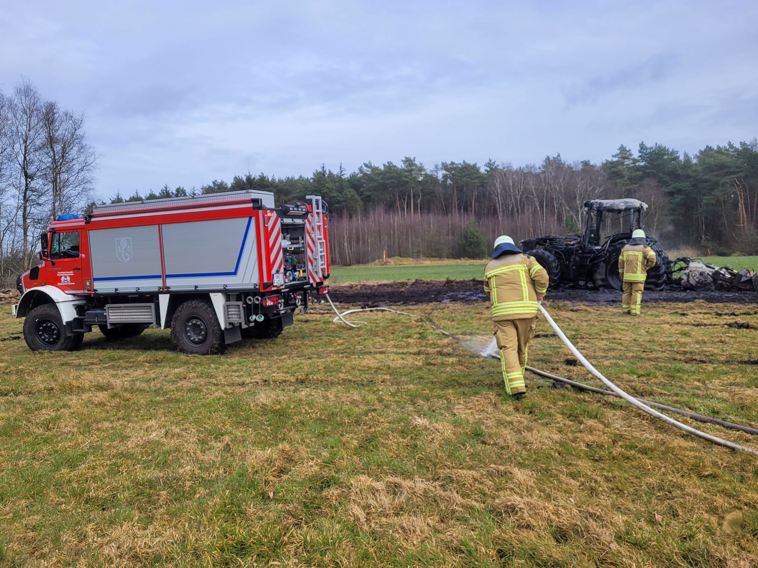 Da die Weide nur mit geländegängigen Fahrzeugen zu befahren war, wurde zur Unterstützung das Tanklöschfahrzeug der benachbarten Feuerwehr Lehnstedt (Landkreis Cuxhaven) hinzu alarmiert. Gemeinsam mit dem Garlstedter Unimog konnten die Einsatzkräfte den Brand schnell Eindämmen und eine Ausbreitung verhindern.