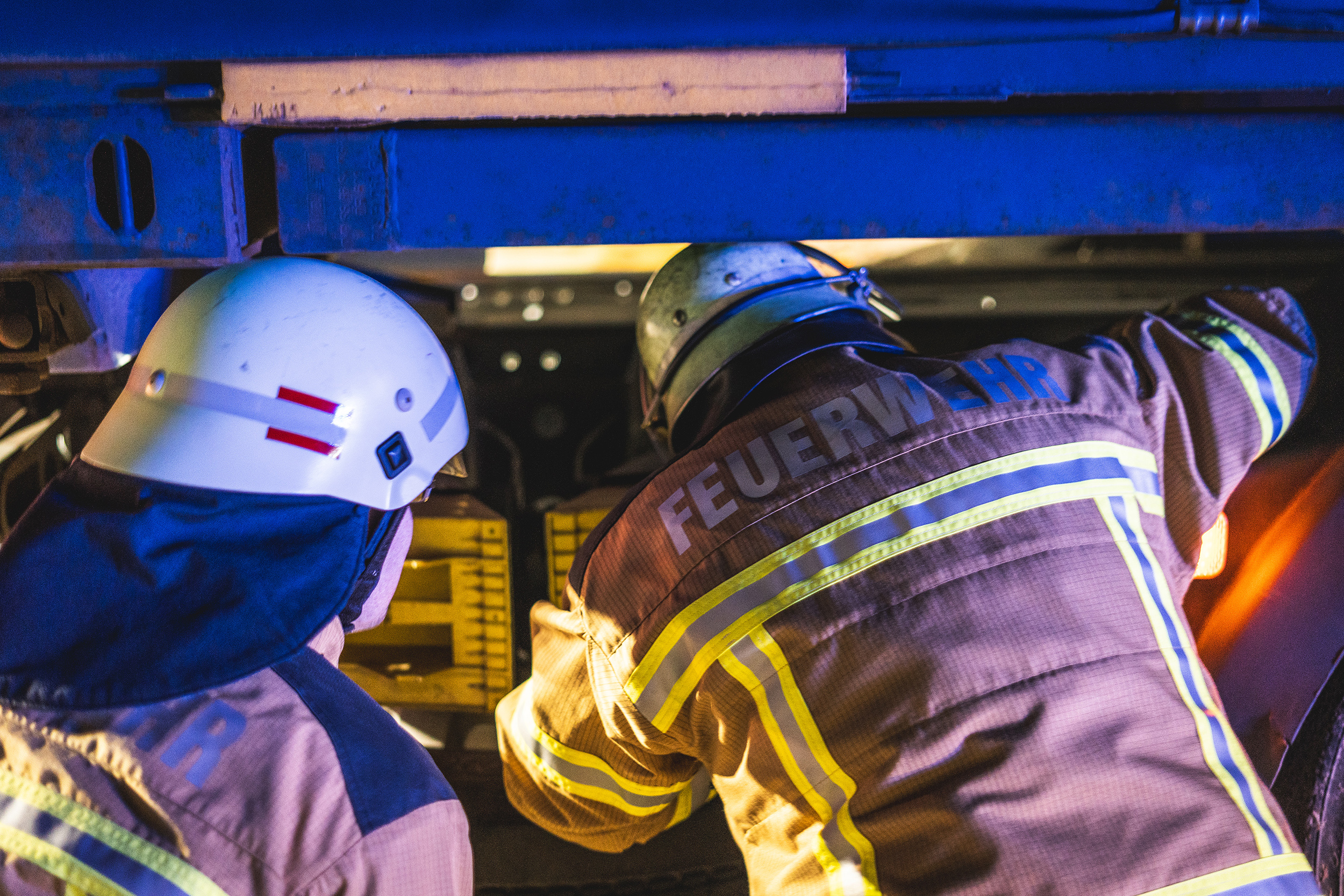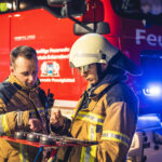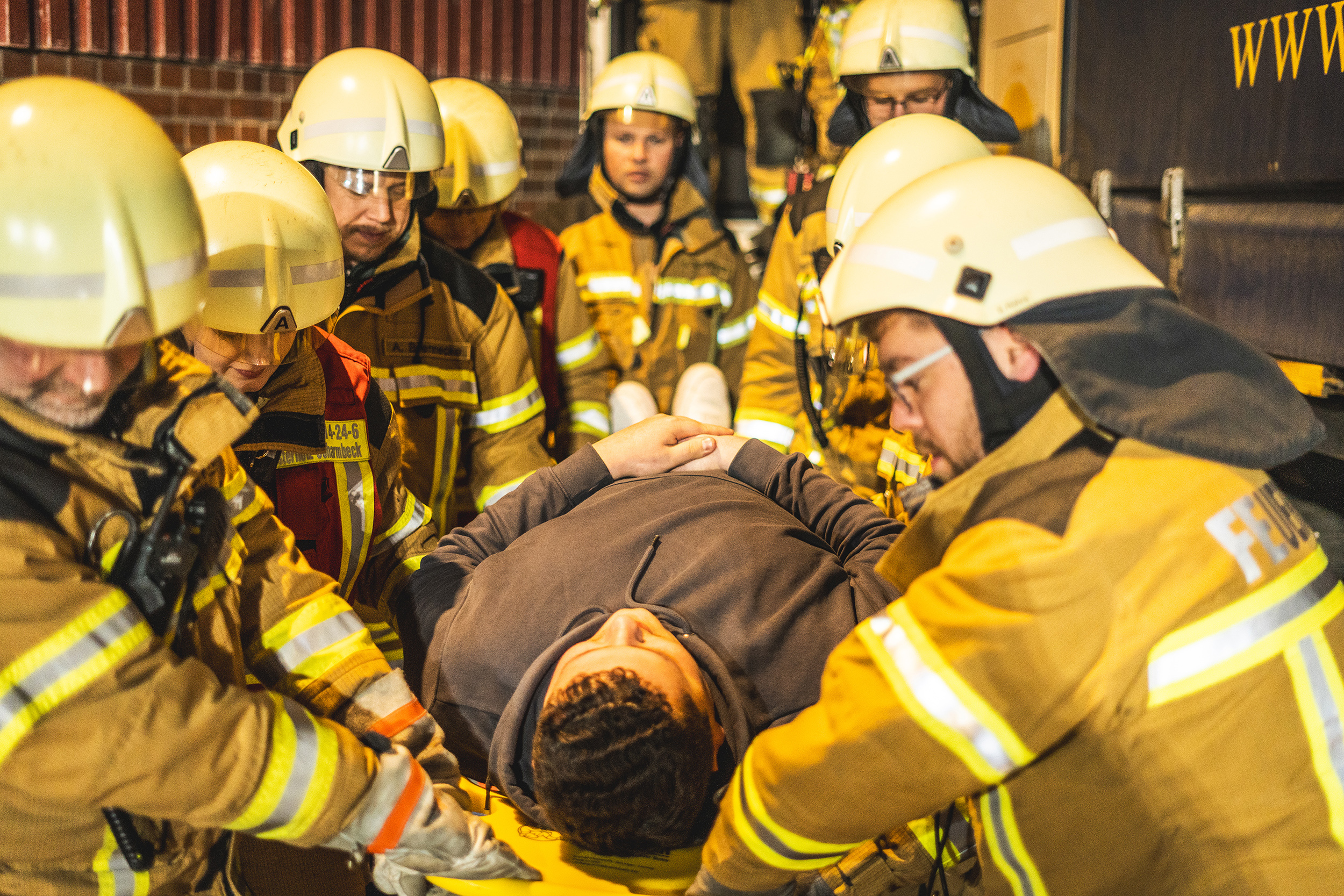 Letztendlich gelang es, den Lkw-Fahrer mittels Schleifkorbtrage zu retten. Auch der Fahrradfahrer konnte unter dem Lkw gerettet werden, nachdem die Achse mit Hydraulikstempel angehoben worden war. Nach Abschluss der fiktiven Löscharbeiten trafen sich alle Einsatzkräfte zu einer ausführlichen Nachbesprechung, bevor die Rückfahrt an die Standorte angetreten werden konnte.