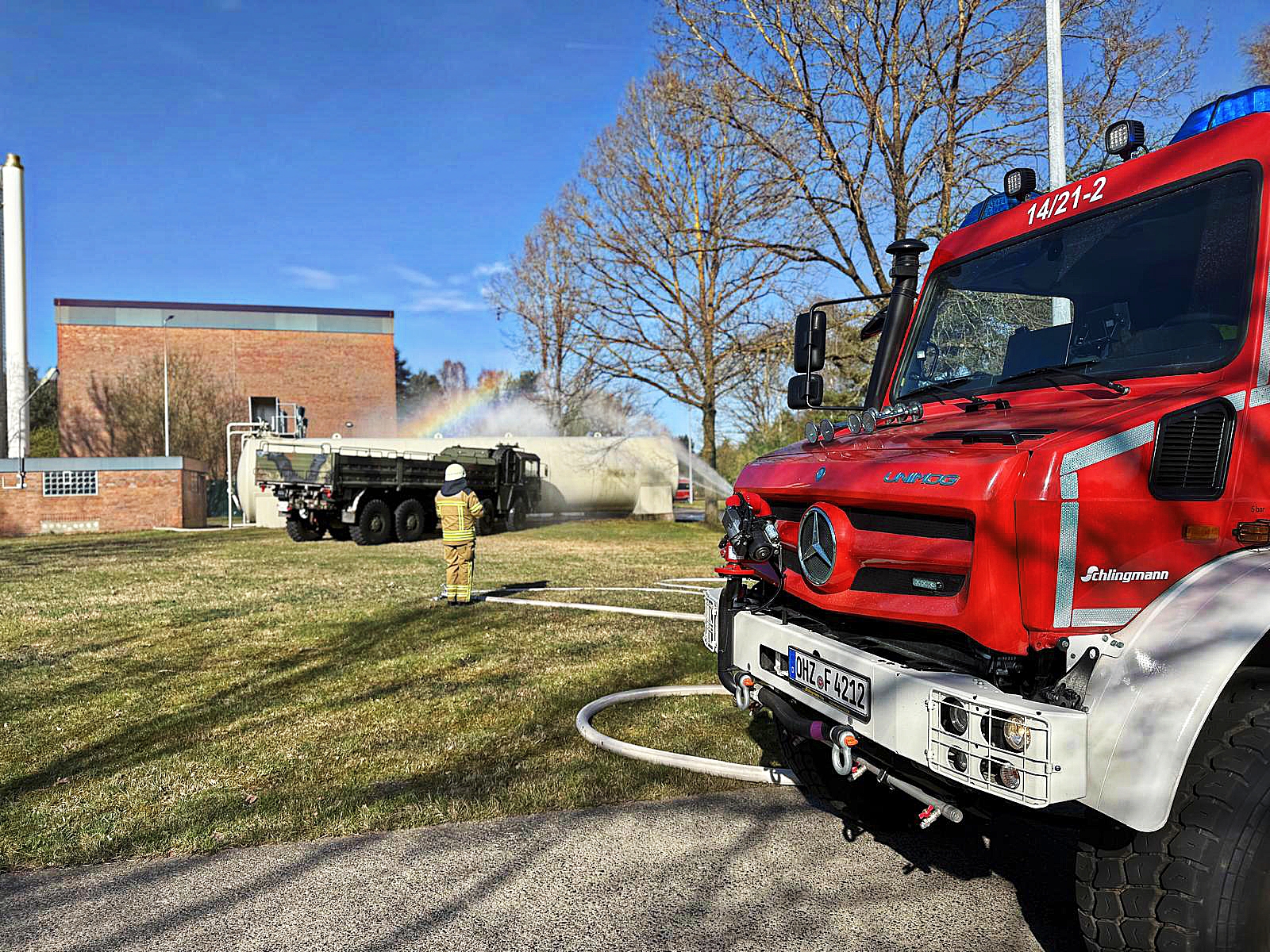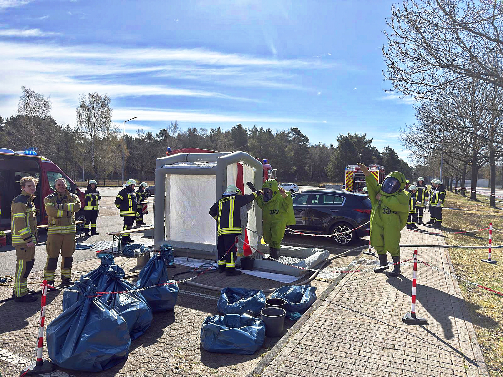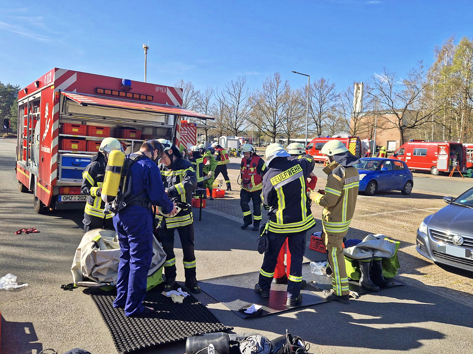 Die Ortsfeuerwehren Garlstedt und Heilshorn folgten am 5. April der Einladung des Umweltschutzzuges des Landkreises Osterholz zu einer gemeinsamen Übung auf dem Gelände der Lucius-D.-Clay-Kaserne in Garlstedt.