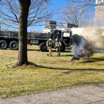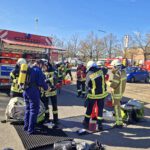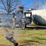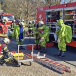 Im Laufe der Übung wurde ermittelt, dass es sich bei der Ladung auf dem LKW um Petroleum handelte. Nach einer kurzen Absprache entschieden sich die Einsatzkräfte, den LKW mithilfe eines Löschfahrzeuges vom Tank wegzuziehen und somit die Gefahr zu minimieren.