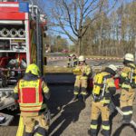 Die bereits eingetroffenen Kräfte aus Heilshorn und Garlstedt sperrten den Bereich weiträumig ab und ein Trupp unter schweren Atemschutz ging zur Erkundung am verunfallten LKW vor. Dieser befreite eine verletze Person aus dem LKW und erkannte, dass sich auf dem LKW Gefahrstoff befand. Anschließend wurden mithilfe eines „C-Rohres“ die Dämpfe niedergeschlagen und der Brandschutz sichergestellt.
