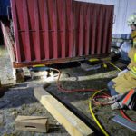 Die weiteren Kräfte der Ortsfeuerwehr Heilshorn bekamen eine Lage zur Technischen Hilfeleistung. Es wurde simuliert, dass eine Person unter einer Verladebrücke eingeklemmt worden war.