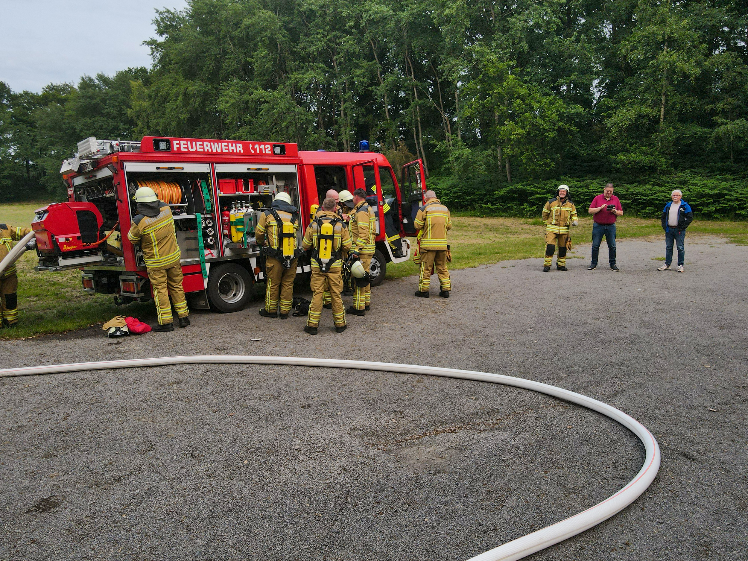 Die Brandbekämpfung wurde von der Ortsfeuerwehr Hülseberg durchgeführt, den Abschnitt Personensuche und Menschenrettung wurde von der Freiwilligen Feuerwehr Freißenbüttel übernommen. Unterstützt und begleitet wurde die Übung durch das Deutsche Rote Kreuz die mit einem Mannschaftstransportwagen einem Krankentransportwagen vor Ort waren.
