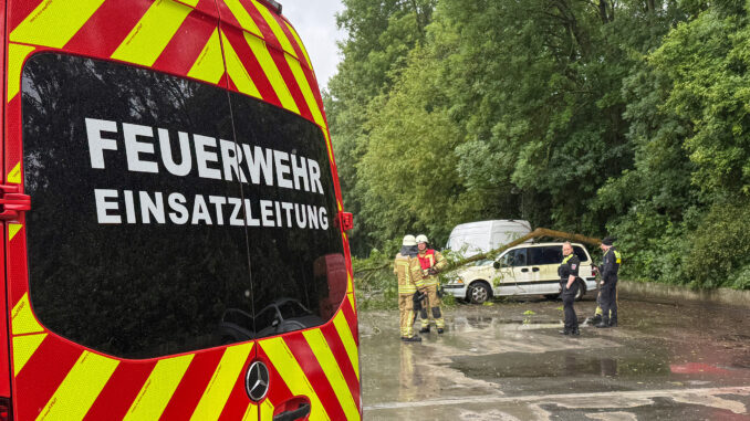 Ein Baum mit rund 20cm Durchmesser, stürzte am Pfingstsonntag auf ein geparktes Auto. Glücklicherweise wurde niemand verletzt. Die alarmierte Feuerwehr zerteilte den Baum mittels Motorsäge und räumte ihn zu Seite. Anschließend rückten die Einsatzkräfte wieder ein.