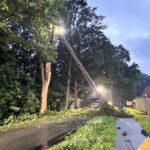 Da der Baum durch den Blitzeinschlag instabil geworden war, entschieden die Einsatzkräfte, den Baum fachmännisch zu fällen. Zur Unterstützung wurde die Ortsfeuerwehr Osterholz alarmiert, die mit ihrer Drehleiter anrückte. Die Einsatzkräfte der Osterholzer Ortsfeuerwehr führten den Fällvorgang professionell durch und beseitigten die Gefahrenstelle, um die Straße wieder freigeben zu können.