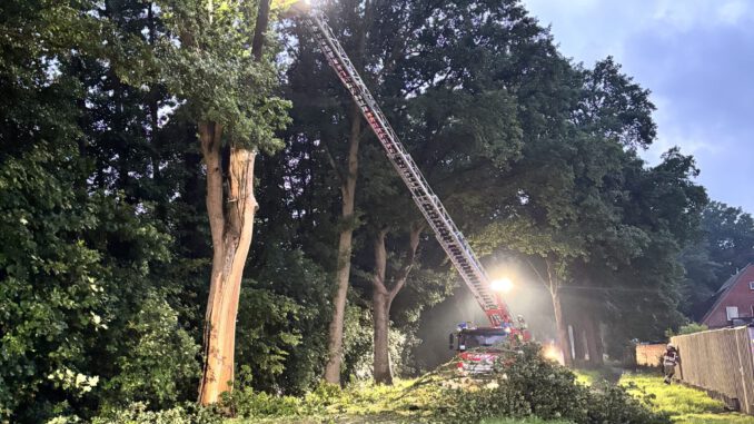 Am Sonntagabend, nach einem schweren Gewitter, kam es zu einem Blitzeinschlag in einen Baum an der Hauptverkehrsstraße am Ortsausgang Pennigbüttel. Die alarmierten Kräfte aus Pennigbüttel wurden schnell vor Ort eingesetzt. Um die Sicherheit aller Verkehrsteilnehmer zu gewährleisten, wurde die Straße für den Zeitraum des Einsatzes gesperrt.