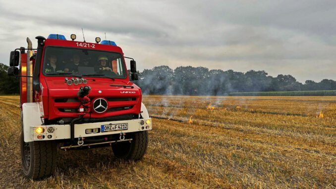 Am Abend des 26.08.2025 folgte die Ortsfeuerwehr Garlstedt der Einladung zu einem gemeinsamen Übungsdienst mit der Feuerwehr Hoope (Gem. Hagen im Bremischen) zum Thema Vegetationsbrandbekämpfung. Ebenfalls beteiligten sich die Ortsfeuerwehren Albstedt, Wulsbüttel und Lehnstedt (Gem. Hagen im Bremischen) an den Übungsabend.