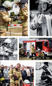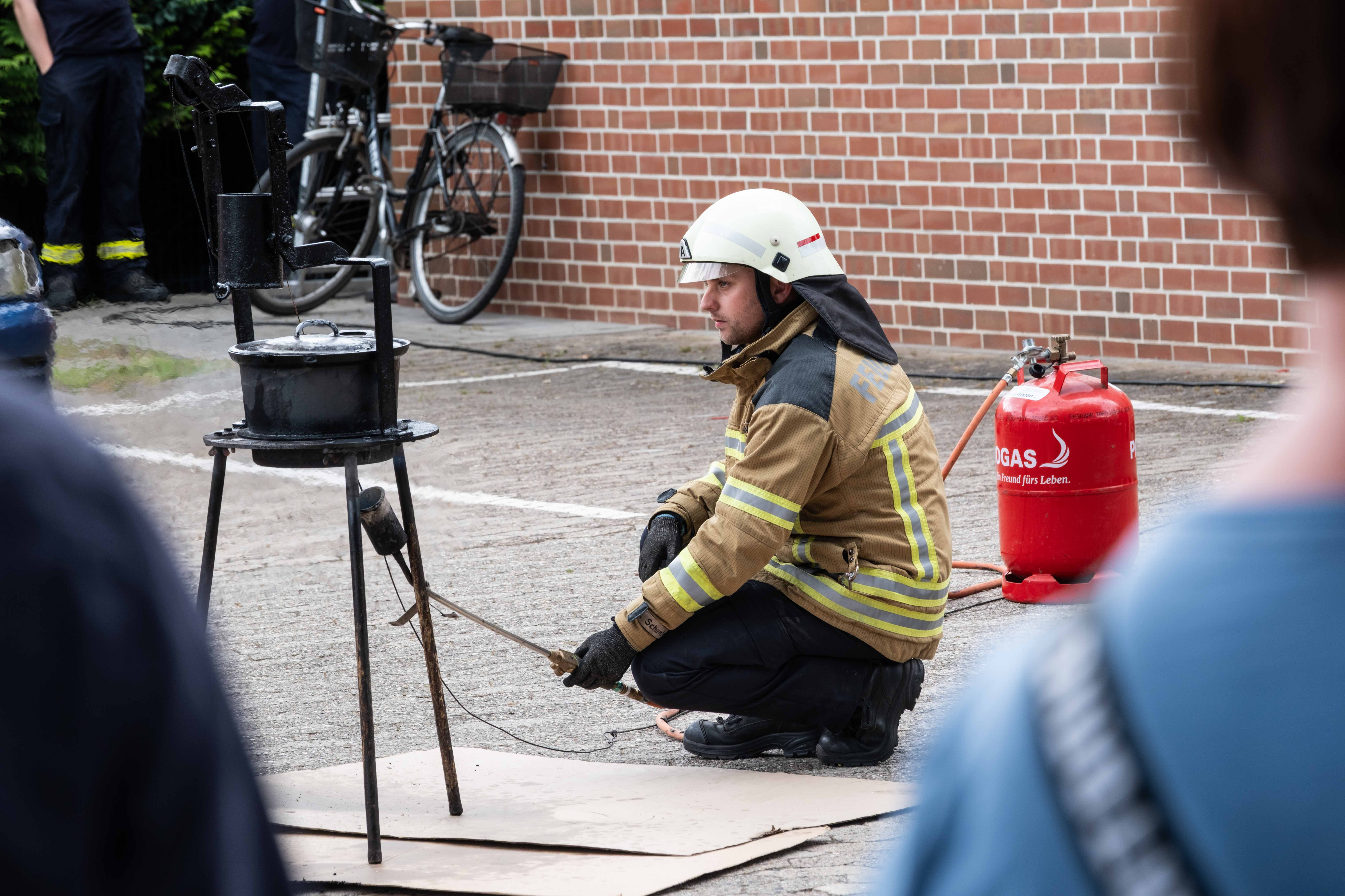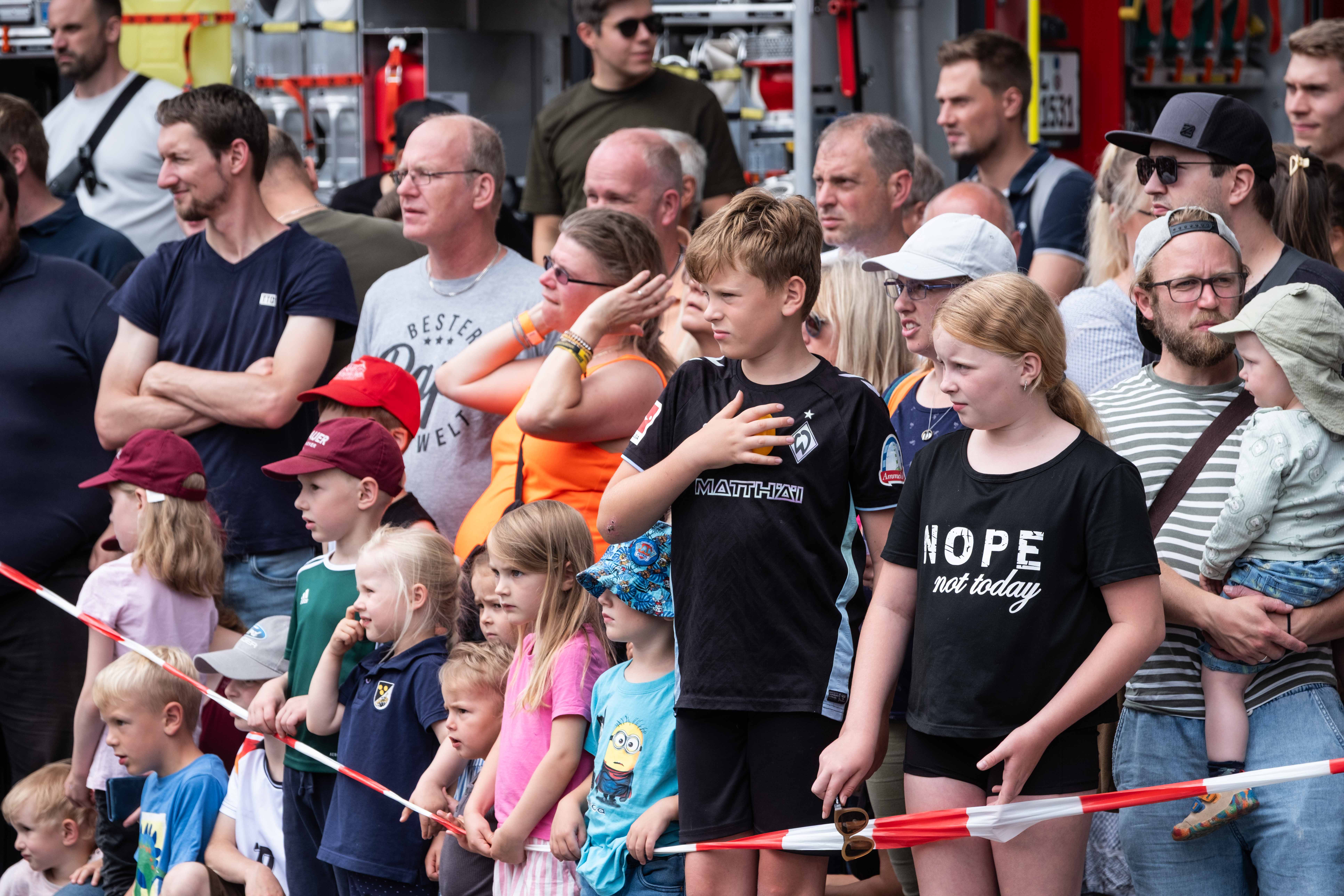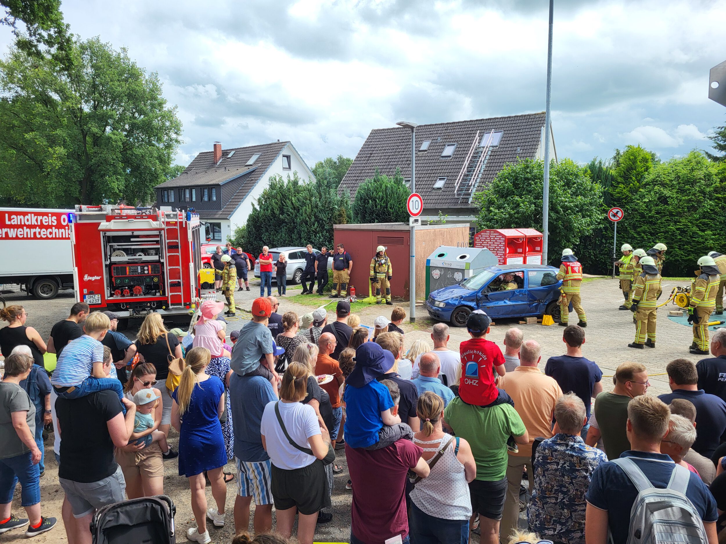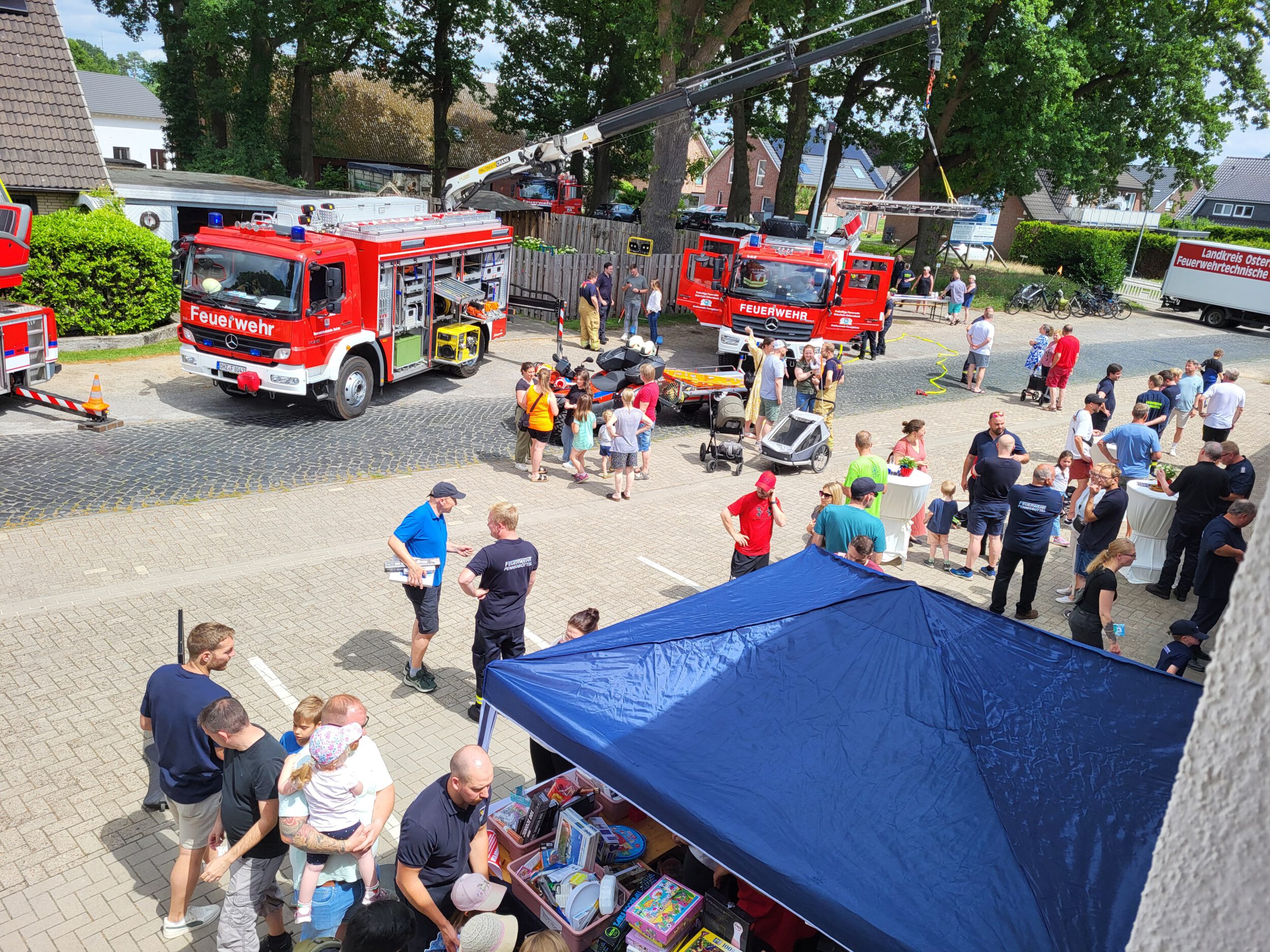 Live-Einsatzübungen zeigten hautnah, wie ein PKW aufgeschnitten und eine verletzte Person befreit wird, oder wie gefährlich ein Fettbrand werden kann. Feuerwehrfahrzeuge aus Pennigbüttel, Osterholz-Scharmbeck und Teufelsmoor waren ausgestellt – inklusive des beliebten Feuerwehr-Quads.